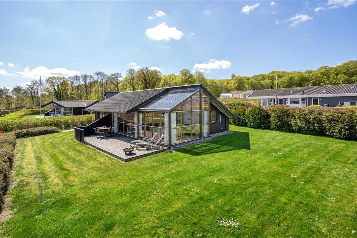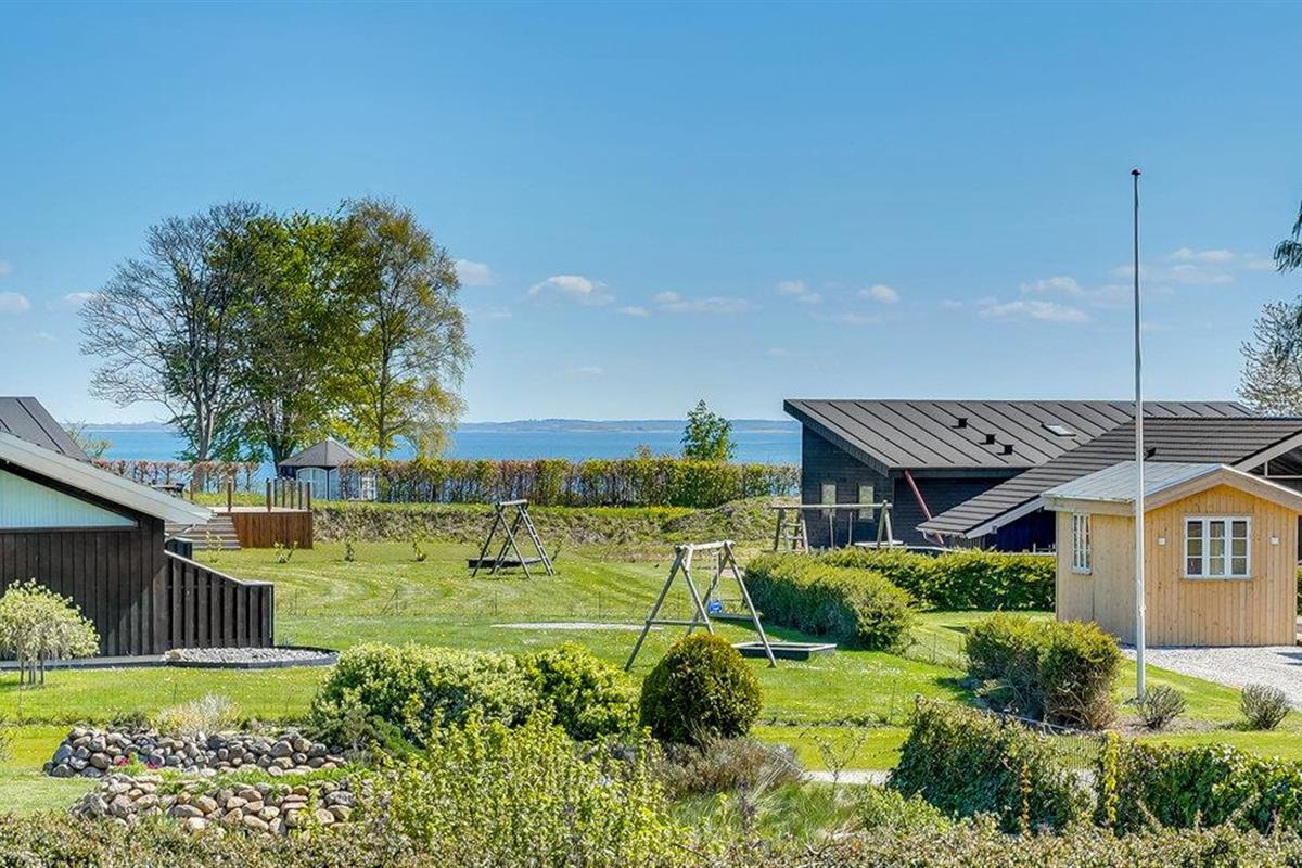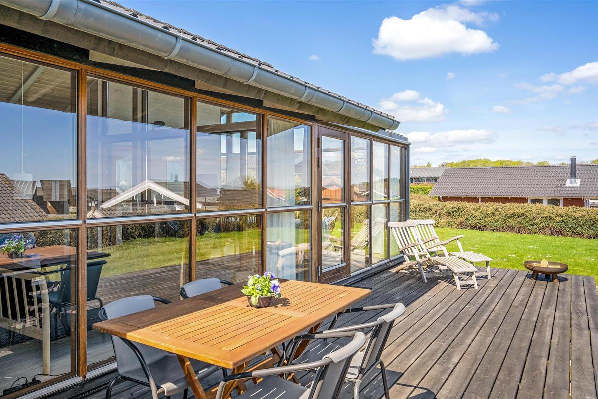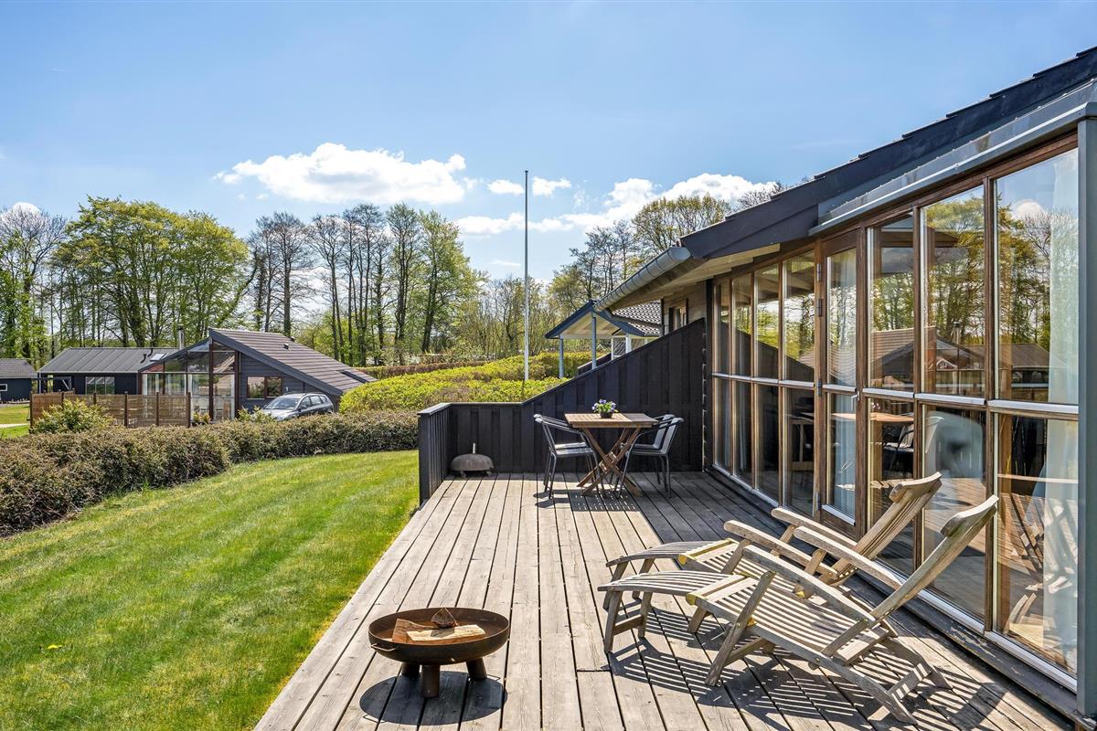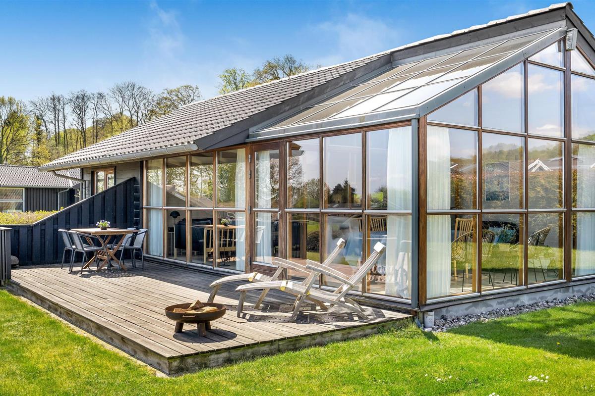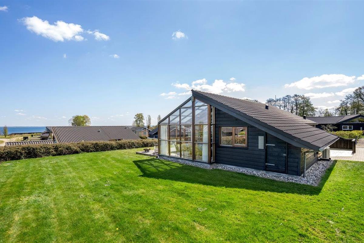 Smaakvol vakantiehuis bij Grønninghoved met panoramisch uitzicht en terrassen aan beide zijden.