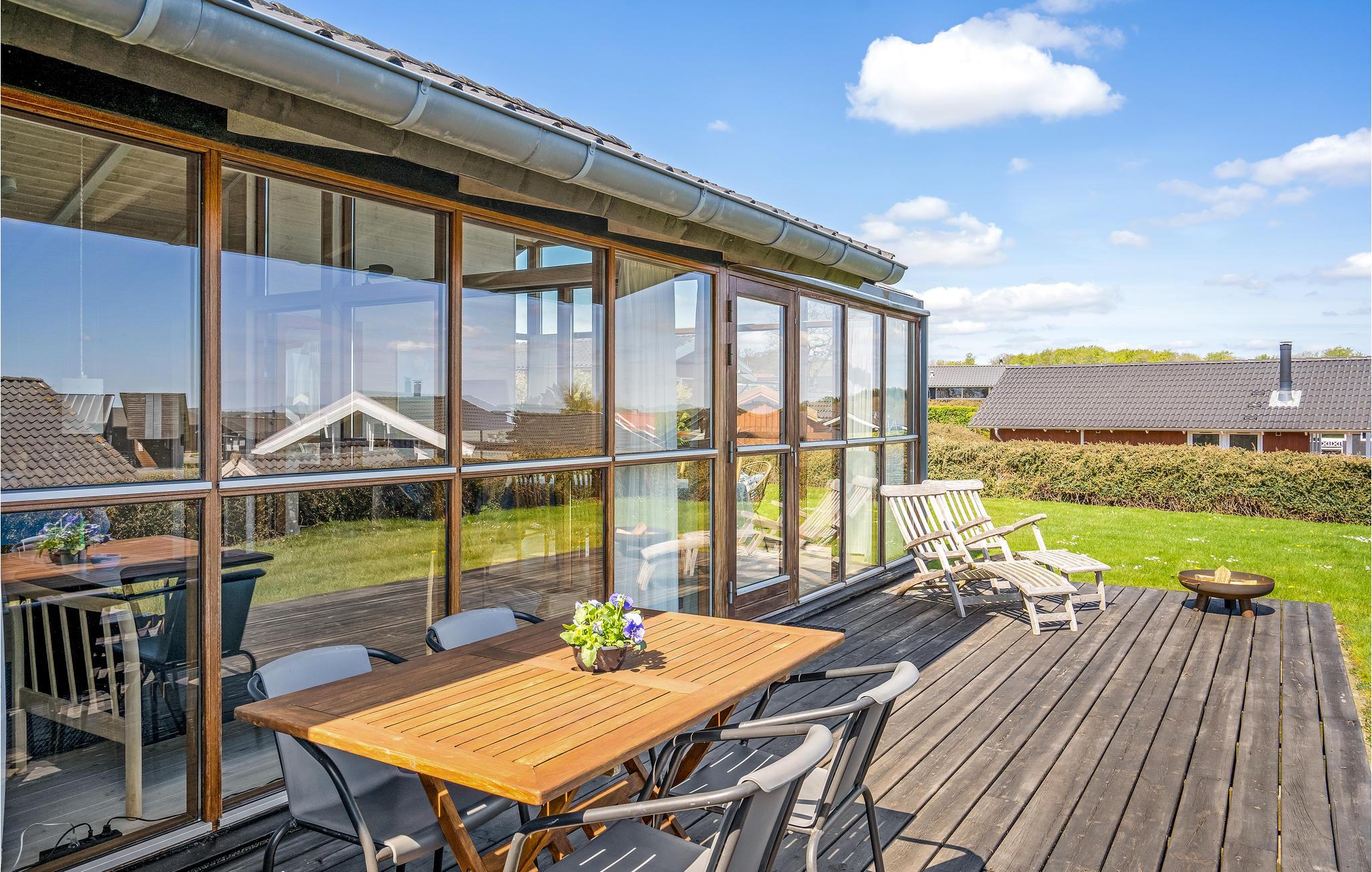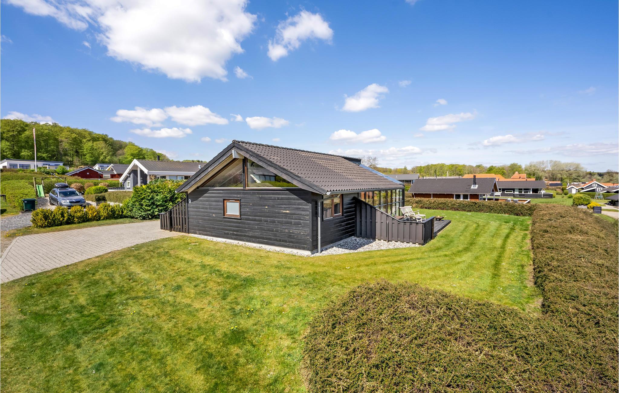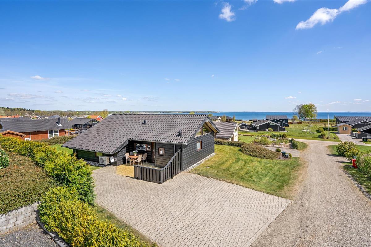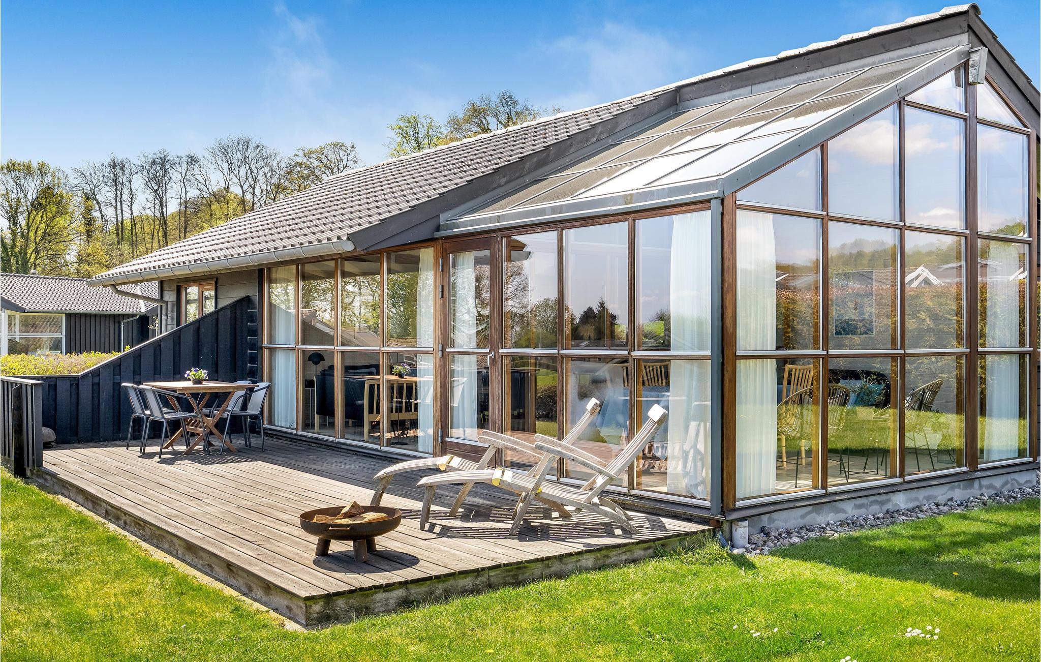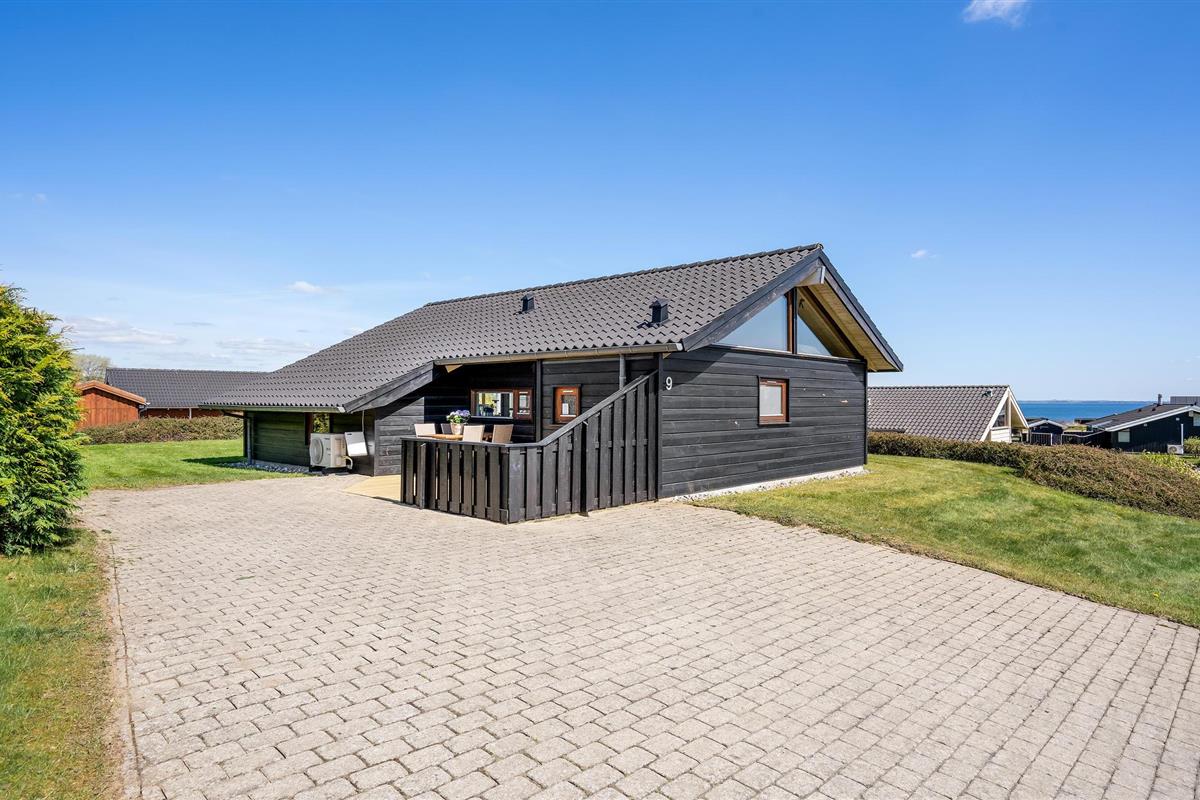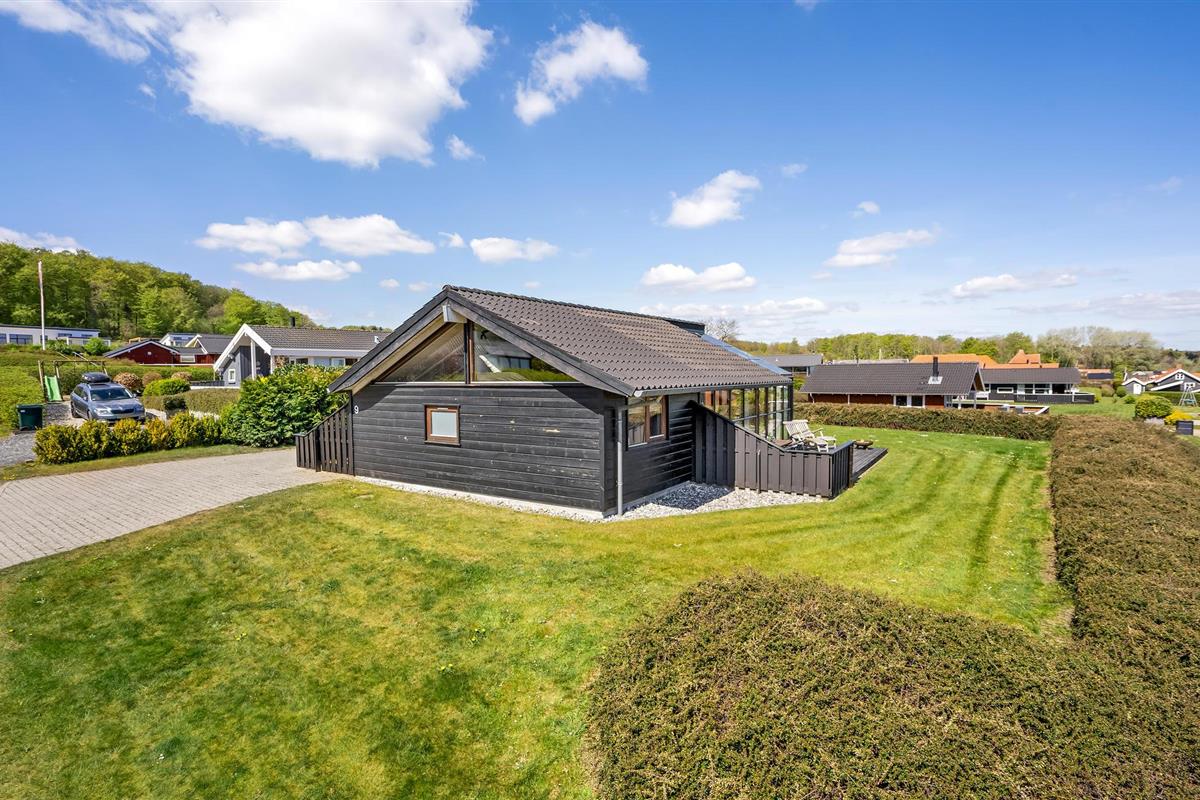 Smaakvol vakantiehuis bij Grønninghoved met panoramisch uitzicht en terrassen aan beide zijden.