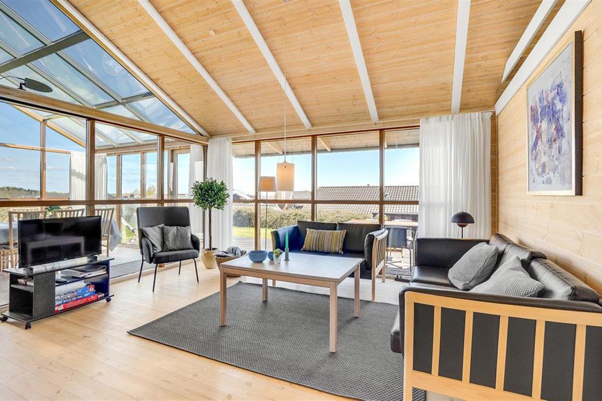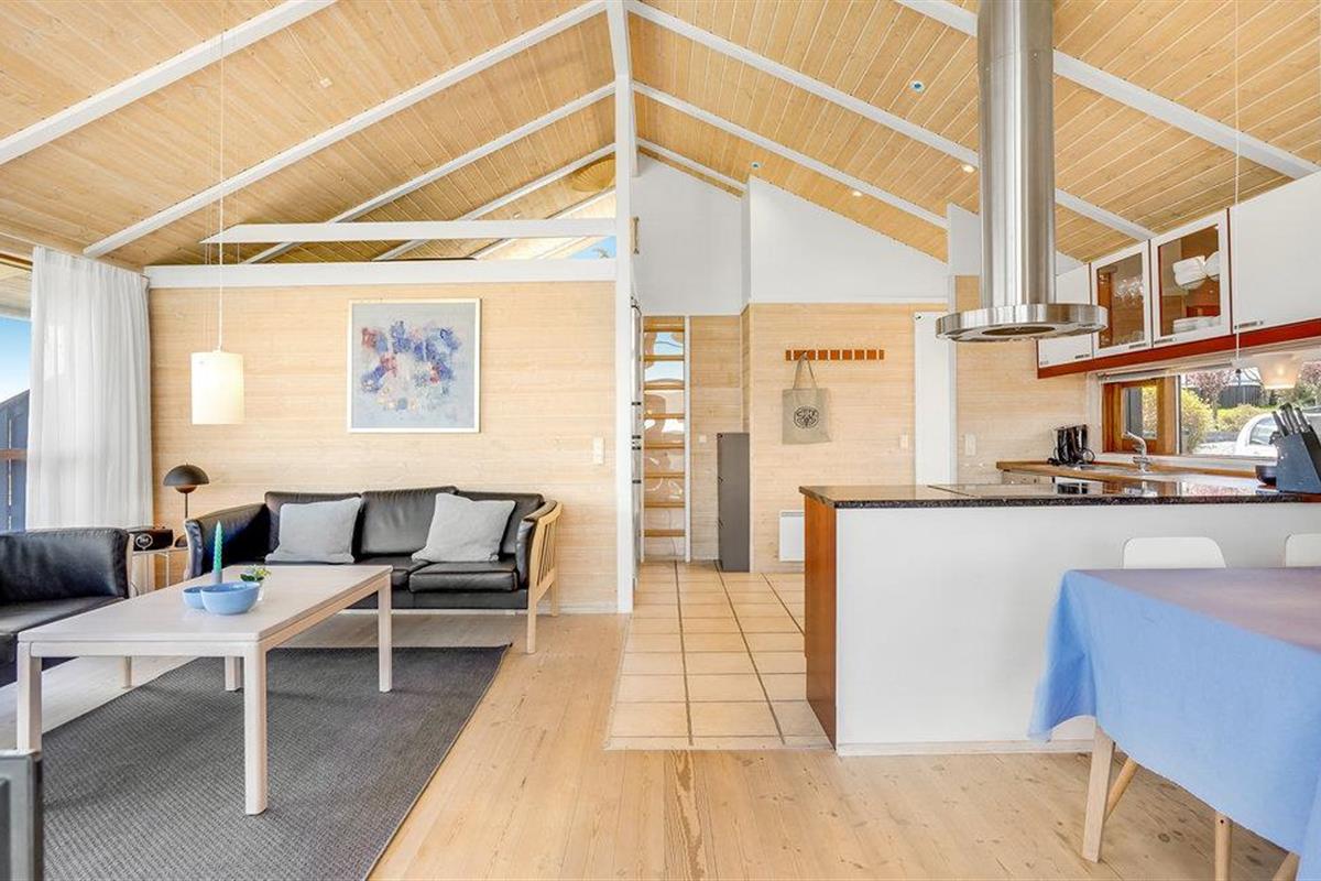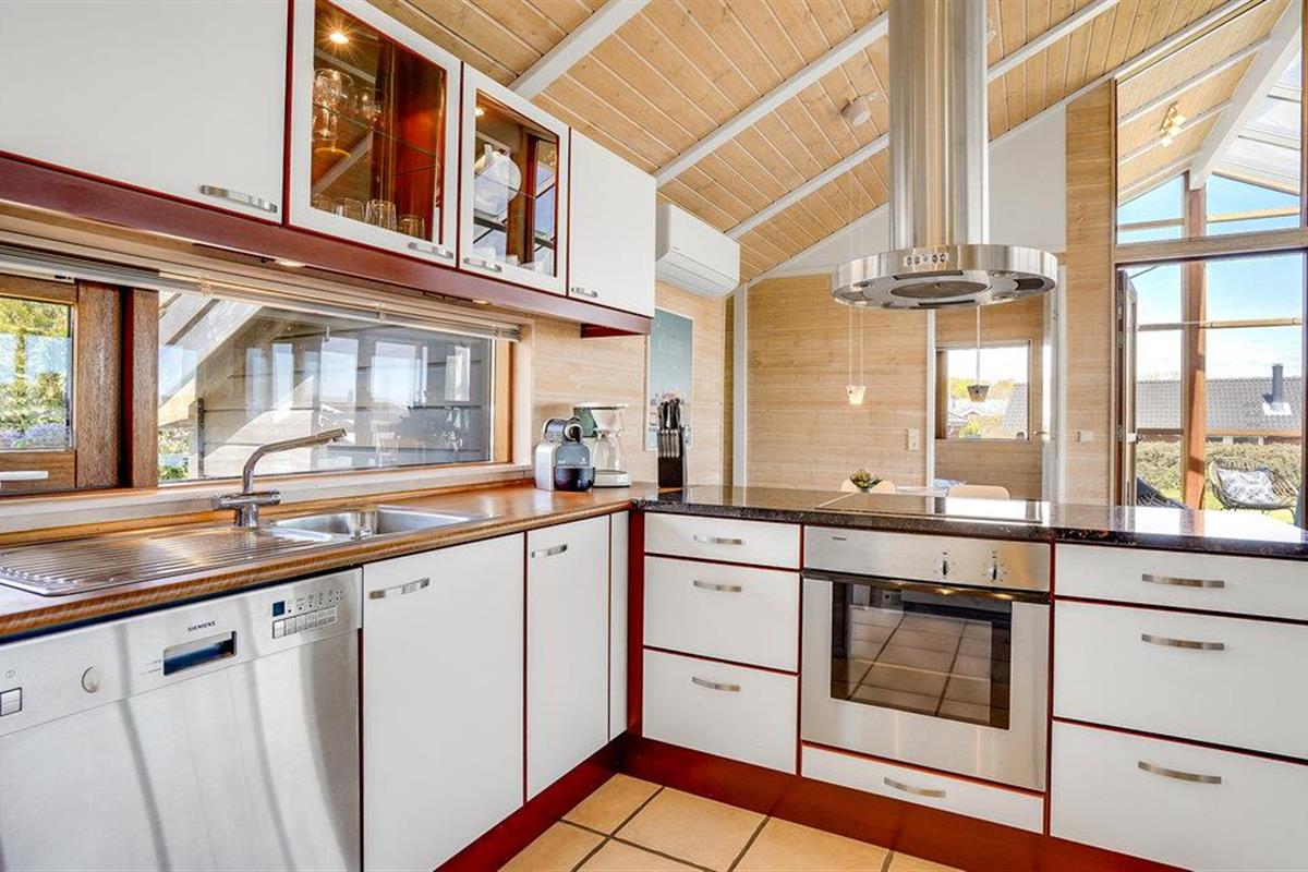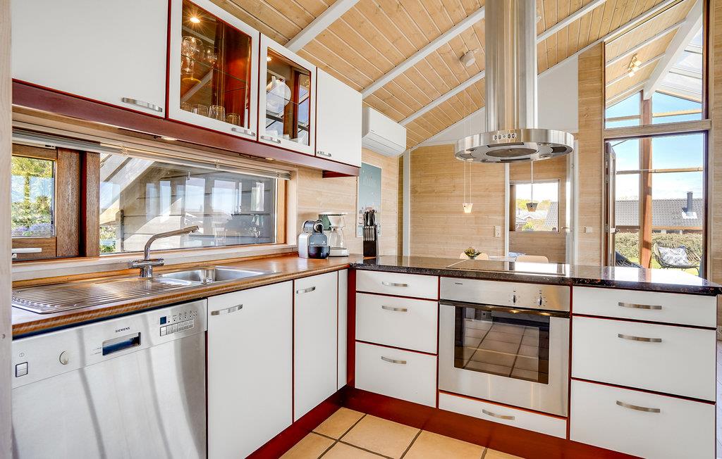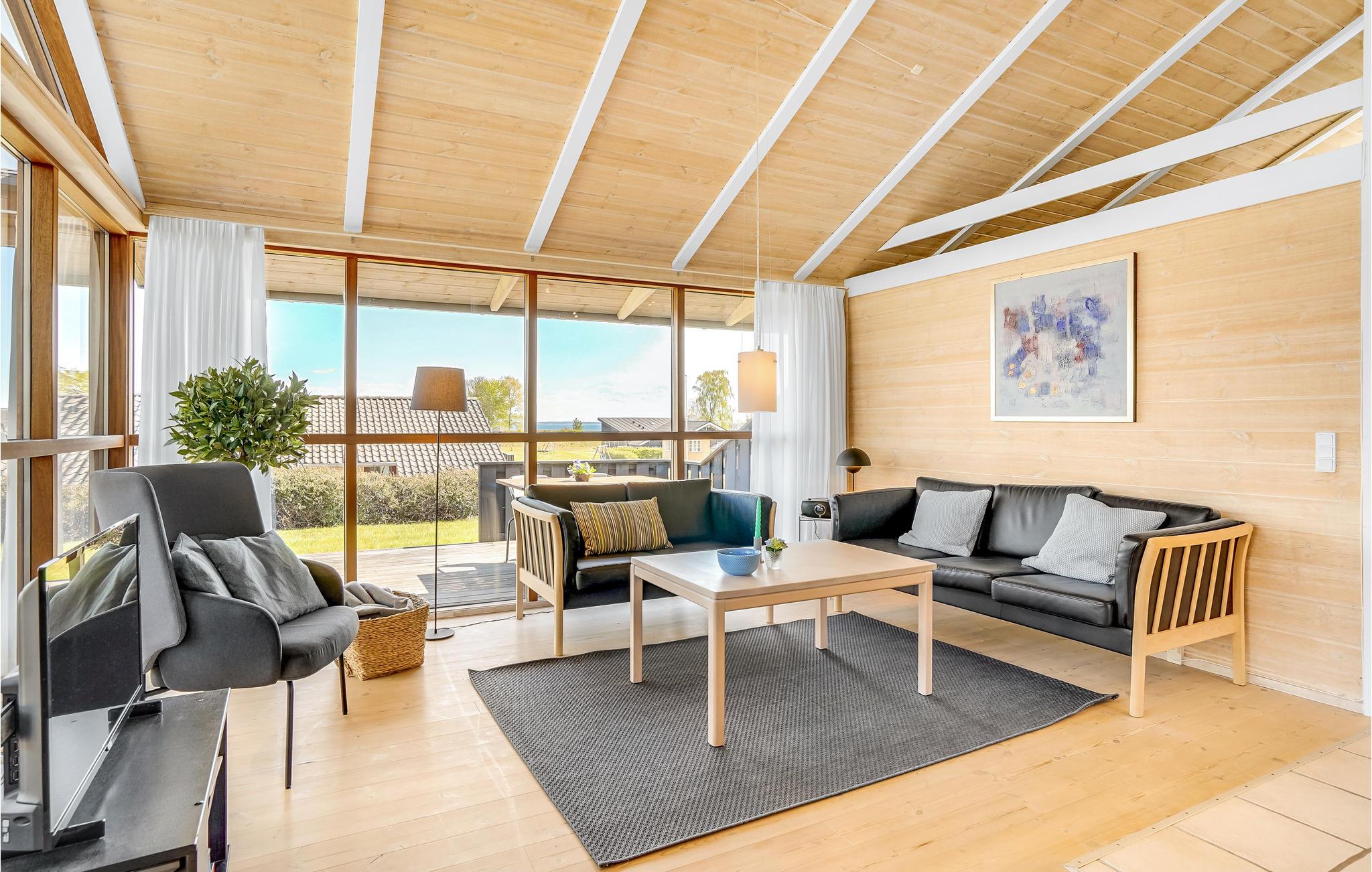 Dit smaakvolle vakantiehuis bij Grønninghoved biedt een prachtig uitzicht over het water vanuit de woonkamer en het terras. De woonkamer is gecombineerd met de open keuken en heeft ook een eethoek. De grote ramen laten veel licht in de kamers en tegelijkertijd heeft u een fantastisch panorama.