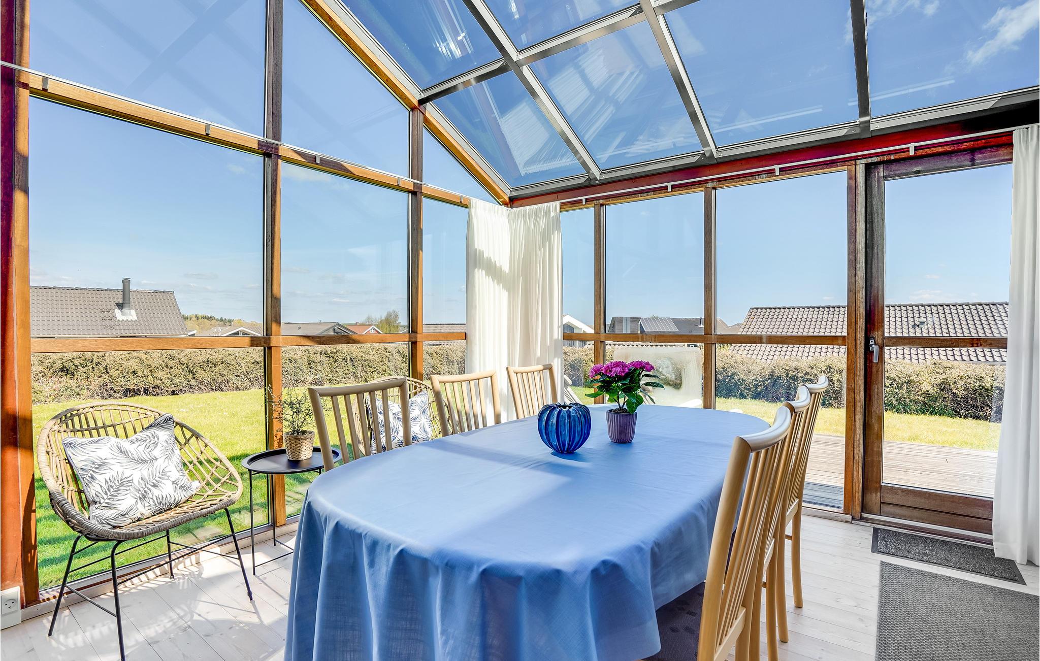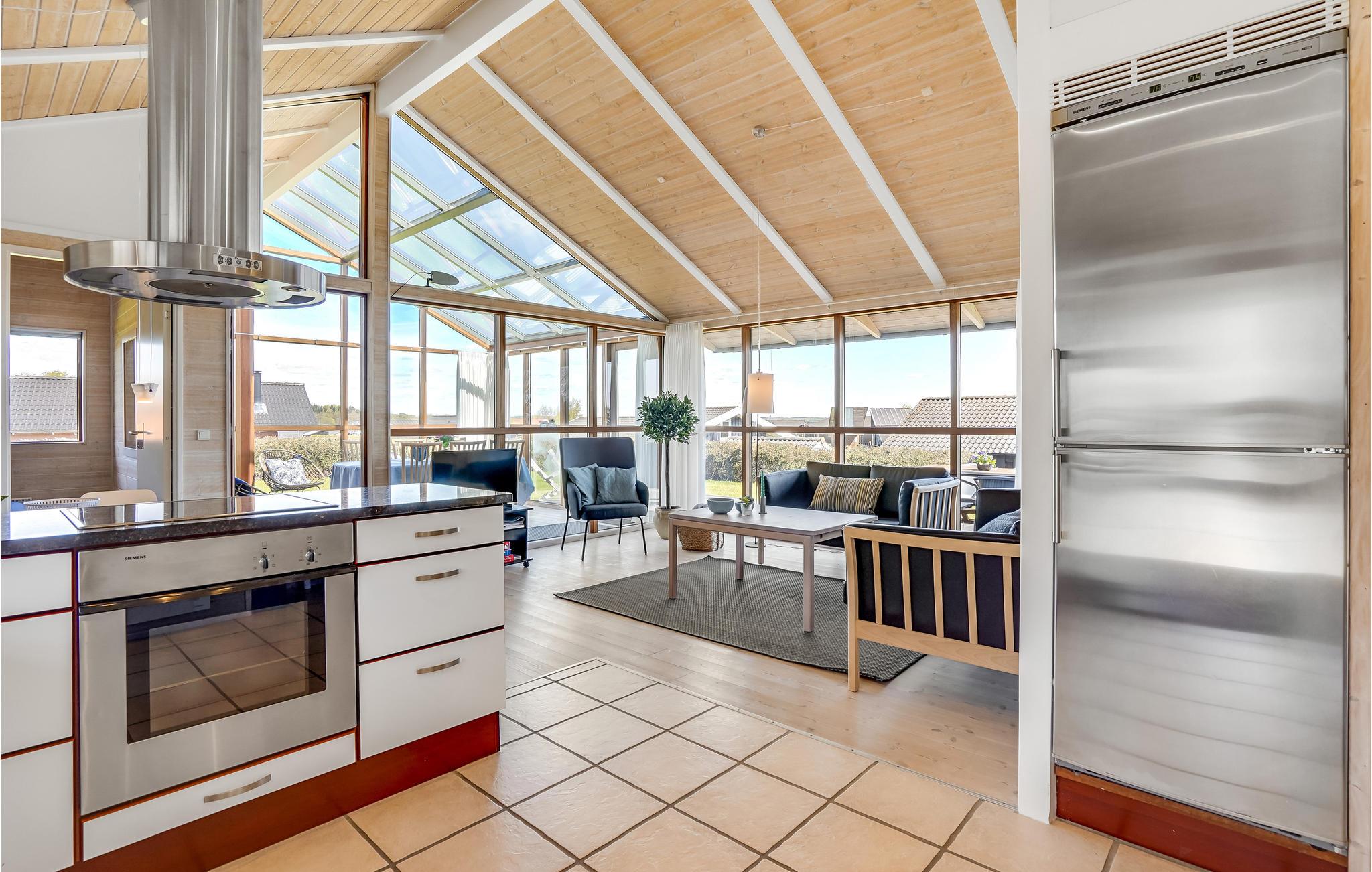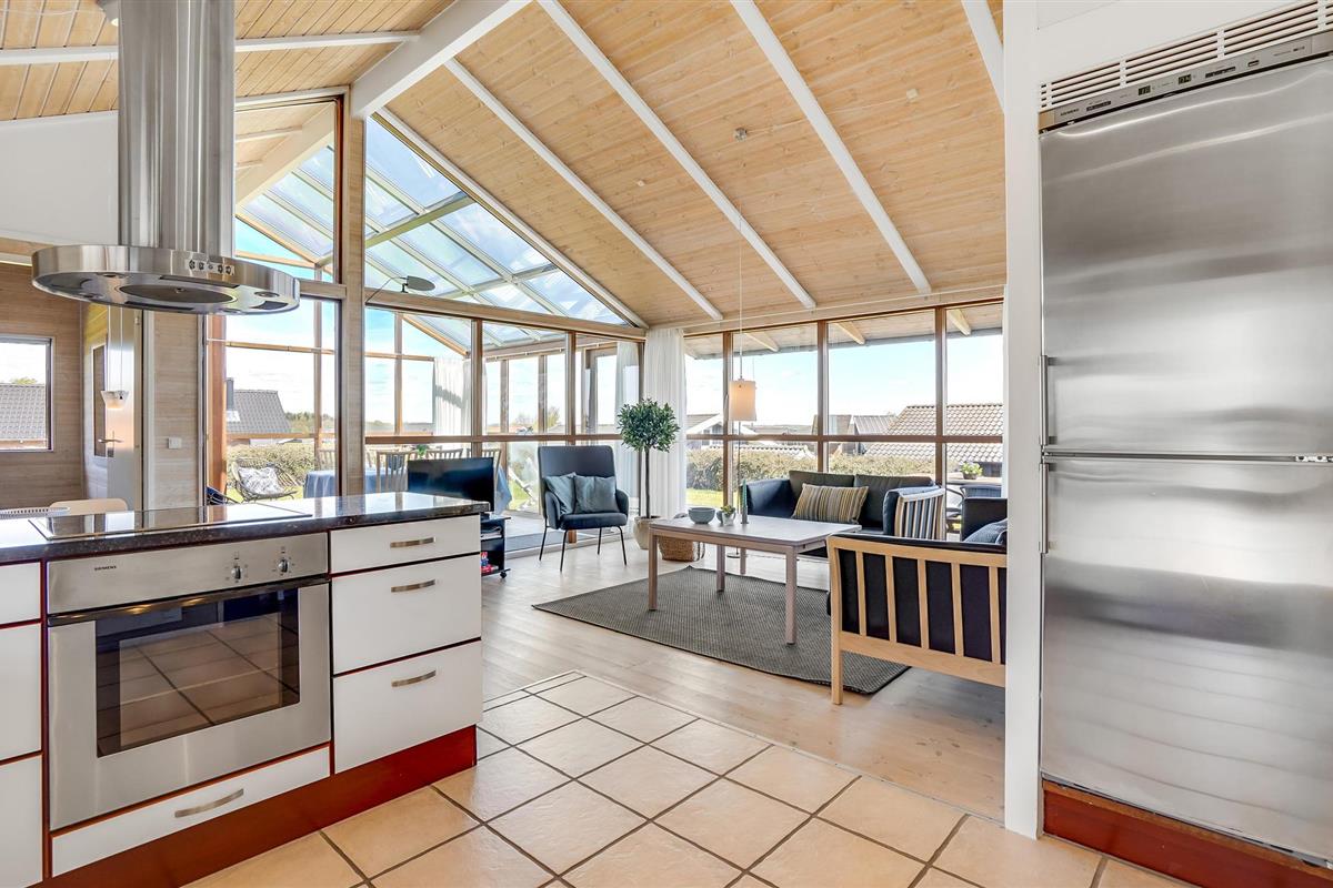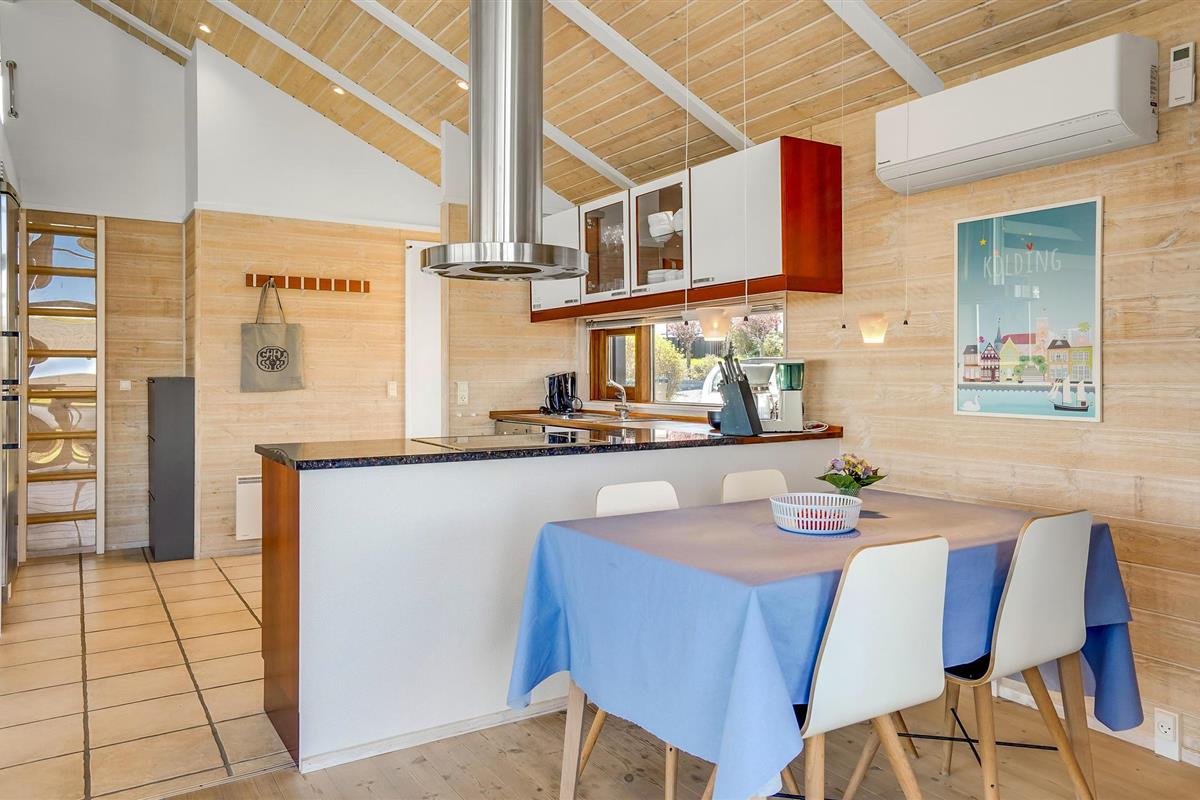 Dit smaakvolle vakantiehuis bij Grønninghoved biedt een prachtig uitzicht over het water vanuit de woonkamer en het terras. De woonkamer is gecombineerd met de open keuken en heeft ook een eethoek. De grote ramen laten veel licht in de kamers en tegelijkertijd heeft u een fantastisch panorama.