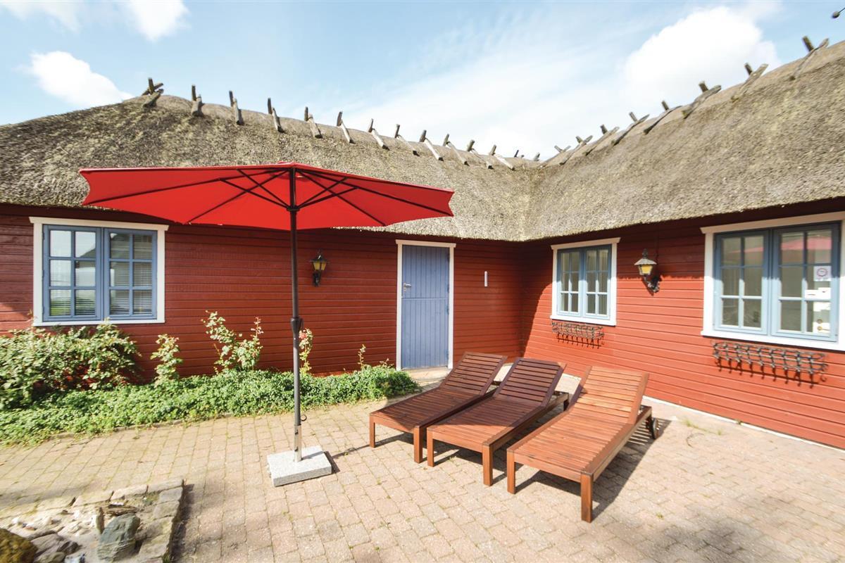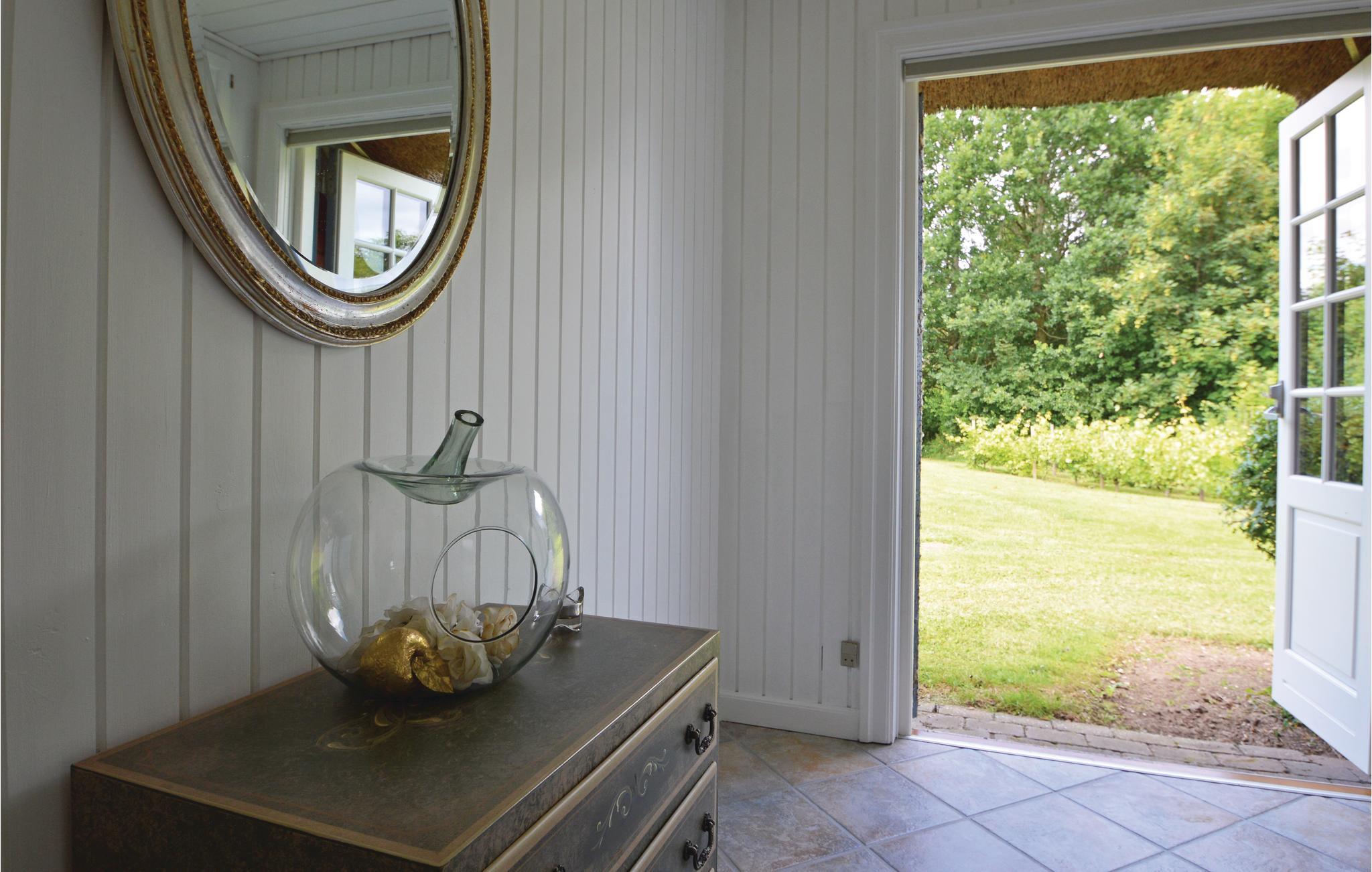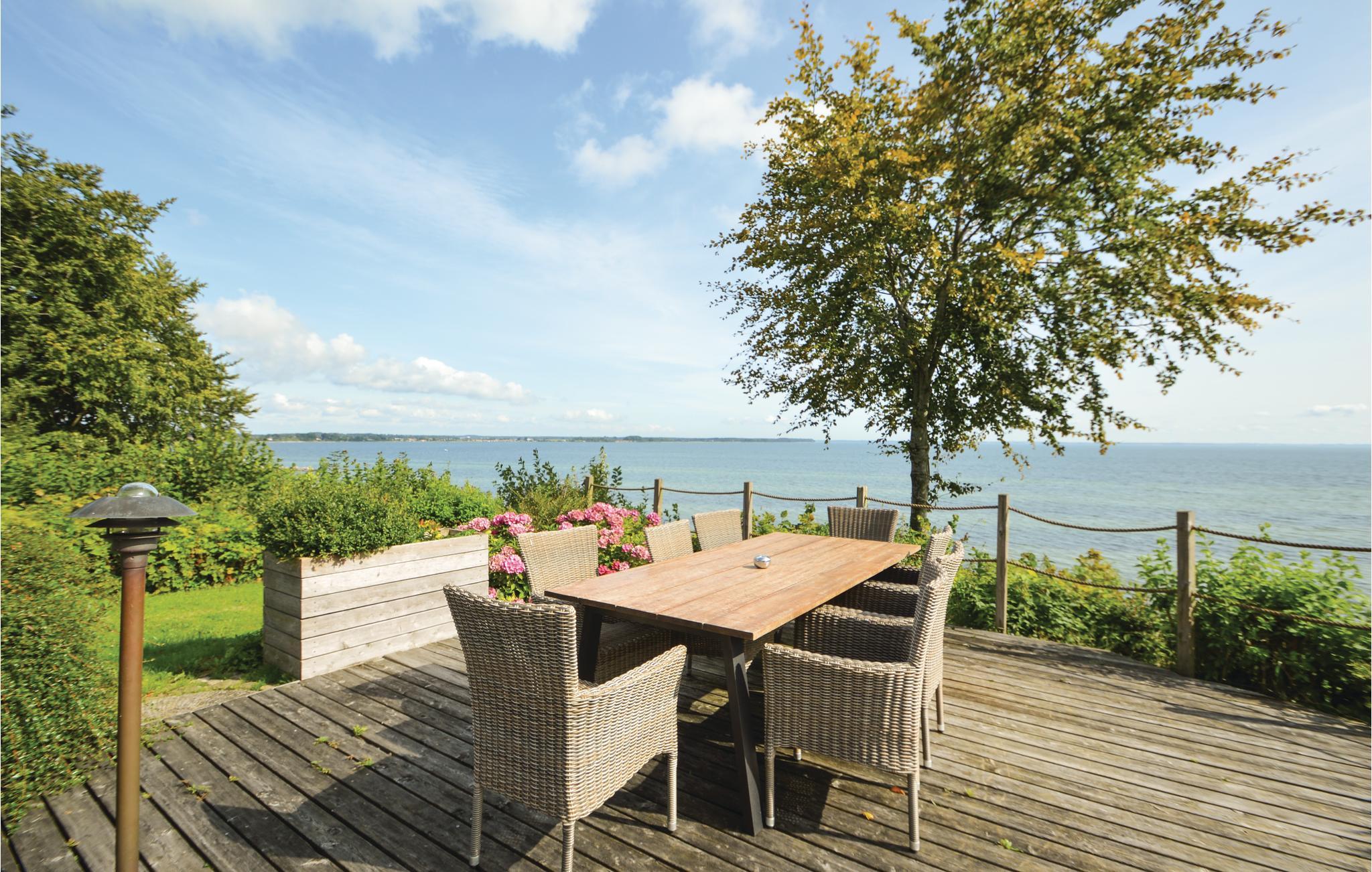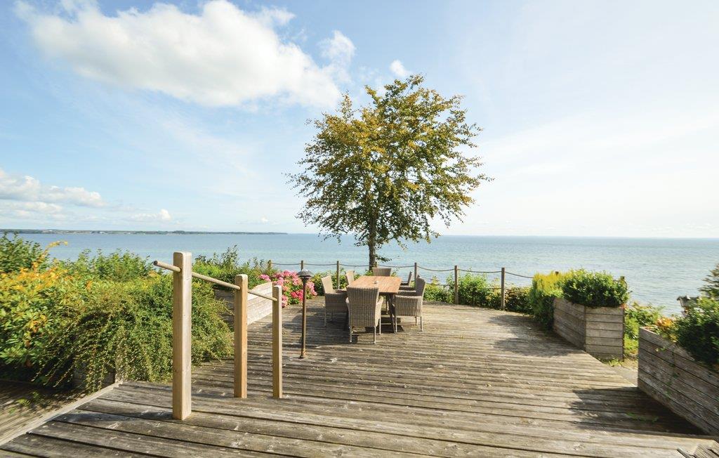 Een vakantiehuis op een unieke locatie op een perceel van 14.000 m² met een eigen strand, wat zeldzaam is in Denemarken. Het rietgedekte huis is omgeven door terrassen, die veel buitenactiviteiten mogelijk maken, zowel op zonnige dagen als op warme zomeravonden. Op het terrein vindt u onder andere een eigen tuinvijver en een oranjerie, waar u tot laat in het jaar buiten kunt vertoeven. Achter in de tuin vindt u druiven. Vanaf de terrassen, de tuin en vanuit het huis heeft u een prachtig uitzicht op de Kleine Belt. Wandel naar het strand, dat direct onder het huis ligt, en geniet ongestoord en zonder massa's andere strandgangers van het strandleven. Binnen is het huis licht en vriendelijk, vanuit de entree leiden drie treden naar de twee grote woonkamers, waarvan er één een open combinatie vormt met de keuken. Vanuit de ene woonkamer heeft u toegang tot een groot terras met verschillende niveaus waar u kunt genieten van uw vakantie en het uitzicht op het water. Naast een gastentoilet heeft het huis ook een grote badkamer met een whirlpool, waar pijnlijke spieren kunnen worden behandeld met een watermassage. Met zijn bos, velden en strand is het Grønninghoved gebied de ideale vakantiebestemming voor gezinnen met kinderen. Het is slechts een paar minuten rijden naar de dichtstbijzijnde grotere stad, Kolding. Hier kunt u uitstekend winkelen in de Einjaufsstraße of in het winkelcentrum Kolding Storcenter. U vindt er ook het kasteel Koldinghus, dat zeker een bezoek waard is. Grønninghoved Strand is vaak uitgeroepen tot het meest kindvriendelijke strand van Denemarken en is daarom ideaal voor gezinnen met kinderen, die kunnen genieten van een vakantie met veel zwemplezier.