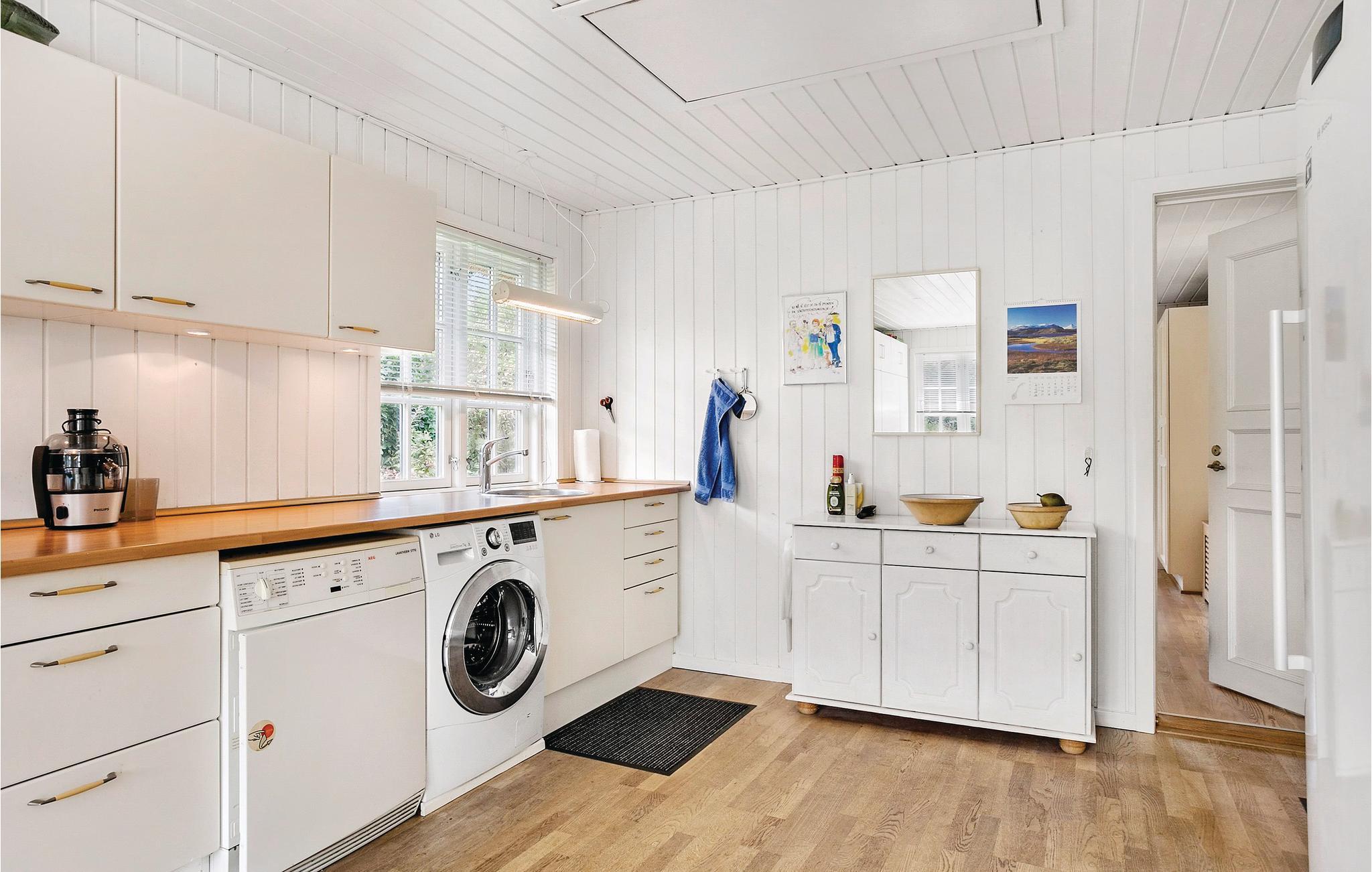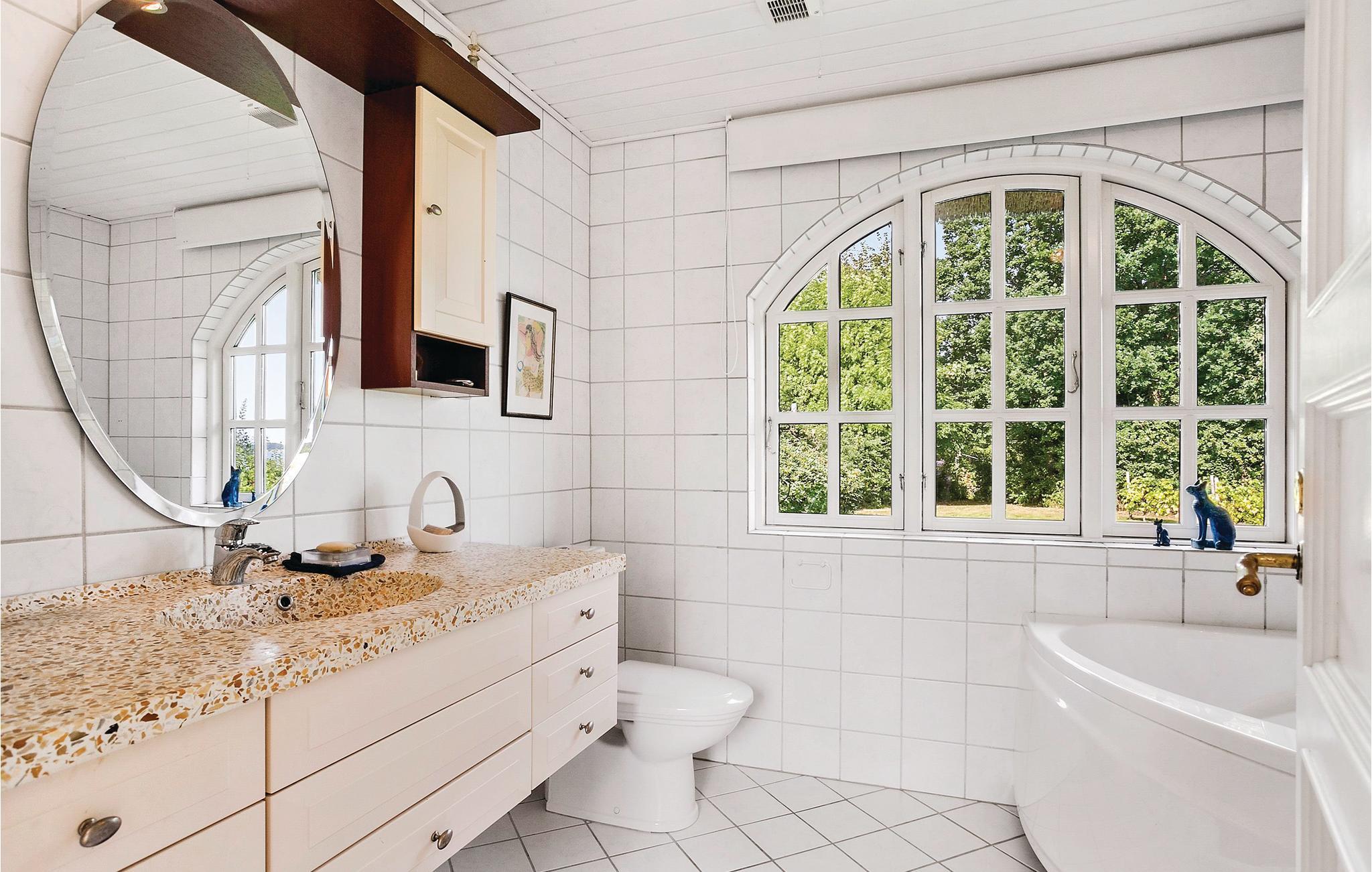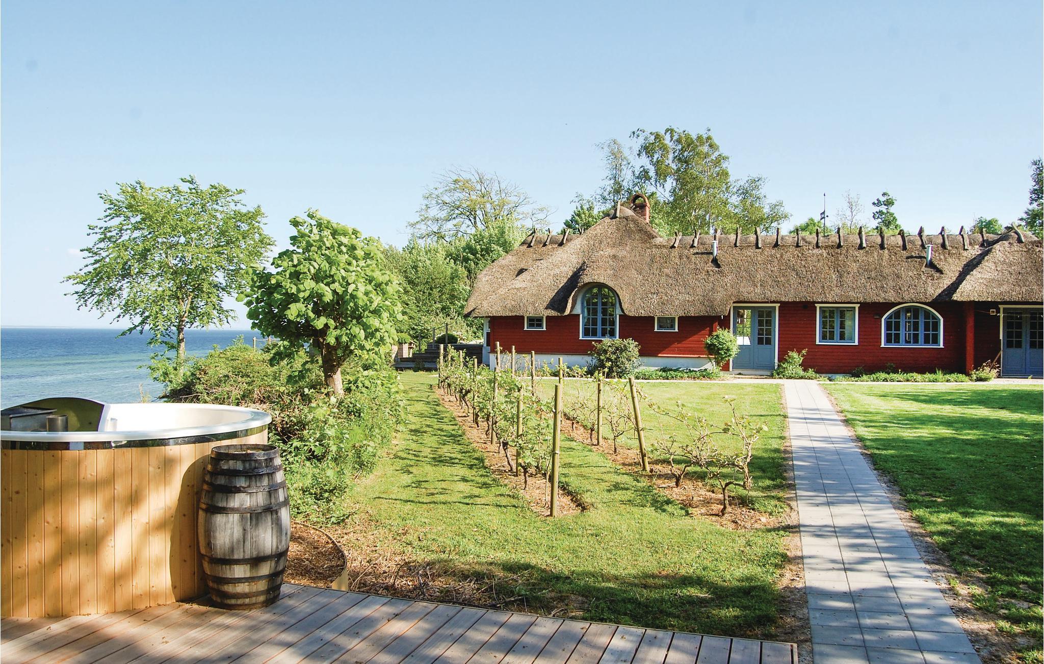 Een vakantiehuis op een unieke locatie op een perceel van 14.000 m² met een eigen strand, wat zeldzaam is in Denemarken. Het rietgedekte huis is omgeven door terrassen, die veel buitenactiviteiten mogelijk maken, zowel op zonnige dagen als op warme zomeravonden. Op het terrein vindt u onder andere een eigen tuinvijver en een oranjerie, waar u tot laat in het jaar buiten kunt vertoeven. Achter in de tuin vindt u druiven. Vanaf de terrassen, de tuin en vanuit het huis heeft u een prachtig uitzicht op de Kleine Belt. Wandel naar het strand, dat direct onder het huis ligt, en geniet ongestoord en zonder massa's andere strandgangers van het strandleven. Binnen is het huis licht en vriendelijk, vanuit de entree leiden drie treden naar de twee grote woonkamers, waarvan er één een open combinatie vormt met de keuken. Vanuit de ene woonkamer heeft u toegang tot een groot terras met verschillende niveaus waar u kunt genieten van uw vakantie en het uitzicht op het water. Naast een gastentoilet heeft het huis ook een grote badkamer met een whirlpool, waar pijnlijke spieren kunnen worden behandeld met een watermassage. Met zijn bos, velden en strand is het Grønninghoved gebied de ideale vakantiebestemming voor gezinnen met kinderen. Het is slechts een paar minuten rijden naar de dichtstbijzijnde grotere stad, Kolding. Hier kunt u uitstekend winkelen in de Einjaufsstraße of in het winkelcentrum Kolding Storcenter. U vindt er ook het kasteel Koldinghus, dat zeker een bezoek waard is. Grønninghoved Strand is vaak uitgeroepen tot het meest kindvriendelijke strand van Denemarken en is daarom ideaal voor gezinnen met kinderen, die kunnen genieten van een vakantie met veel zwemplezier.