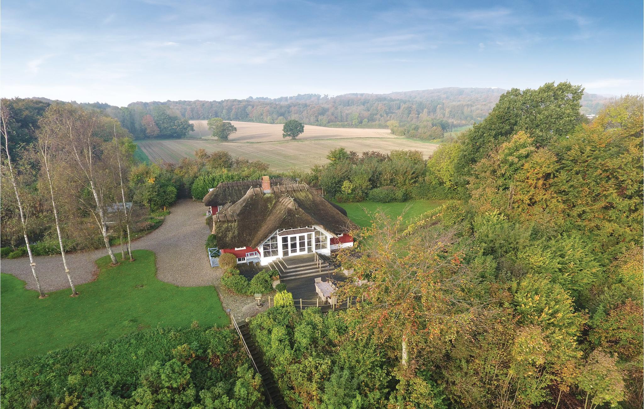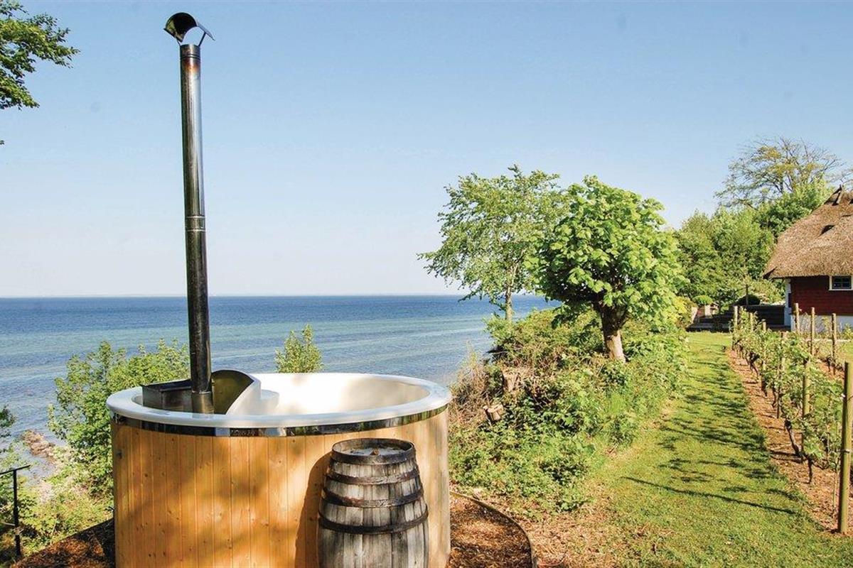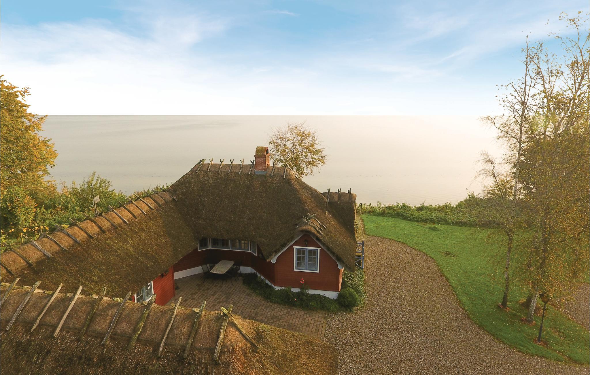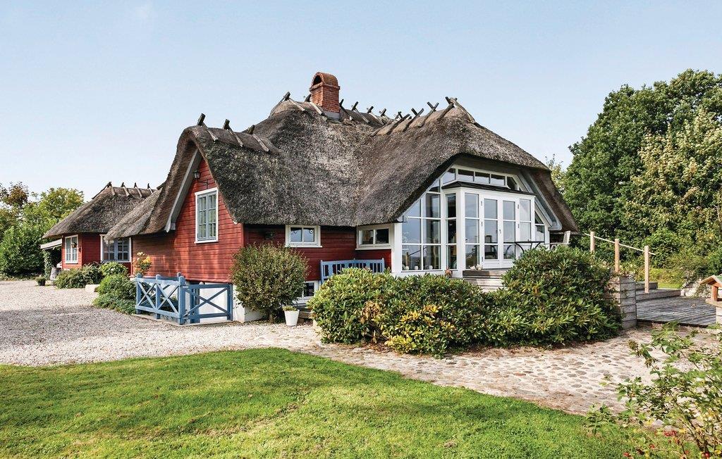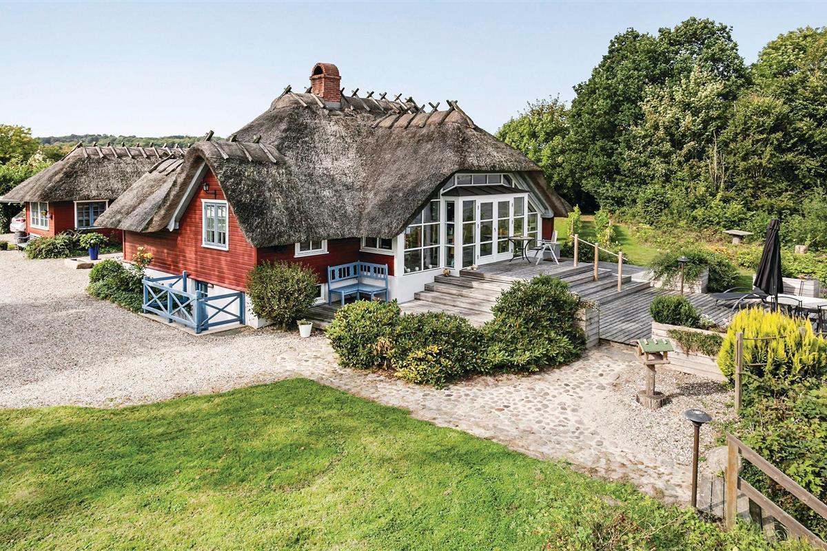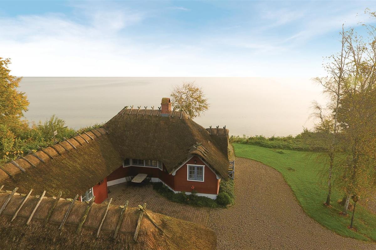 Geniet van een rietgedekt vakantiehuis met eigen strand en panoramisch uitzicht op de Kleine Belt in Denemarken.