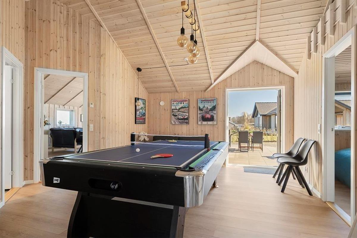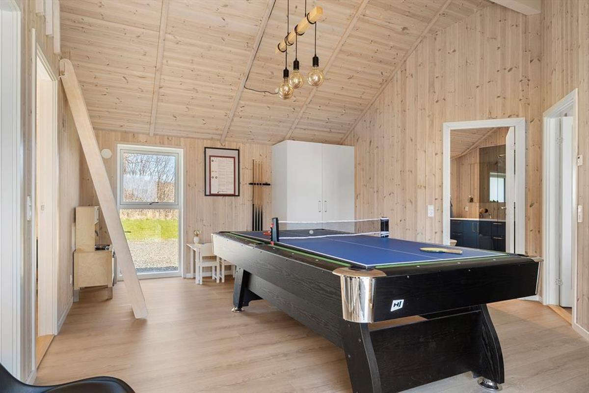 Inside, you'll be greeted by a bright and inviting atmosphere with modern amenities and a thoughtfully designed interior. The spacious living area combines the kitchen, dining room, and lounge into one, creating the perfect space for family meals and cozy moments together. Large windows allow plenty of natural light to flood in and offer a stunning view of the surrounding area. With underfloor heating throughout the house, you can enjoy a warm and comfortable indoor climate all year round. The activity room features billiards, table tennis, and air hockey, ensuring fun and friendly competition among family and friends. After a day full of experiences, you can unwind in the luxurious spa or warm up in the sauna while reflecting on the day's adventures.