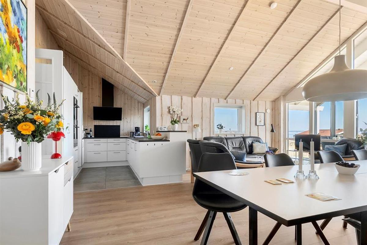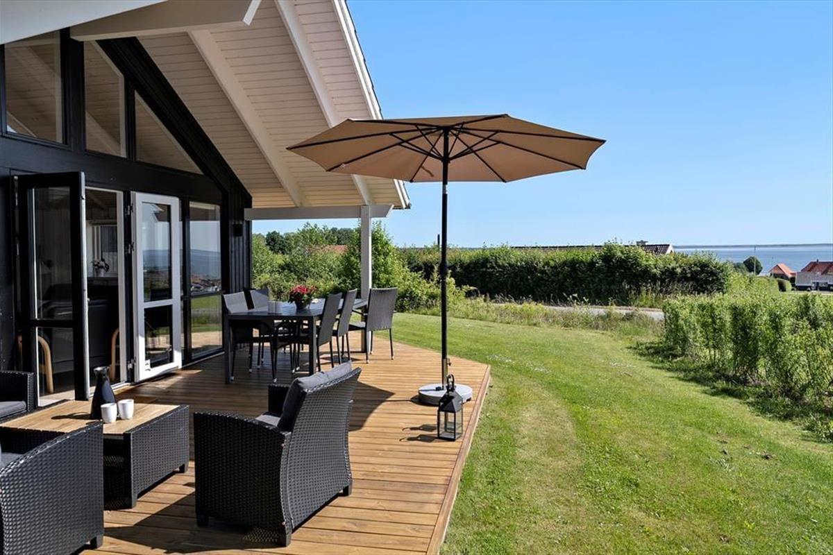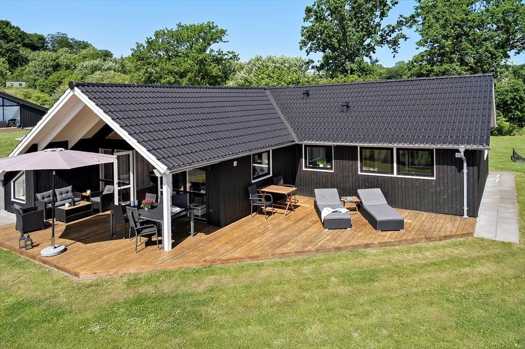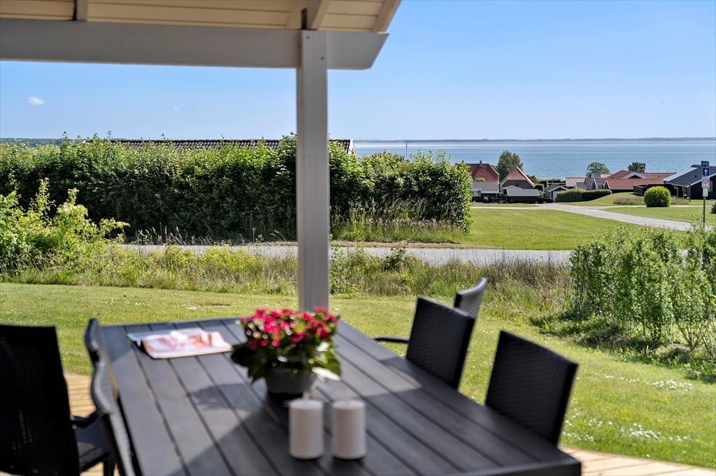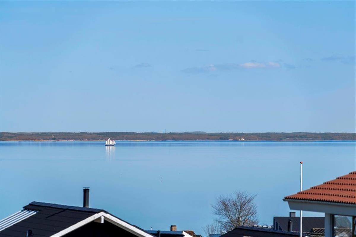 The outdoor area is designed for both relaxation and play. The holiday home boasts several terraces, one of which is partially covered, allowing you to find shade or soak up the sun from morning to evening. Start your day with a cup of coffee on the terrace while taking in the breathtaking panoramic sea view, or gather the family for a delightful barbecue evening with the scent of summer in the air. Children can have fun in the sandbox or on the swings while the adults enjoy the tranquility and fresh air. The scenic surroundings invite you to take long walks through the hilly landscape, where you can discover the stunning viewpoints of Skamlingsbanken.