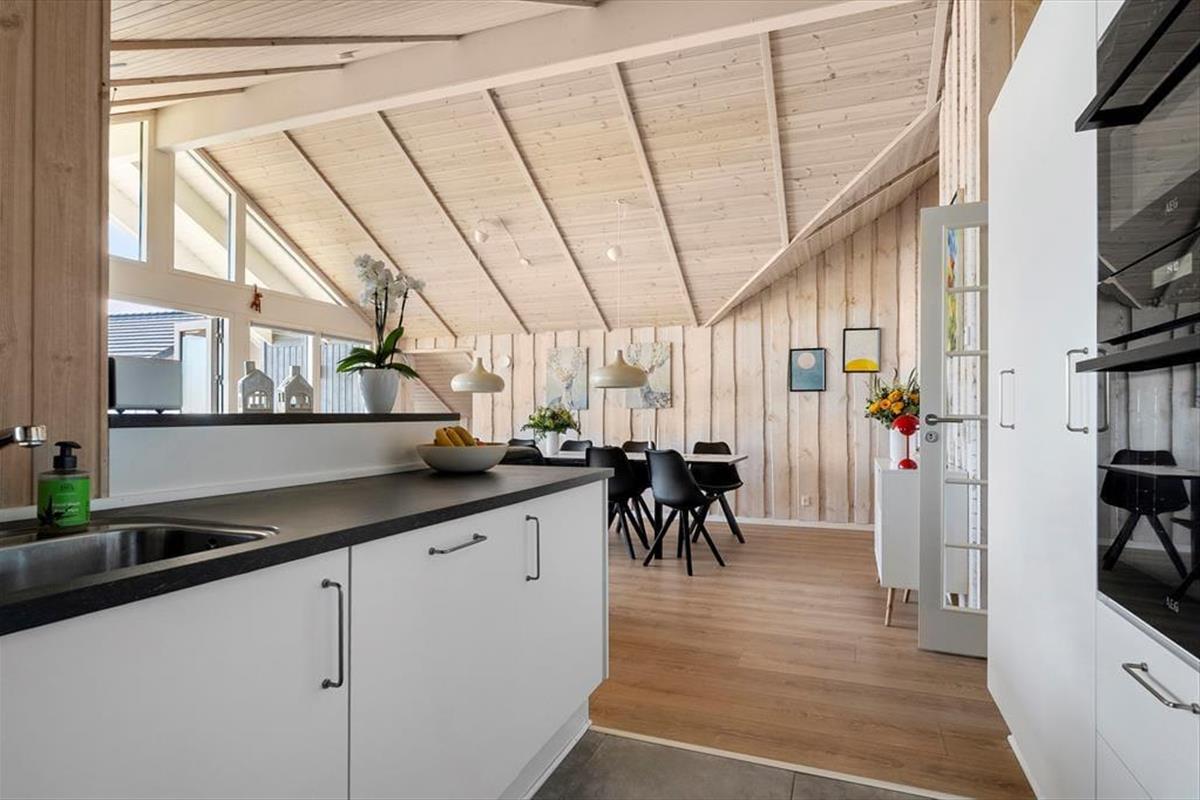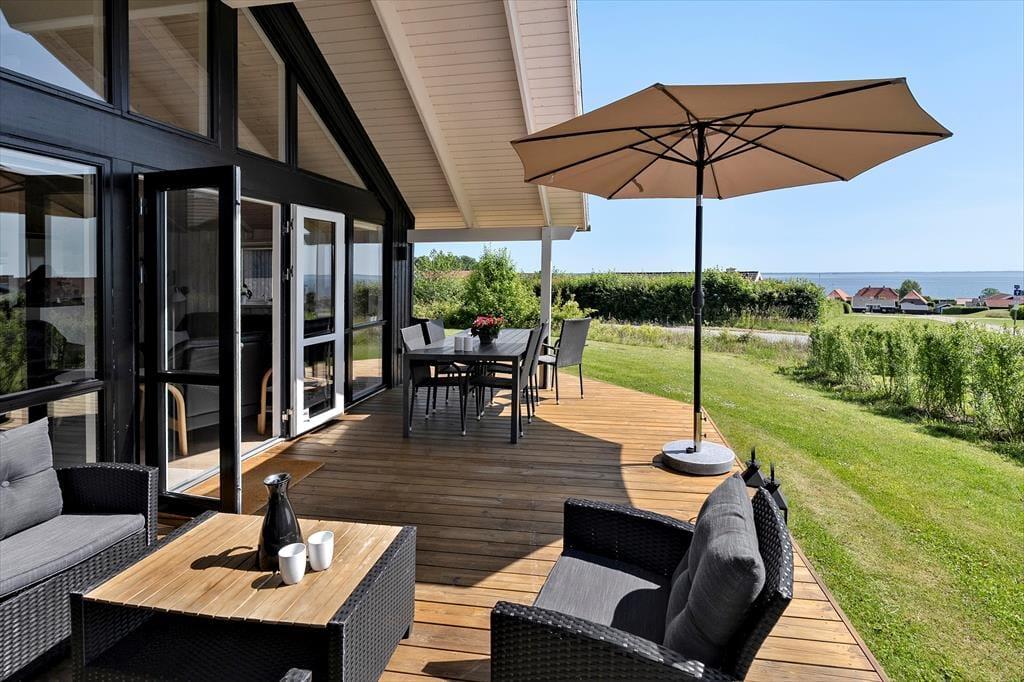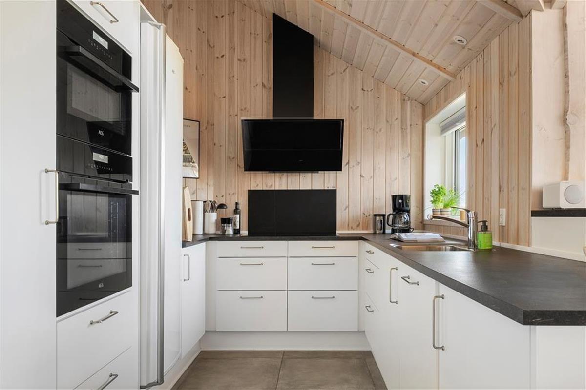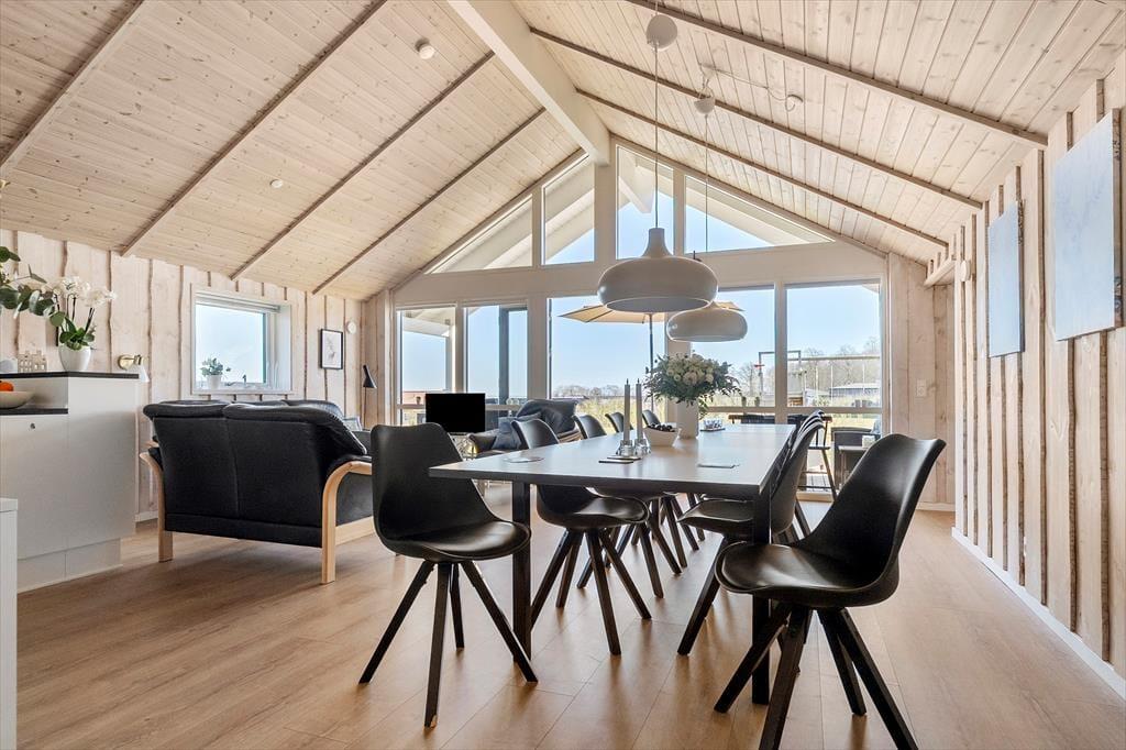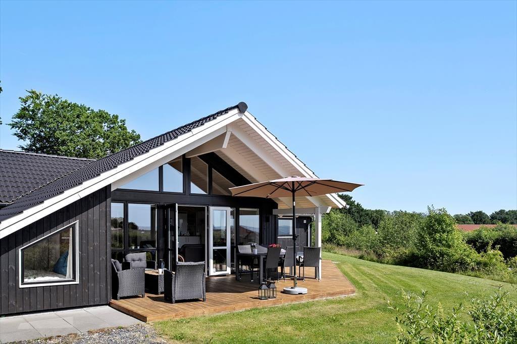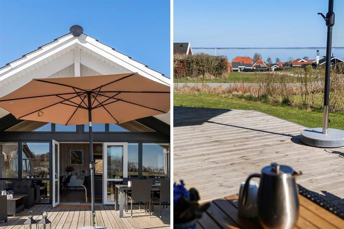 The outdoor area is designed for both relaxation and play. The holiday home boasts several terraces, one of which is partially covered, allowing you to find shade or soak up the sun from morning to evening. Start your day with a cup of coffee on the terrace while taking in the breathtaking panoramic sea view, or gather the family for a delightful barbecue evening with the scent of summer in the air. Children can have fun in the sandbox or on the swings while the adults enjoy the tranquility and fresh air. The scenic surroundings invite you to take long walks through the hilly landscape, where you can discover the stunning viewpoints of Skamlingsbanken.