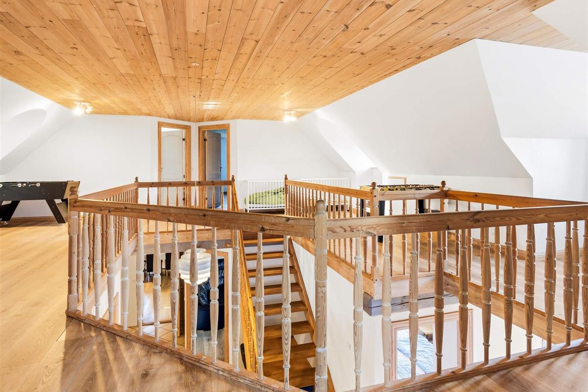 Das Haus ist innen mit offener Küche, zwei Wohnräumen mit TV, einem Esszimmer, sieben Schlafzimmern und drei Badezimmern ausgestattet. Im oberen Geschoss befindet sich ein Aktivitätsraum mit Tischfußball.