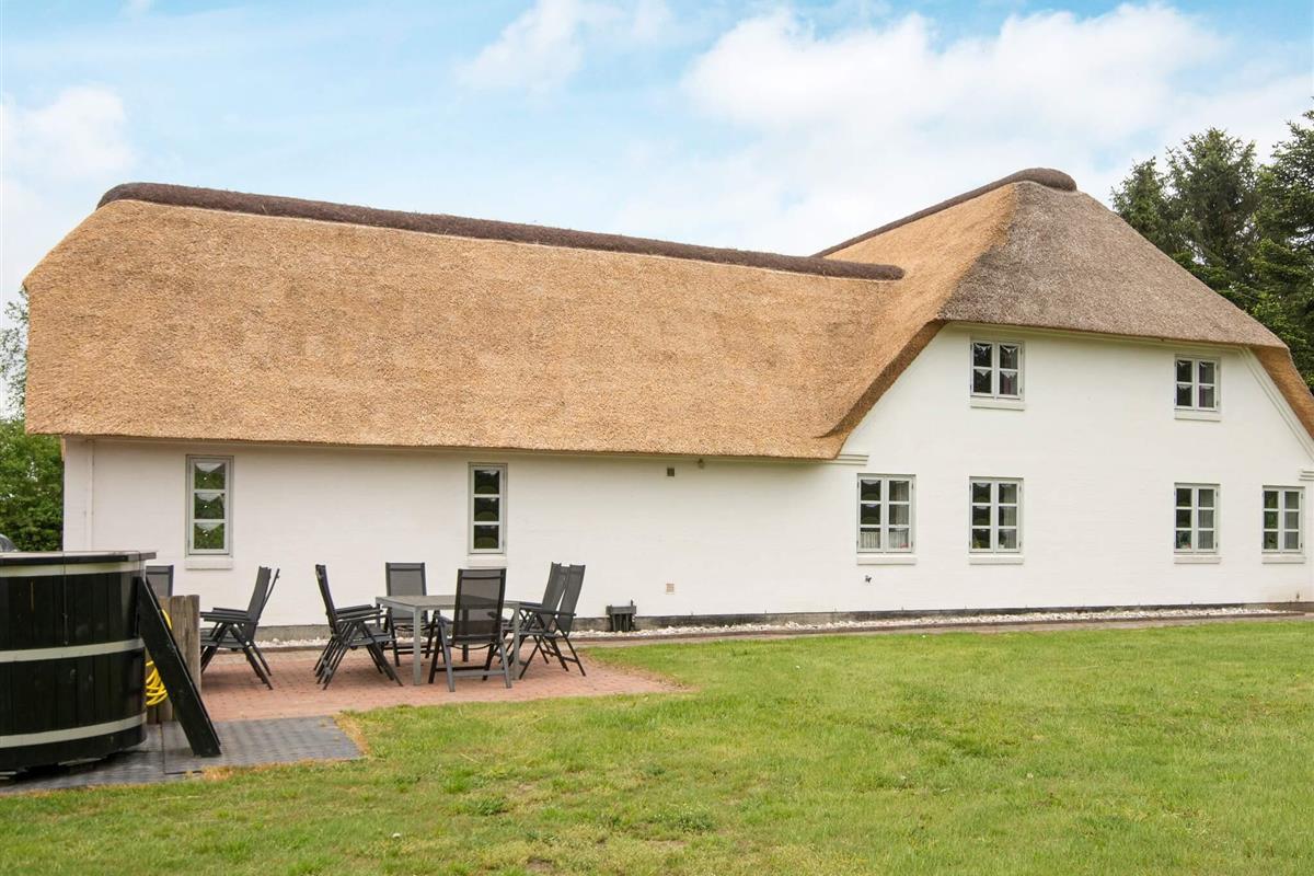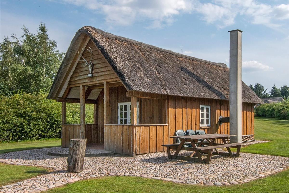 Geräumiges 18-Personen Ferienhaus mit Reetdach und Badezuber im Außenbereich. Außerdem stehen ein Aktivitätsraum, ein eigener See und eine große Jagdhütte zur Verfügung.
