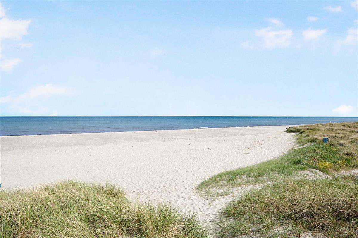 The holiday home area around Grenaa Beach is a very quiet, child-friendly, and attractive location. Close to the house, you’ll find heathland and forest with several running and cycling routes. Here, you will also find Denmark's longest single-track mountain bike trail, stretching 23 km. The beach is one of Jutland's best sandy beaches, featuring dunes and tidal pools, fine sand, a sandy bottom, and a Blue Flag. The harbor, which is full of life during the summer, also has several good restaurants. It's also home to the Kattegatcenter, where you can get close to the sharks. From the harbor, there are daily sailings to Halmstad in Sweden and Anholt. Grenaa town also offers many charming shops and cafes, and you can visit the Museum Østjylland. From Grenaa, it's about a 30-minute drive to Northern Europe’s largest amusement park, Djurs Sommerland, and about an hour's drive to Randers Regnskov.