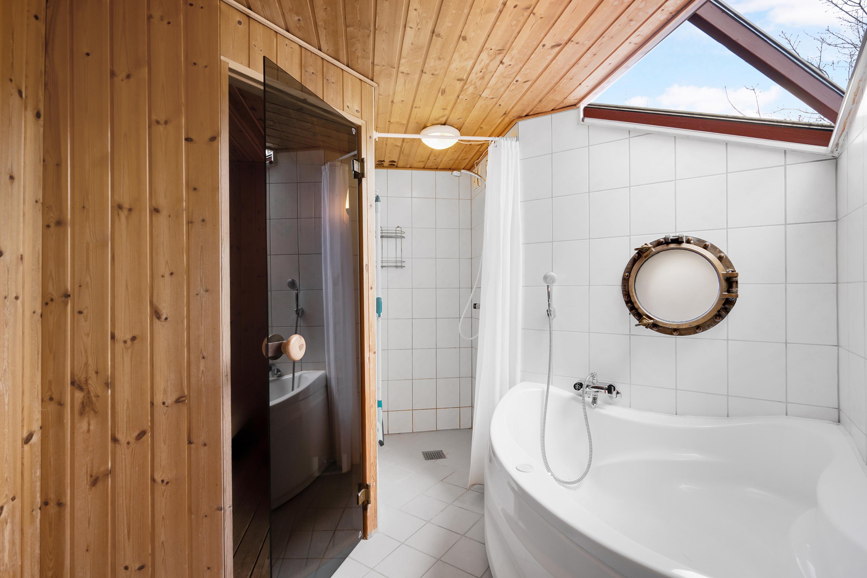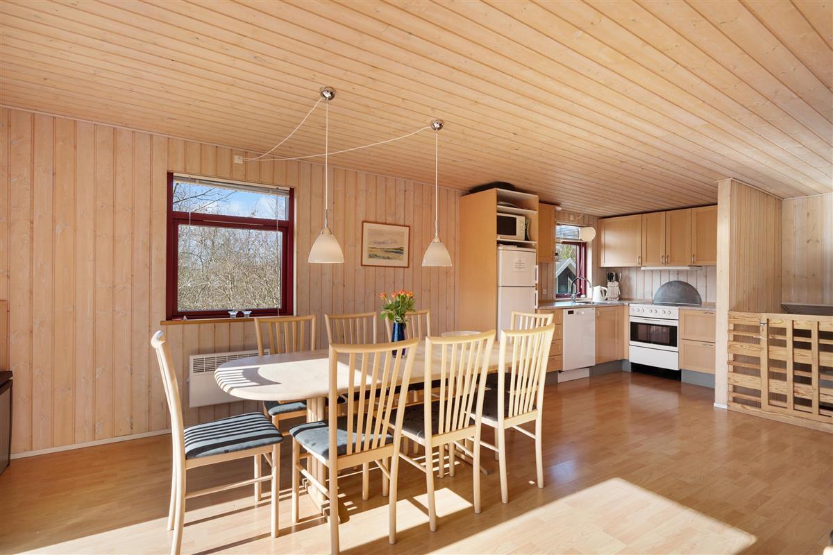 Just 150 meters from one of Jutland's best beaches, you will find this cozy two-story holiday home. The sleeping area is located on the lower floor, where you will find 3 good bedrooms; two rooms with double beds and one room with a double bed and a bunk bed. There are two good bathrooms, one of which includes a spa bath and access to a sauna. There is also access to both a washing machine and a tumble dryer. From the entrance, a staircase leads to the first floor, where you will find the bright living room with a wood stove and heat pump, and from there, access to a cozy terrace with garden furniture. The kitchen area is connected to the living room and includes a dishwasher. The house offers Danish (including TV2), German, Norwegian, and Swedish channels, as well as internet.
