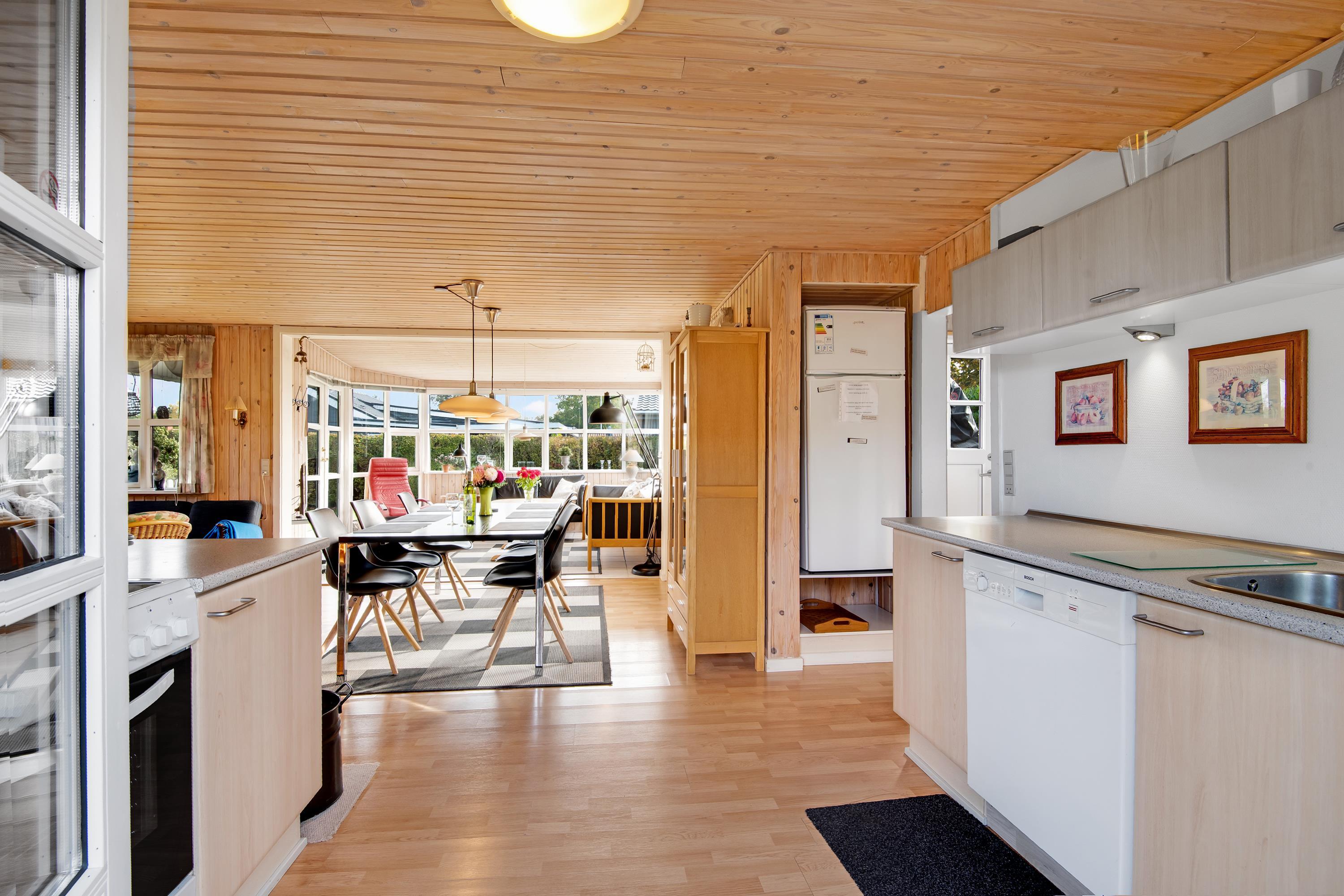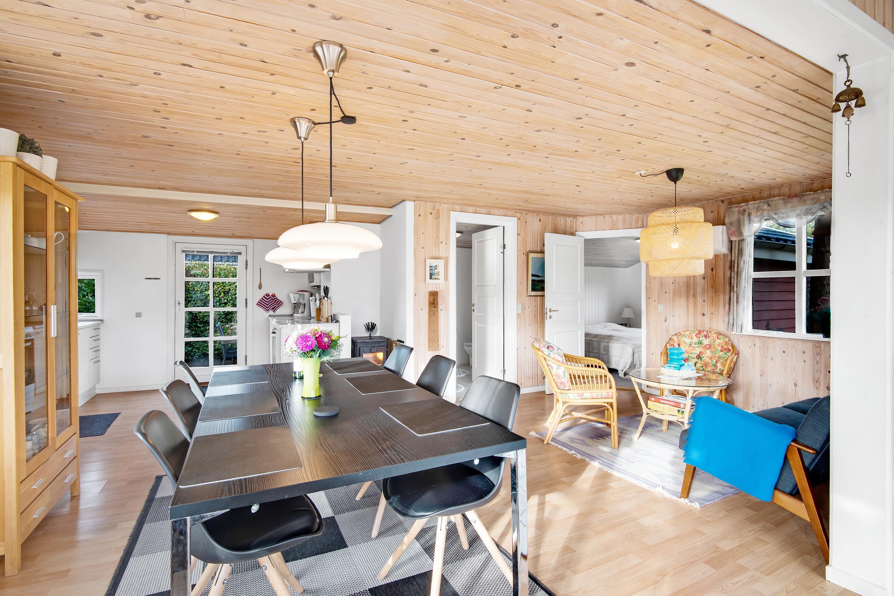 Not far from a lovely bathing beach, you will find this charming and well-maintained house. The house features a cozy living room, including a fireplace. Connected to the living room is the newer and functional kitchen, which includes a dishwasher and leads to a terrace. The neat bathroom offers underfloor heating, a shower niche, and a washing machine. The sleeping arrangements consist of three bedrooms: two with double beds and one with two single beds. For younger guests, there is a high chair and a crib.