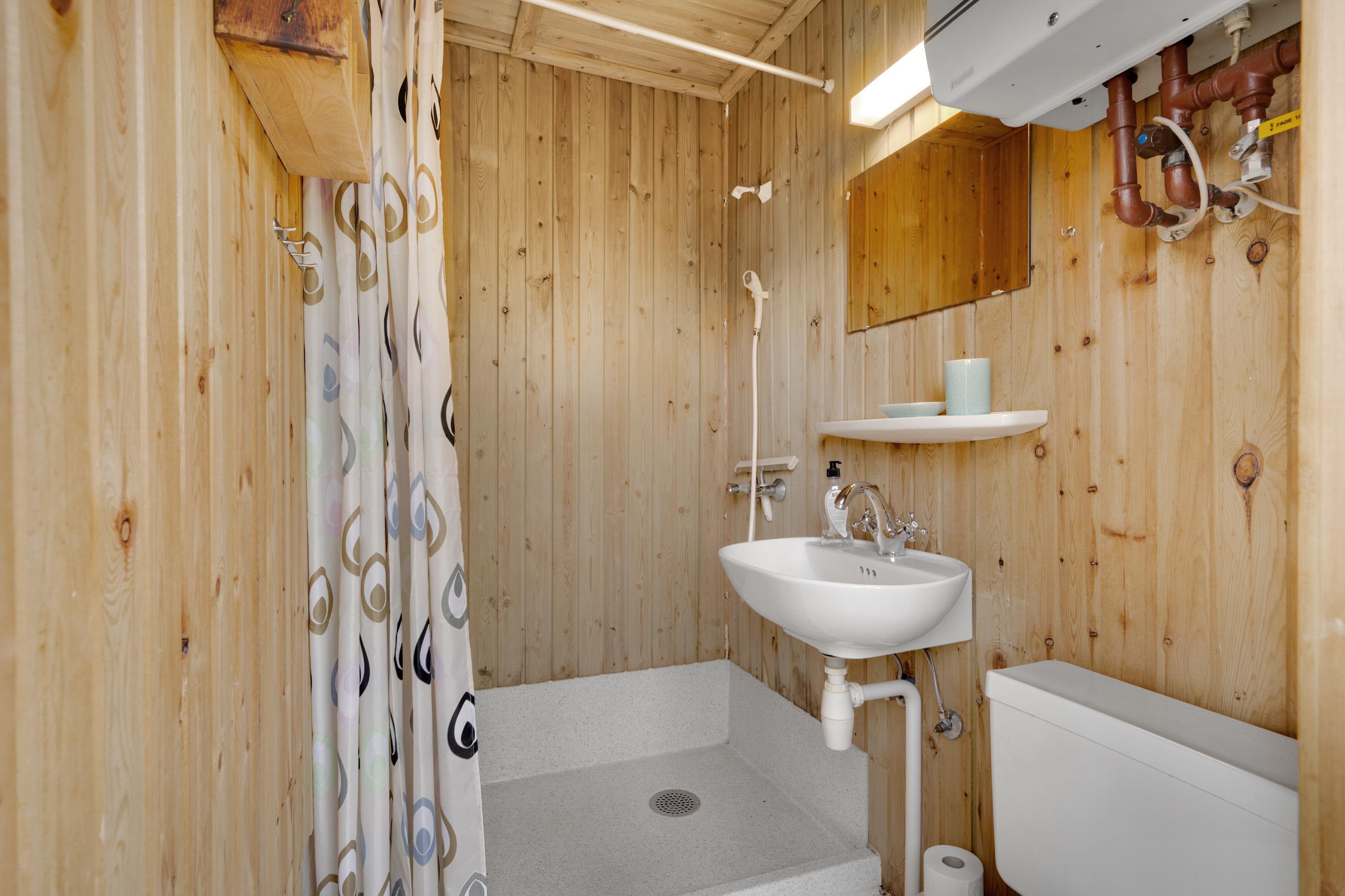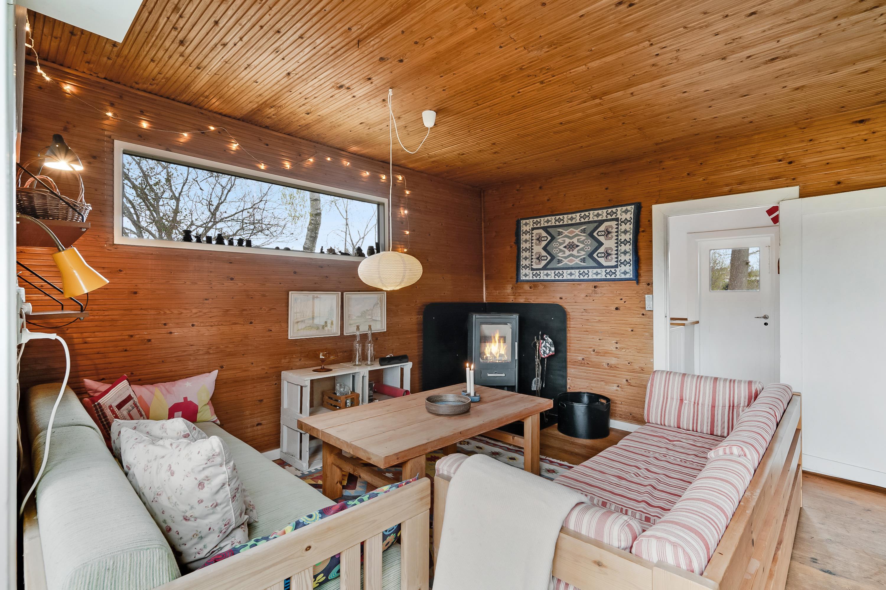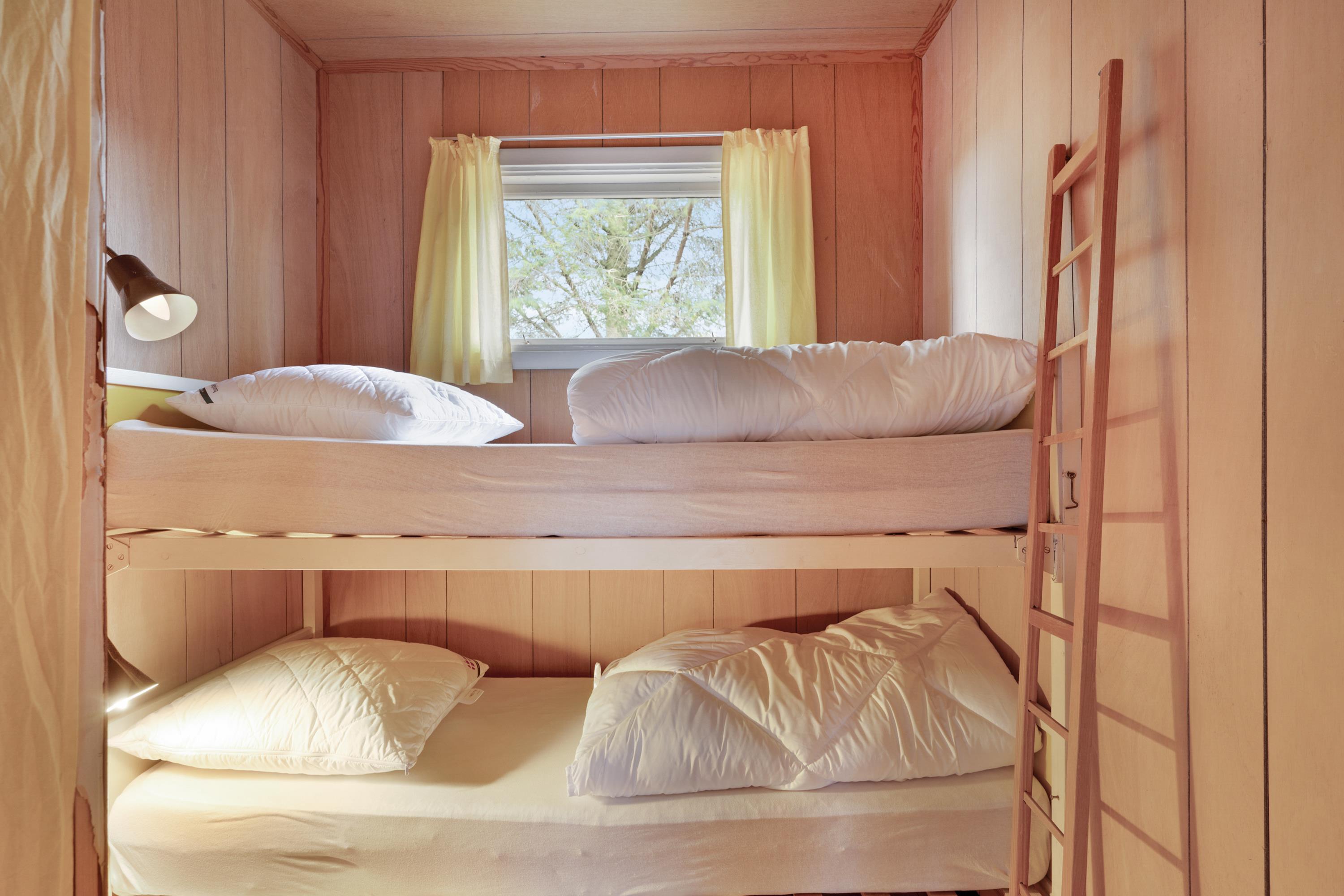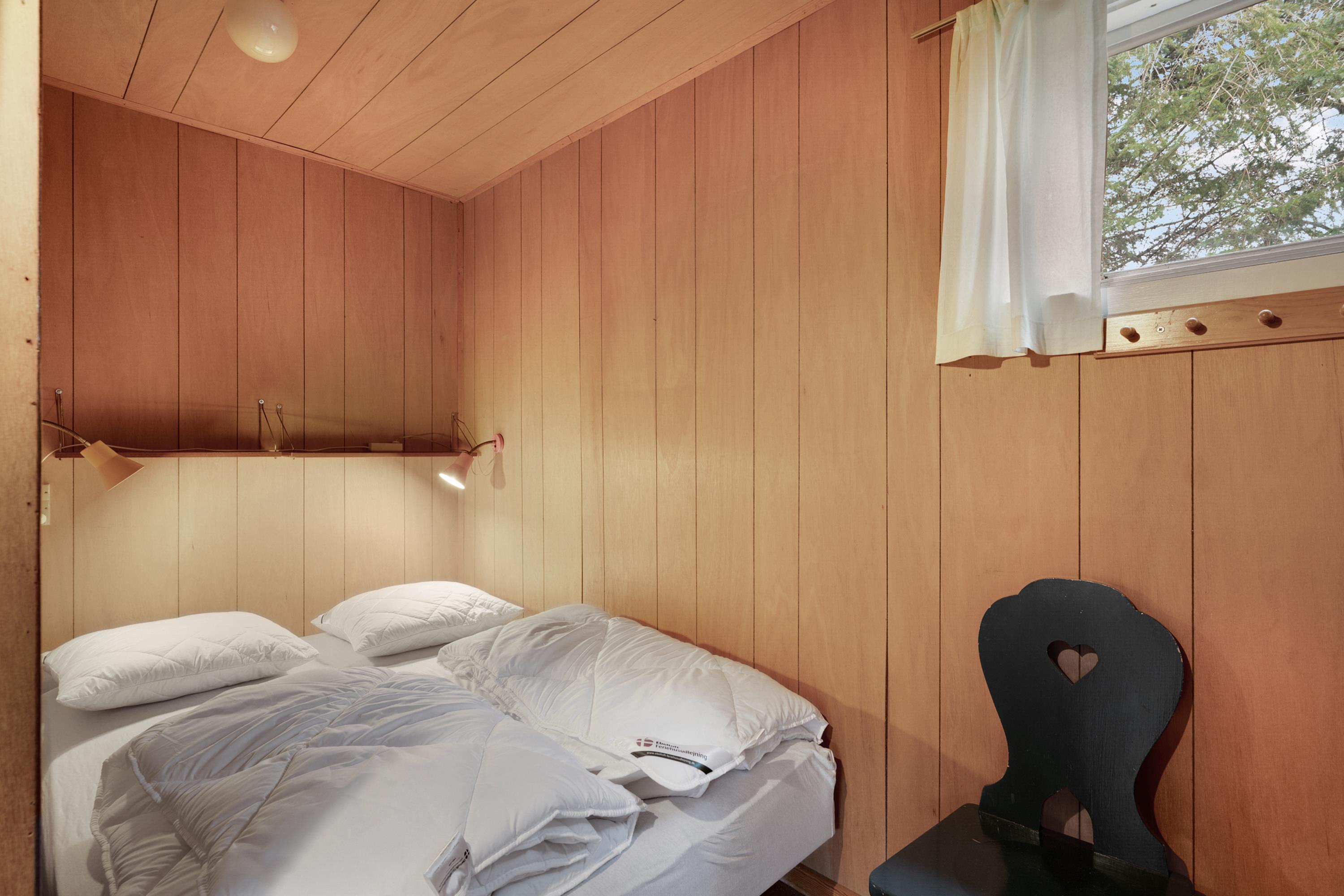 Close to one of Jutland's best bathing beaches, you will find this small holiday home/cabin of 55 m², located on a lovely plot with heathland in the background. The house is authentic, offering a true offline experience where nature takes precedence over comfort. Inside, you’ll find a cozy small living room with a fireplace and access to a lovely terrace with garden furniture and a barbecue. From the terrace, you can enjoy the most beautiful views of the forest and heathland, and you may be lucky enough to spot deer and hares in the backyard. The house features three small bedrooms: one with a single bed, one with a double bed, and one with a bunk bed (180 cm in length). There is a small but functional kitchen, and an integrated toilet with a shower niche, located just a few steps outside the door. As mentioned, this house is completely offline—there is neither TV nor internet, but an internet router can be rented at the office, and you can bring your own computer.