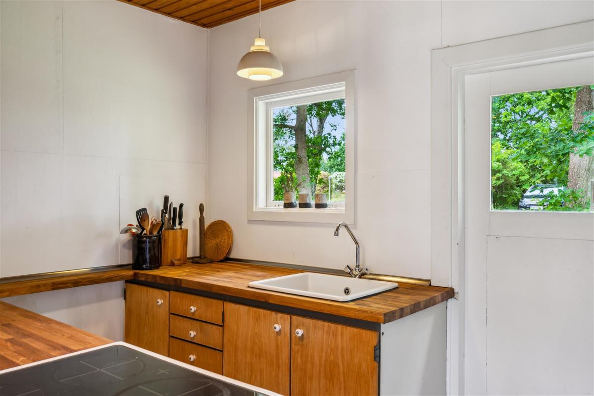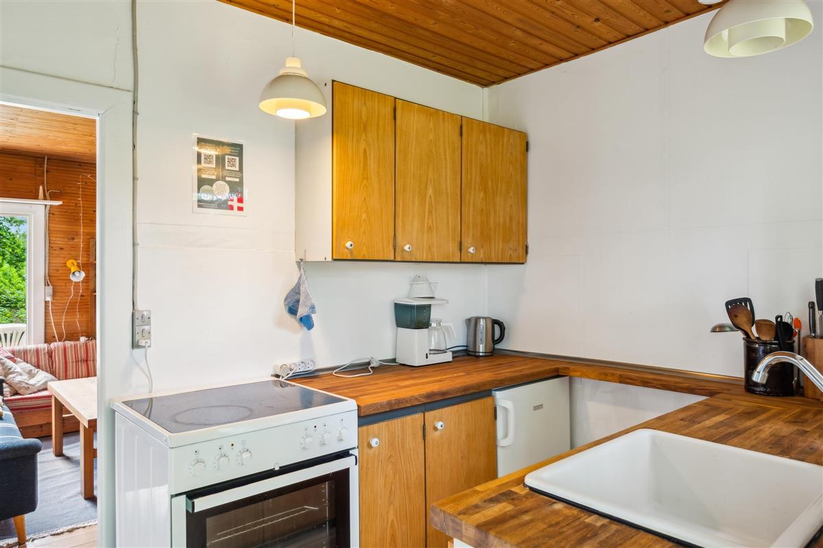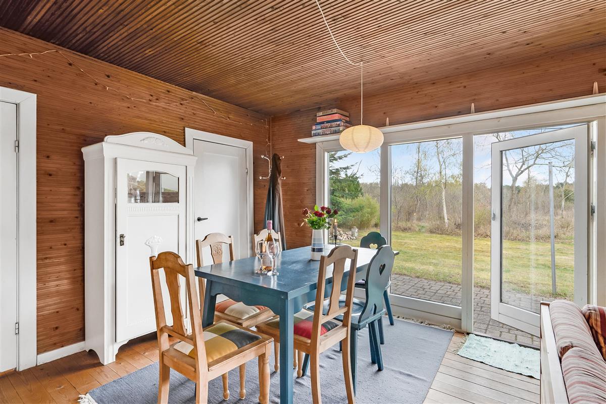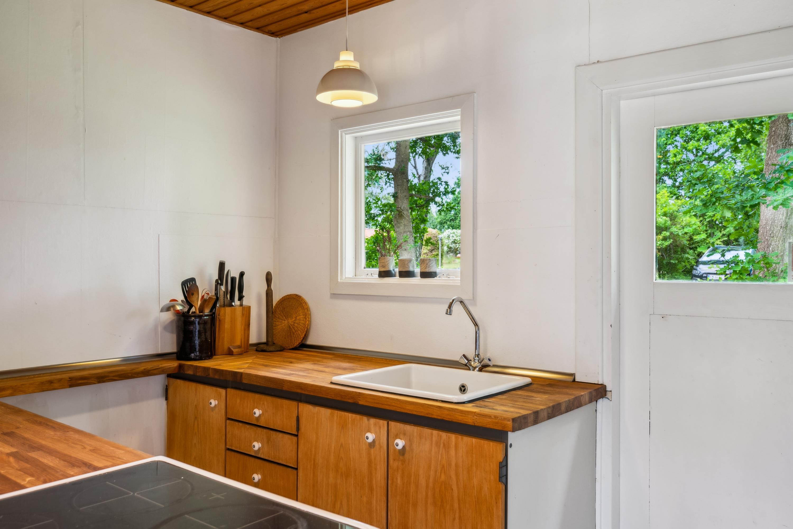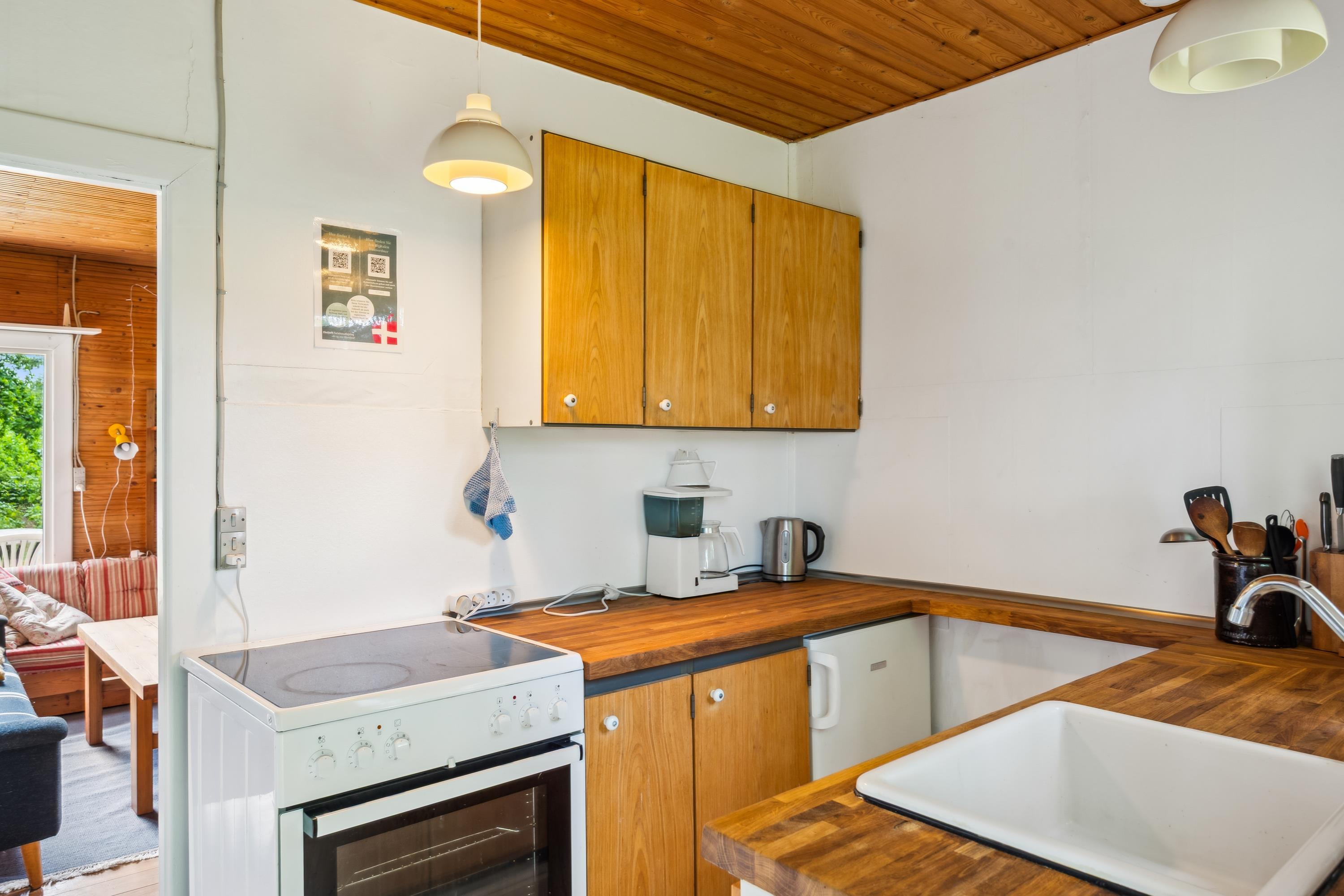 Close to one of Jutland's best bathing beaches, you will find this small holiday home/cabin of 55 m², located on a lovely plot with heathland in the background. The house is authentic, offering a true offline experience where nature takes precedence over comfort. Inside, you’ll find a cozy small living room with a fireplace and access to a lovely terrace with garden furniture and a barbecue. From the terrace, you can enjoy the most beautiful views of the forest and heathland, and you may be lucky enough to spot deer and hares in the backyard. The house features three small bedrooms: one with a single bed, one with a double bed, and one with a bunk bed (180 cm in length). There is a small but functional kitchen, and an integrated toilet with a shower niche, located just a few steps outside the door. As mentioned, this house is completely offline—there is neither TV nor internet, but an internet router can be rented at the office, and you can bring your own computer.
