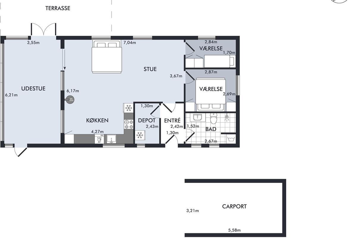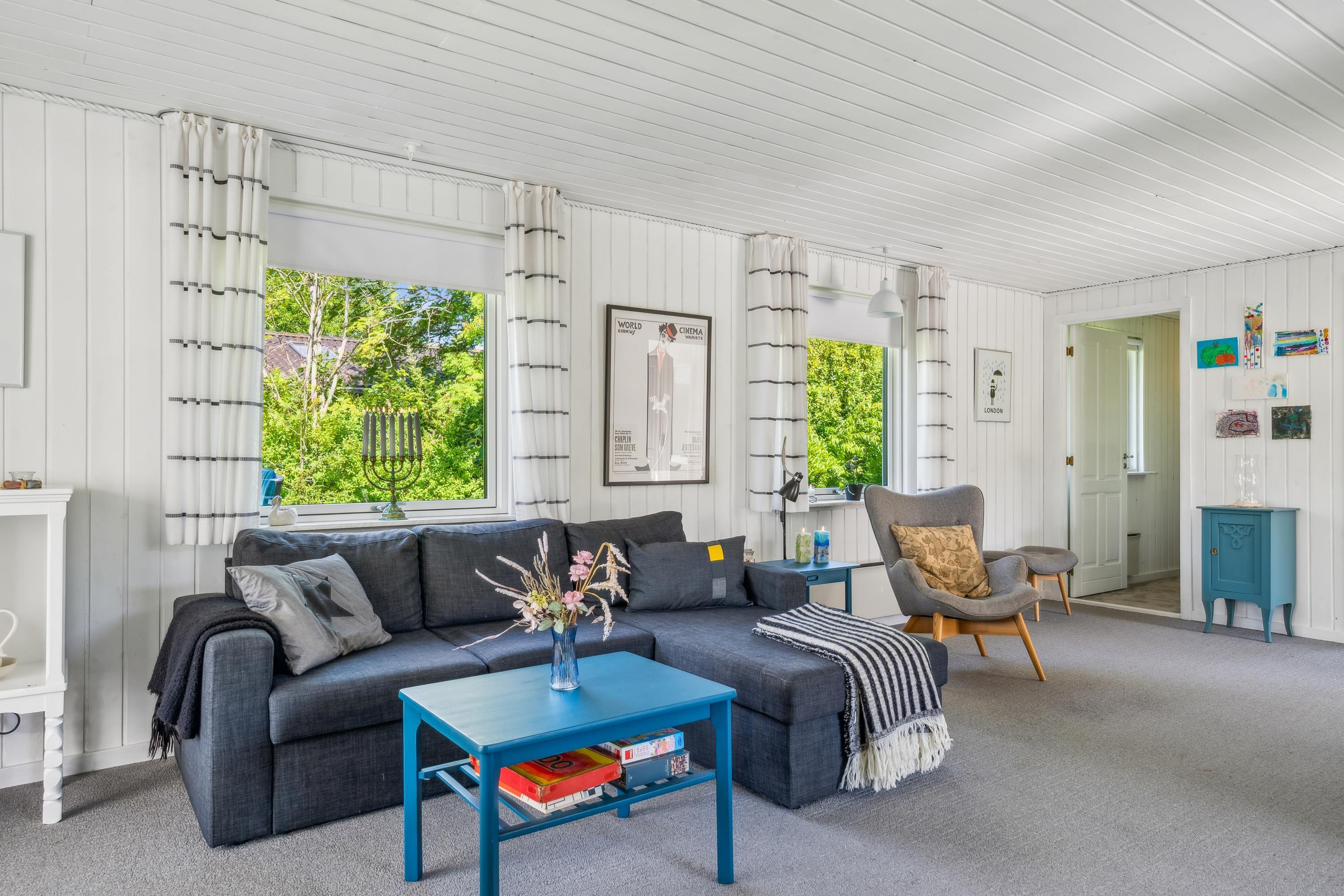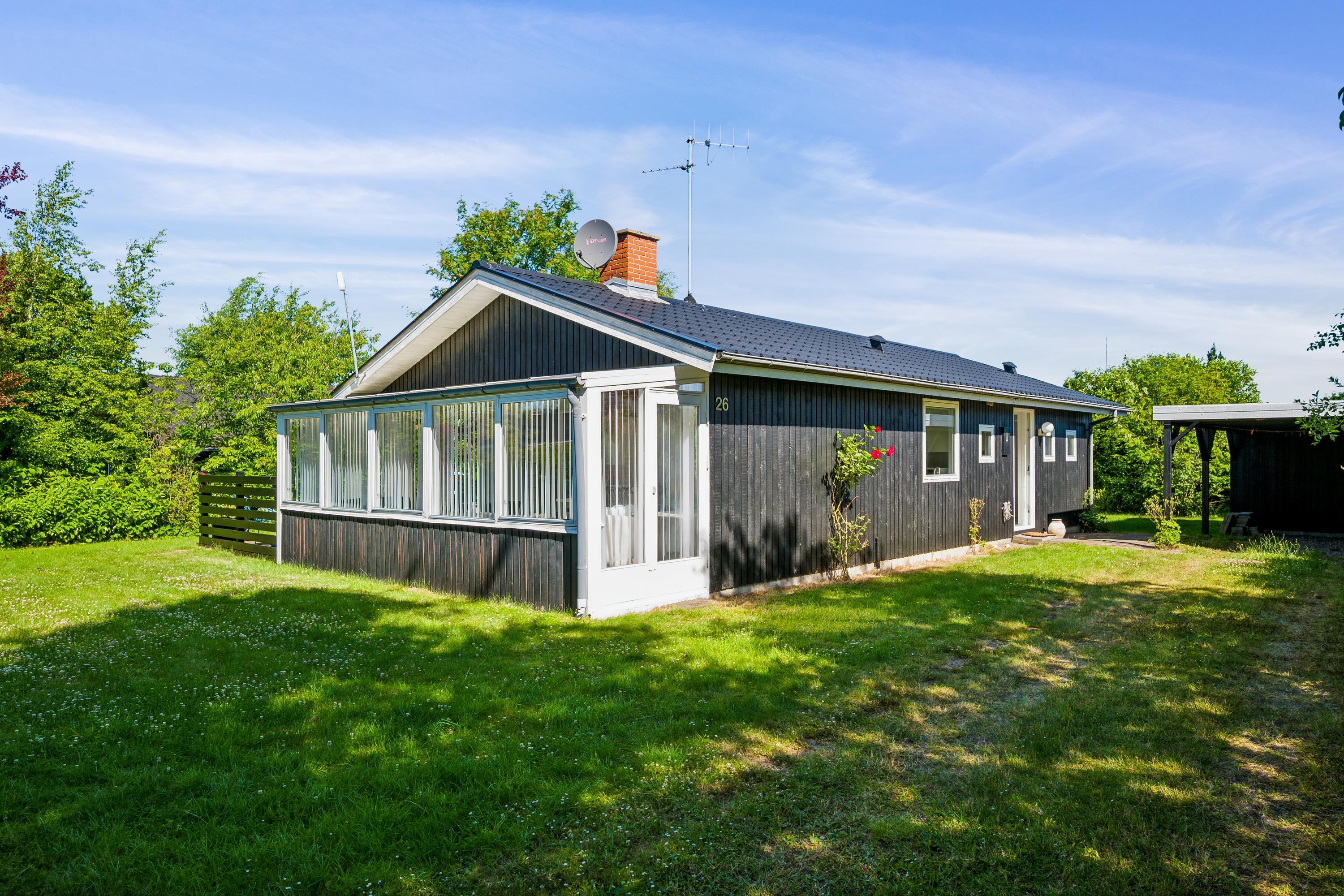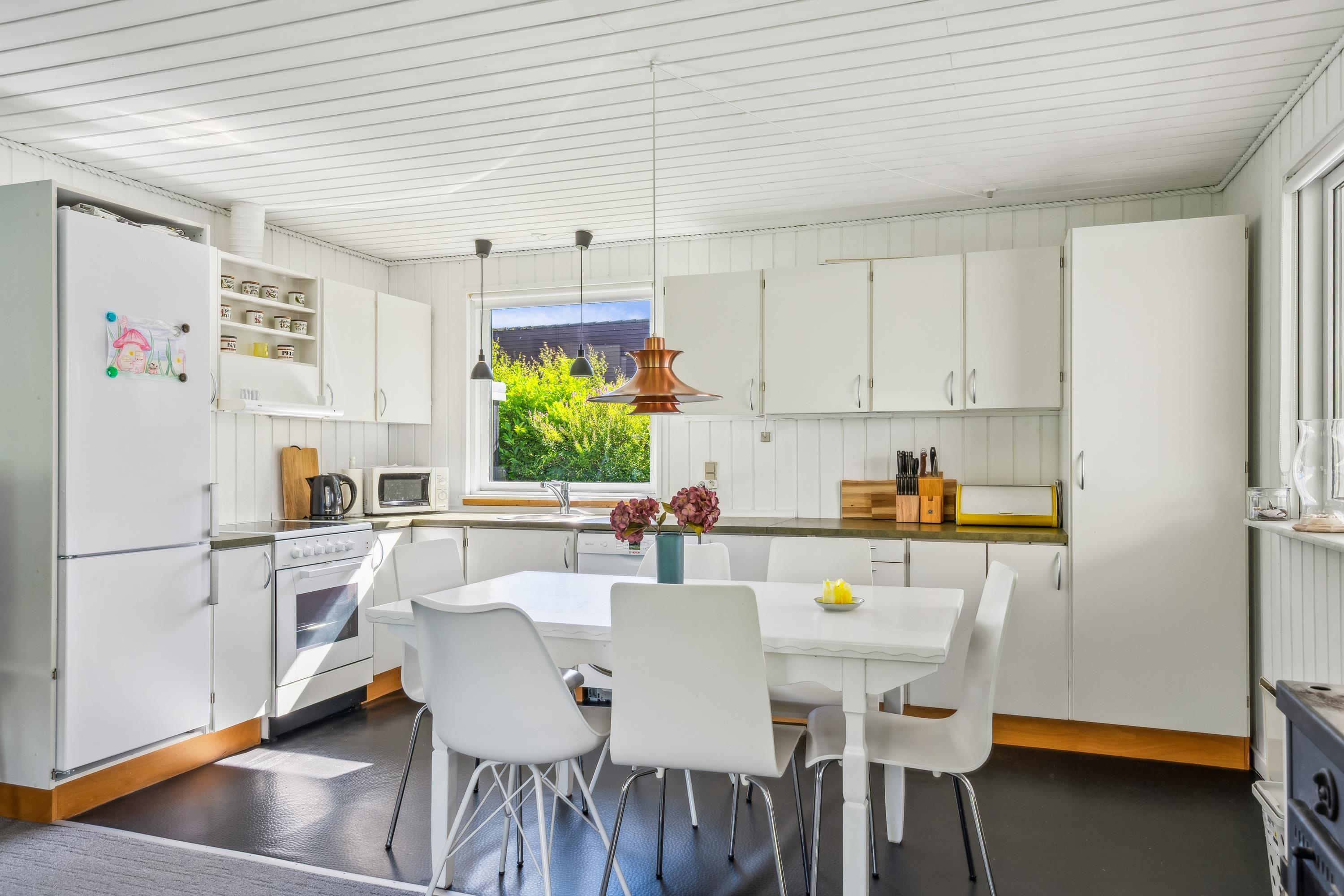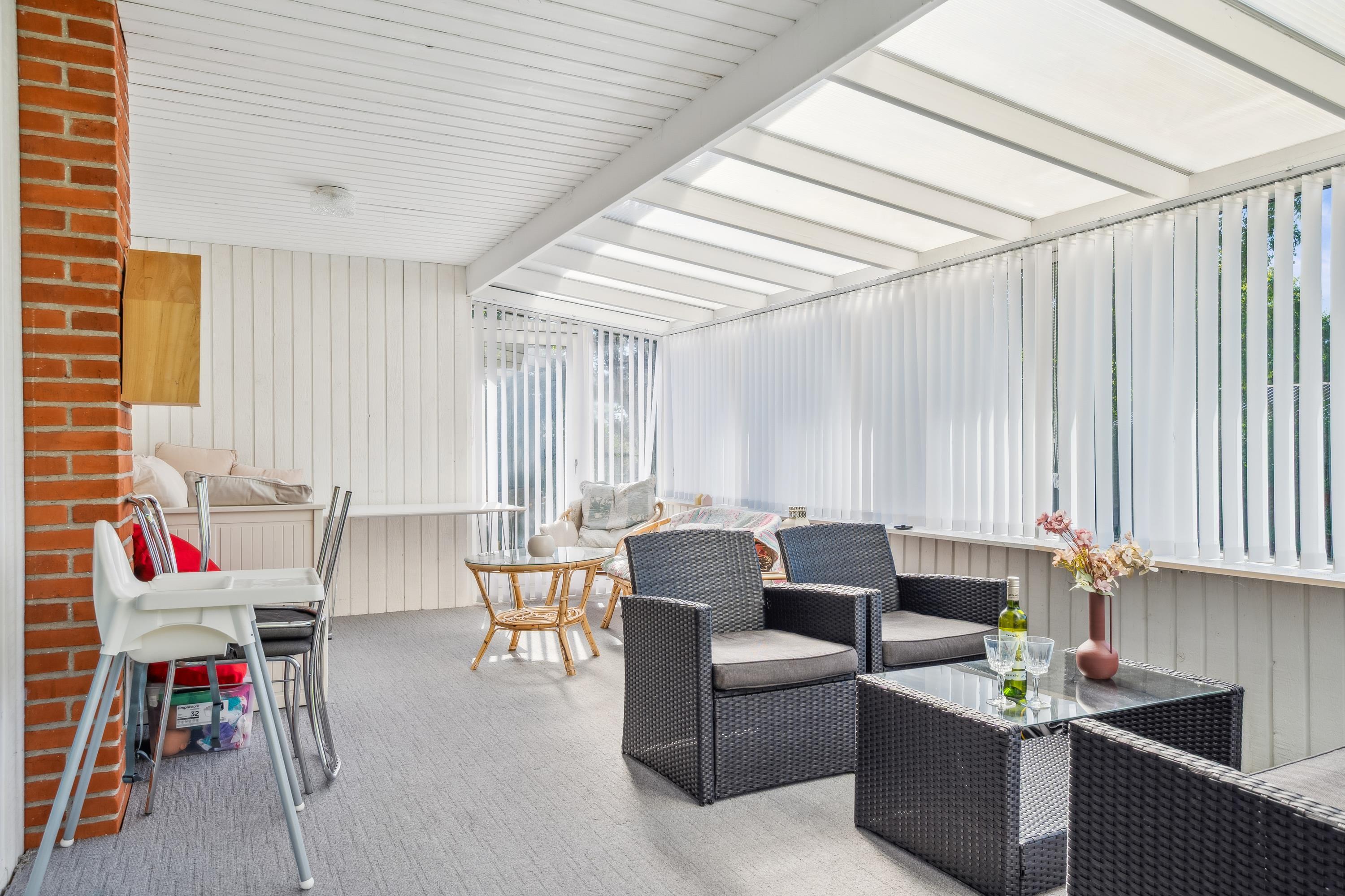 Close to one of Jutland’s finest bathing beaches, you’ll find this older yet cozy holiday home. The house features a bright living room with a wood-burning stove and direct access to a lovely sunroom. From the sunroom, there’s access to a nice terrace with garden furniture.