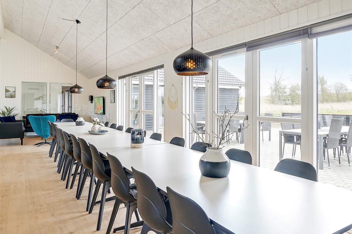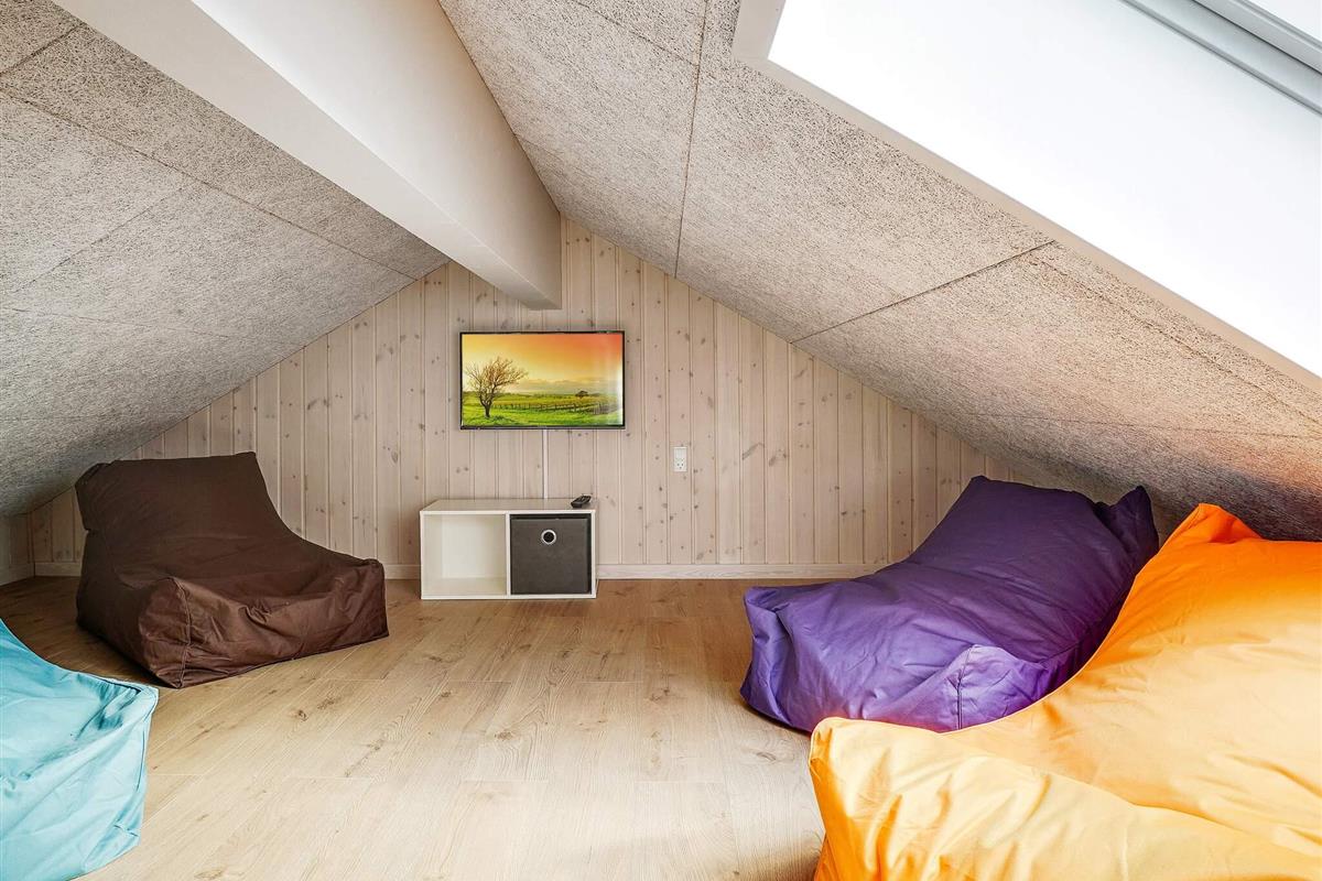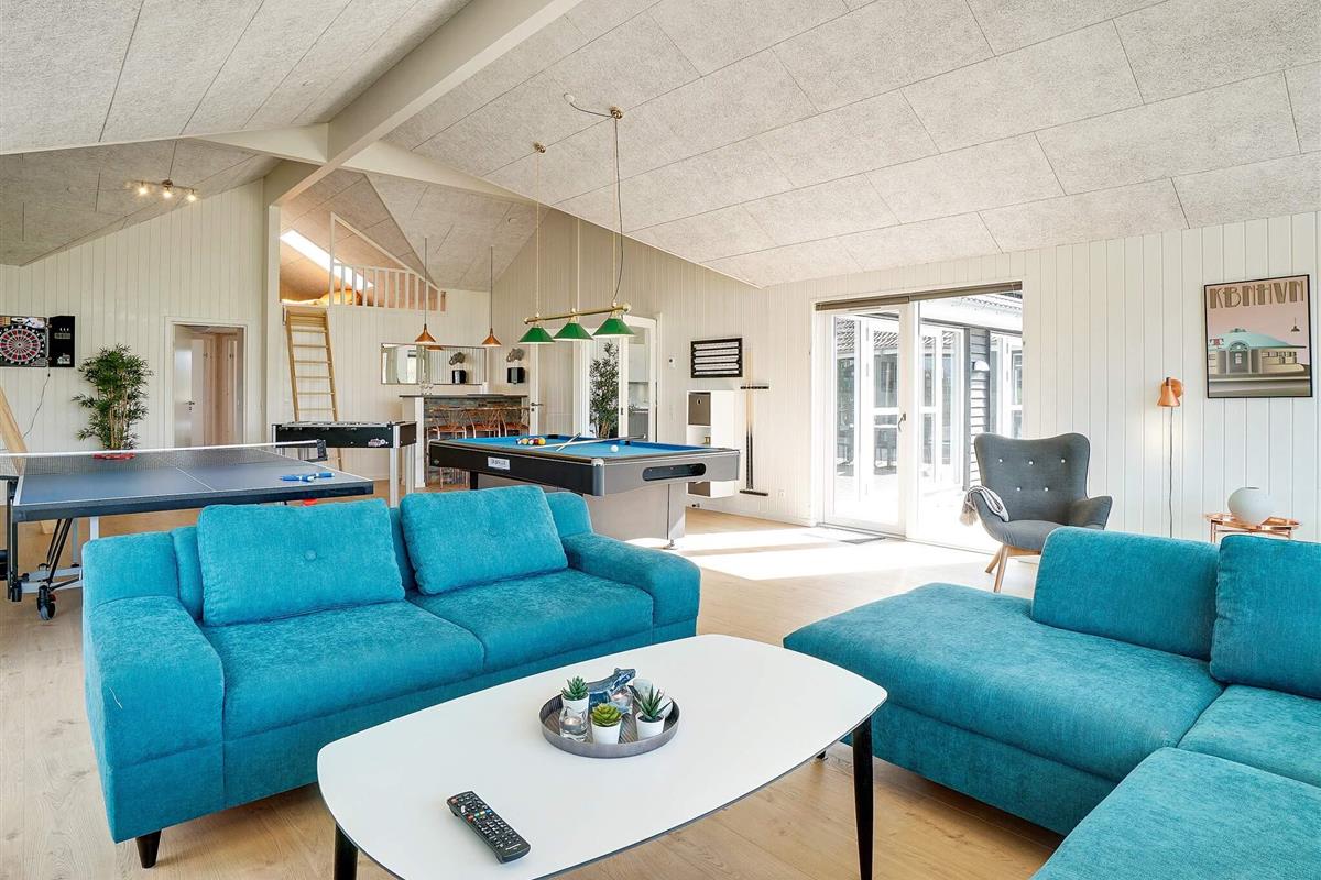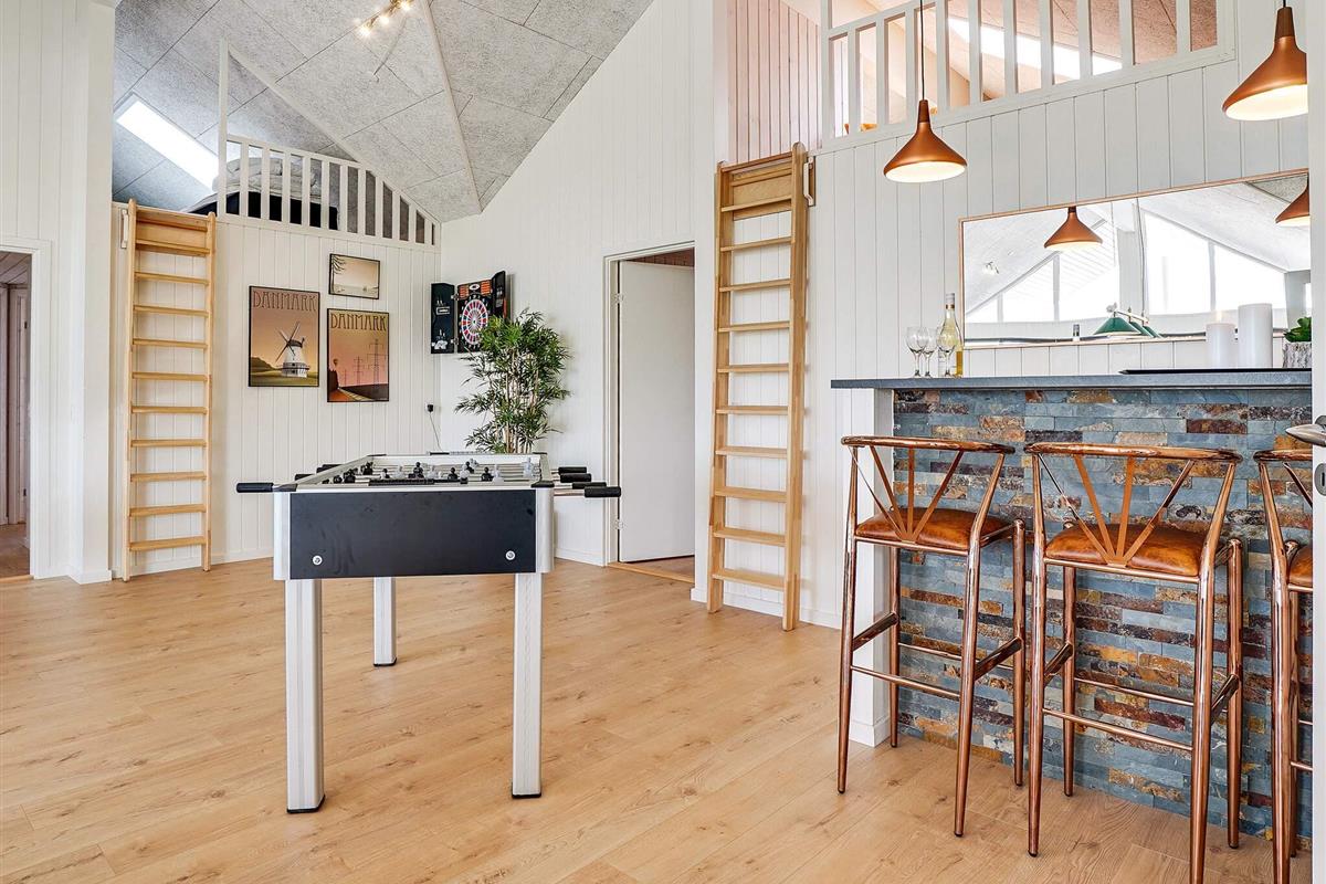 Dieses große Ferienhaus, mit Aktivitäts- und Poolbereich, liegt nur ca. 1500 m vom Grenå Strand entfernt. Die Einrichtung ist modern und geschmackvoll.