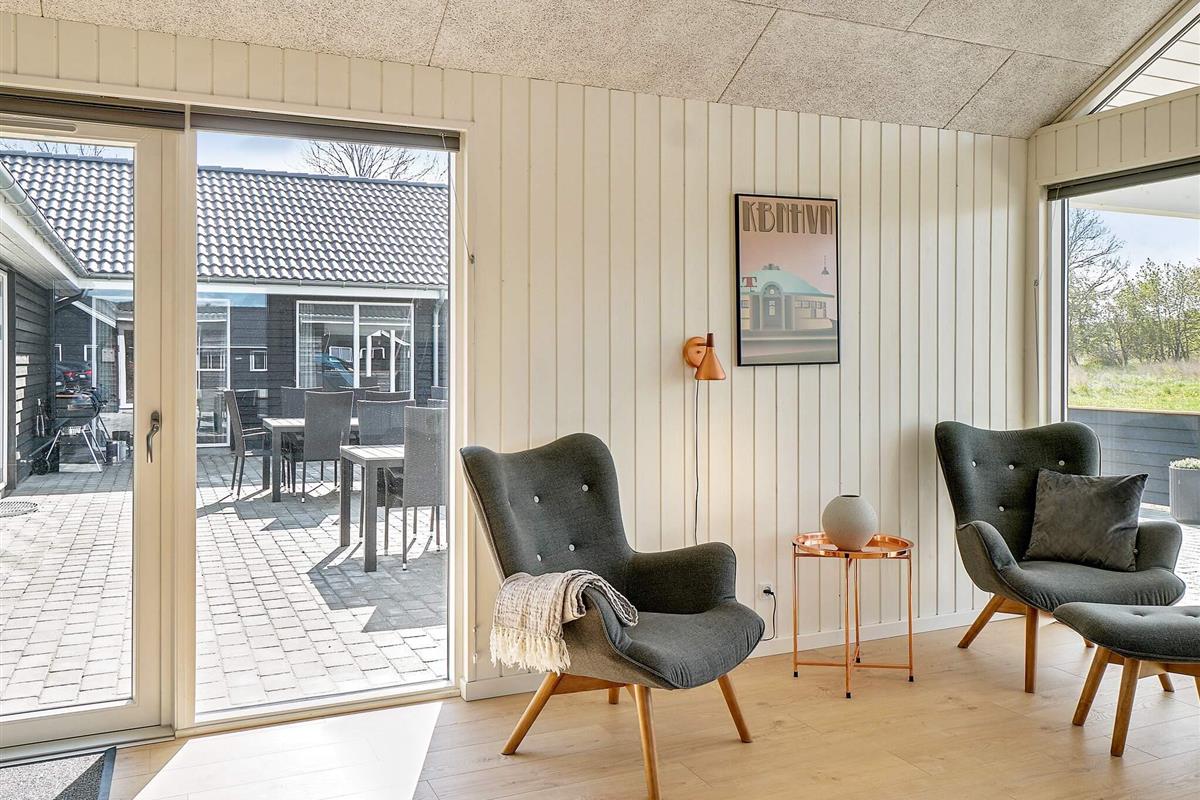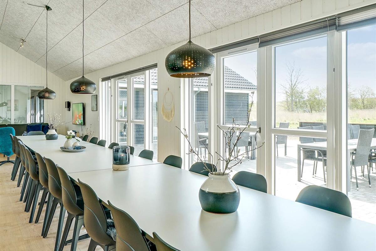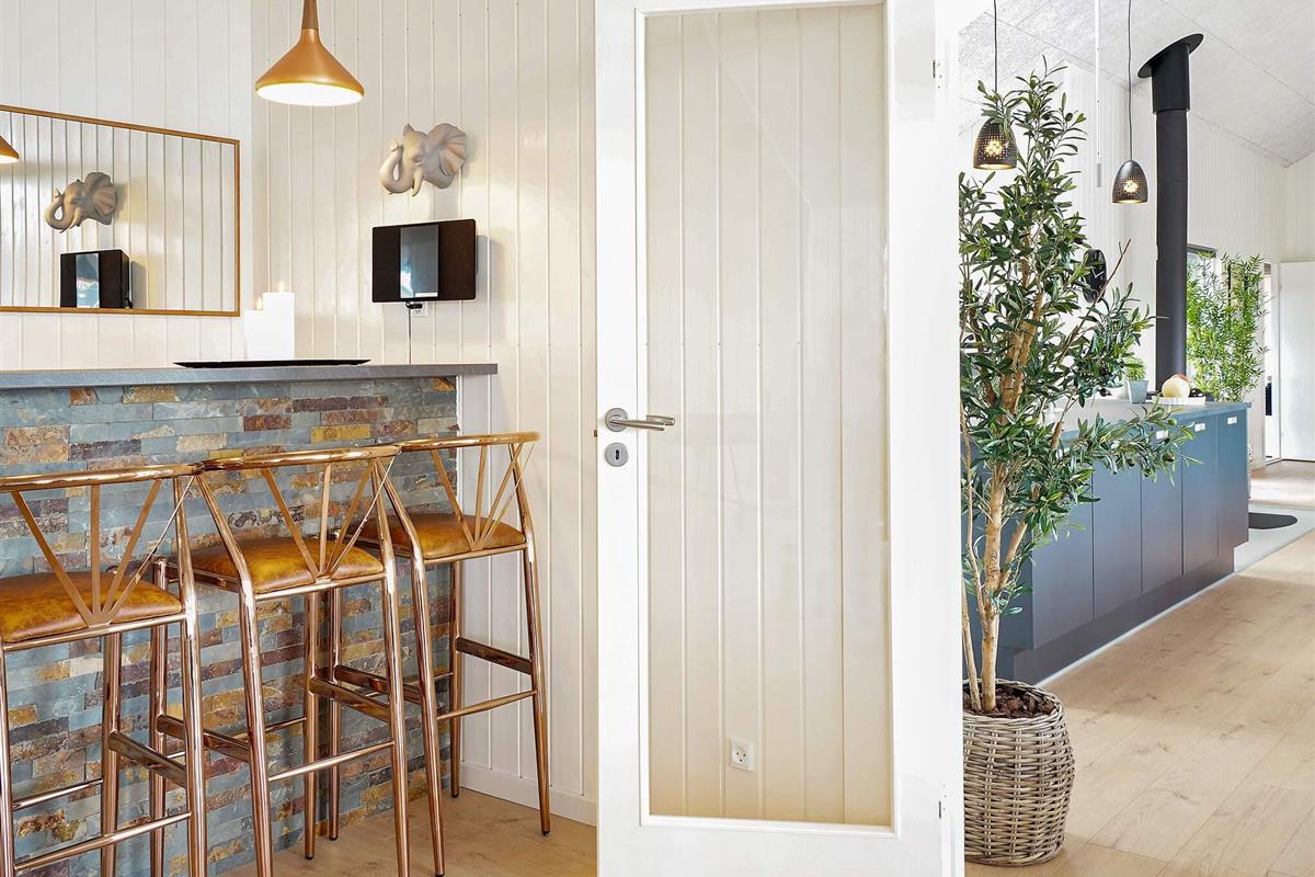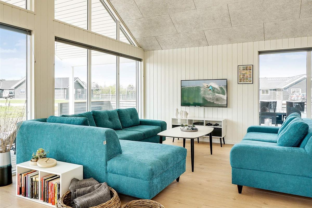Dieses große Ferienhaus, mit Aktivitäts- und Poolbereich, liegt nur ca. 1500 m vom Grenå Strand entfernt. Die Einrichtung ist modern und geschmackvoll.
