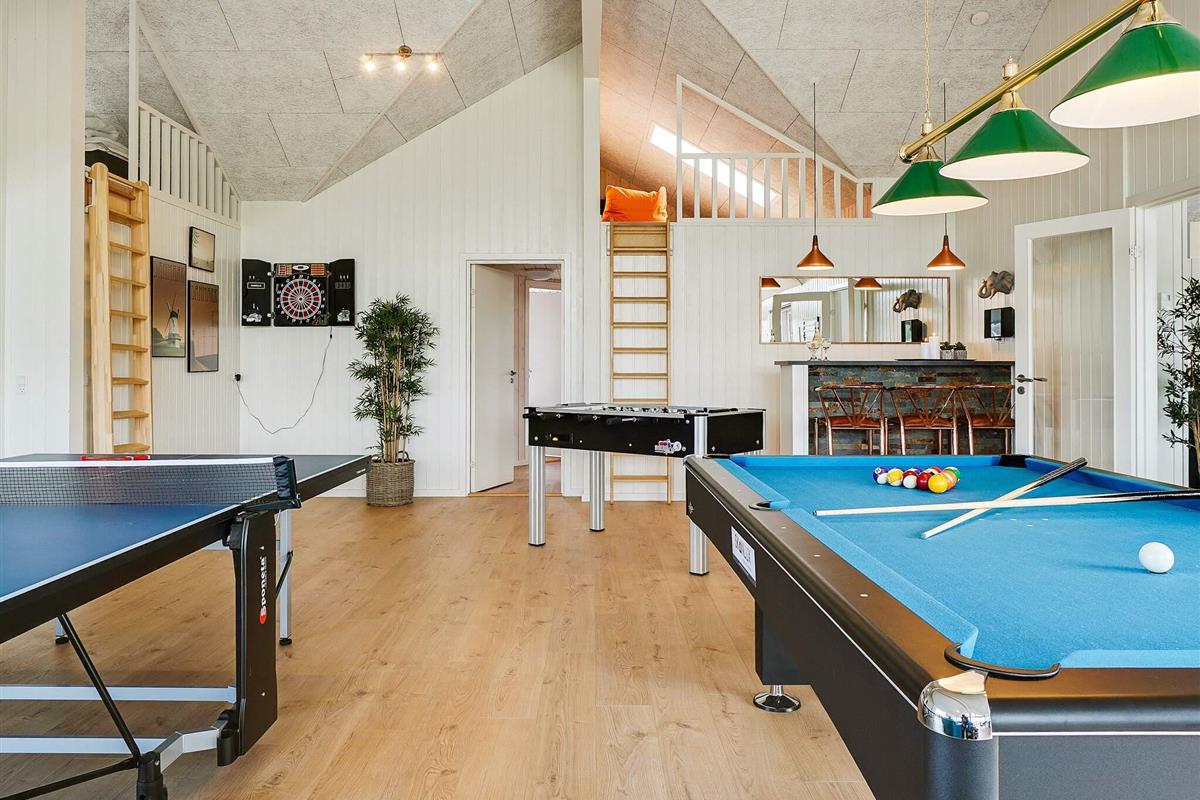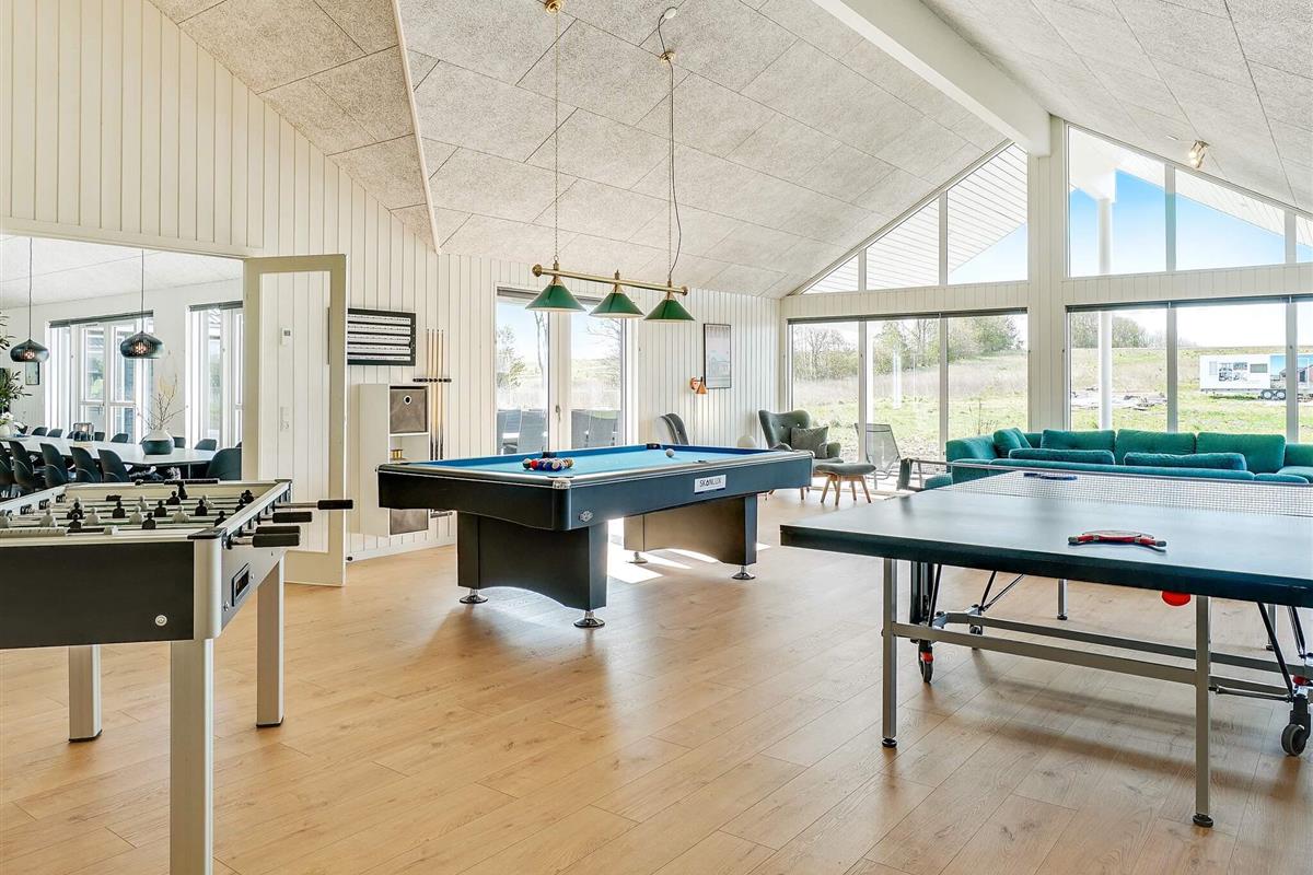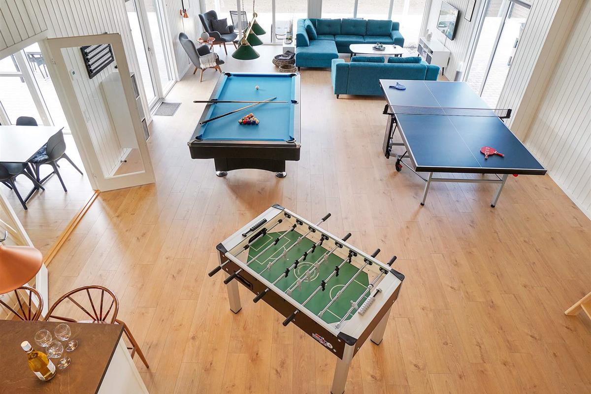 Im Anschluss an den großen Küchen-Wohnbereich finden Sie den Aktivitätsraum, in dem Sie sich bei einer Partie Billard, elektronischem Darts, Tischtennis oder am Kicker herausfordern können. In diesem Raum gibt es auch eine gemütliche Sitzecke, damit Sie eine Pause bei netten Gesprächen einlegen können.