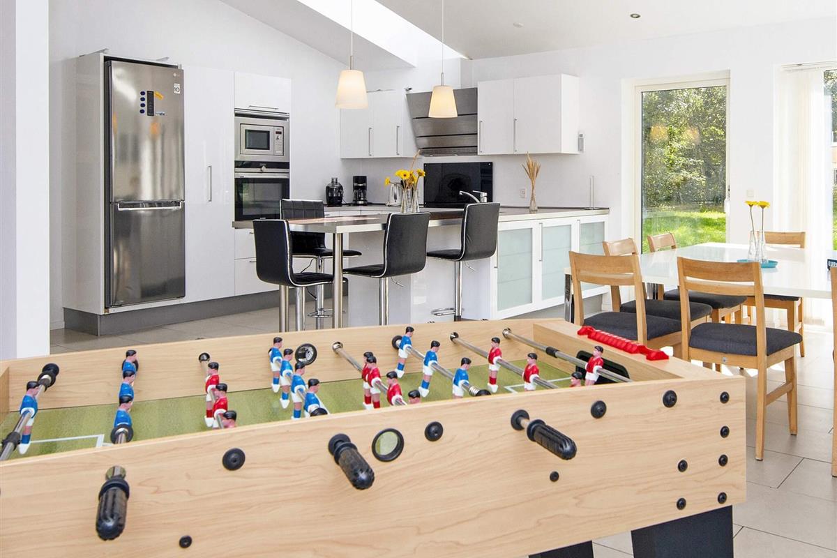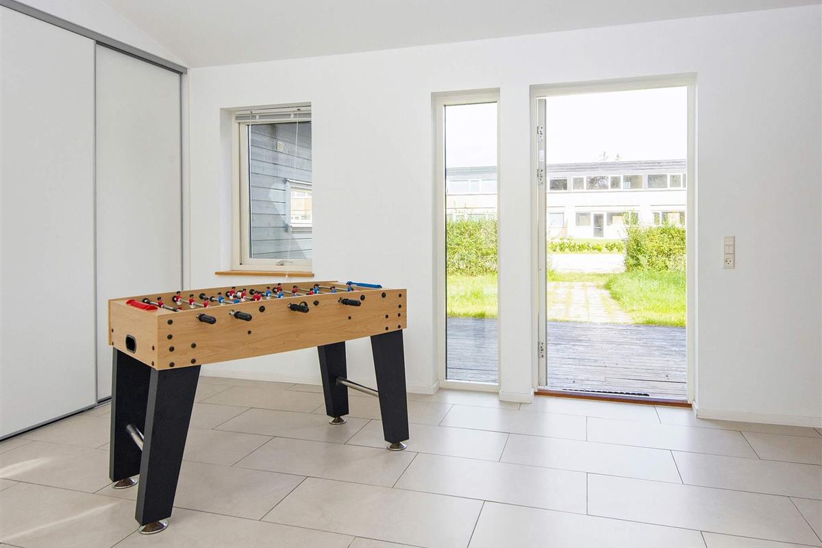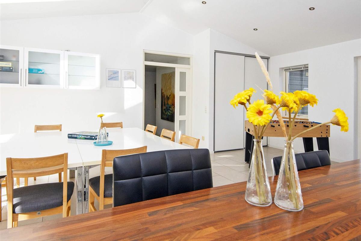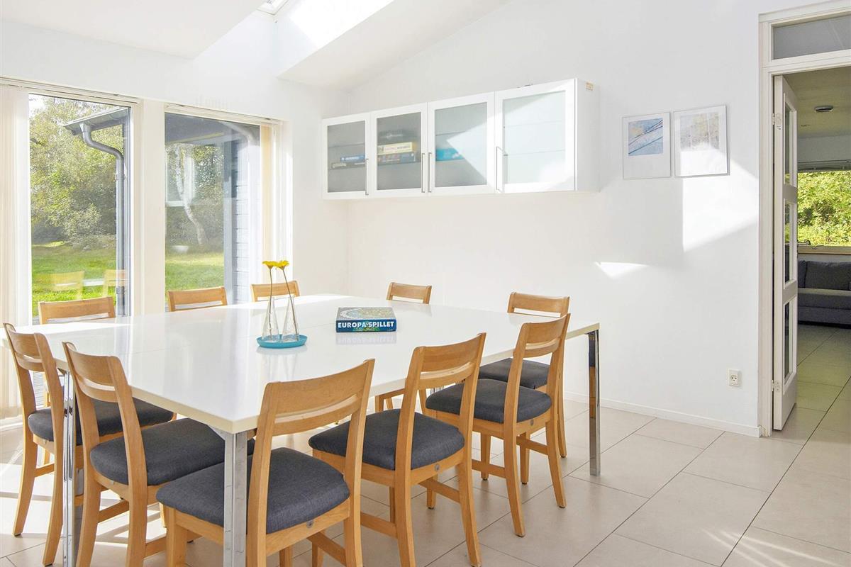 Ferienhaus für bis zu 14 Personen. Es wurde in zwei Bereiche aufgeteilt, verbunden durch einen großen Aufenthaltsbereich in der Mitte. Im Anschluss an diesen befindet sich die Küche. Zur guten Ausstattung dieses Hauses gehören u.a. Sauna und Dampfkabine. Die Zimmer sind geräumig. Es sind nur etwa 5 Min. Fußweg zum nächsten, attraktiven Badestrand. Das Zentrum von Grenå ist ebenfalls in max. 10 Min. erreichbar, ob zu Fuß oder per Fahrrad. Dort findet man zahlreiche Geschäfte, Cafés und Restaurants sowie einen Hafen mit Fischer- und Segelbooten. In der Region Djursland gibt es zahlreiche Ausflugsziele zu entdecken.