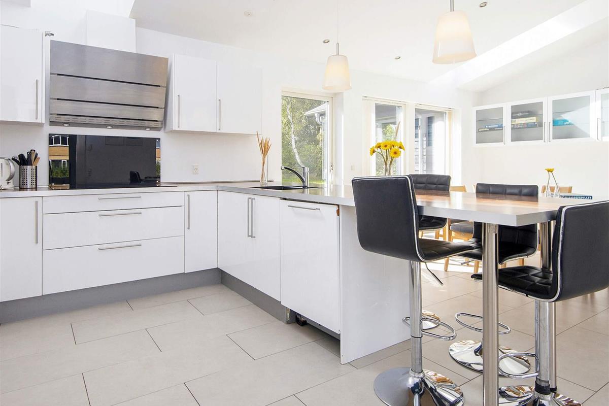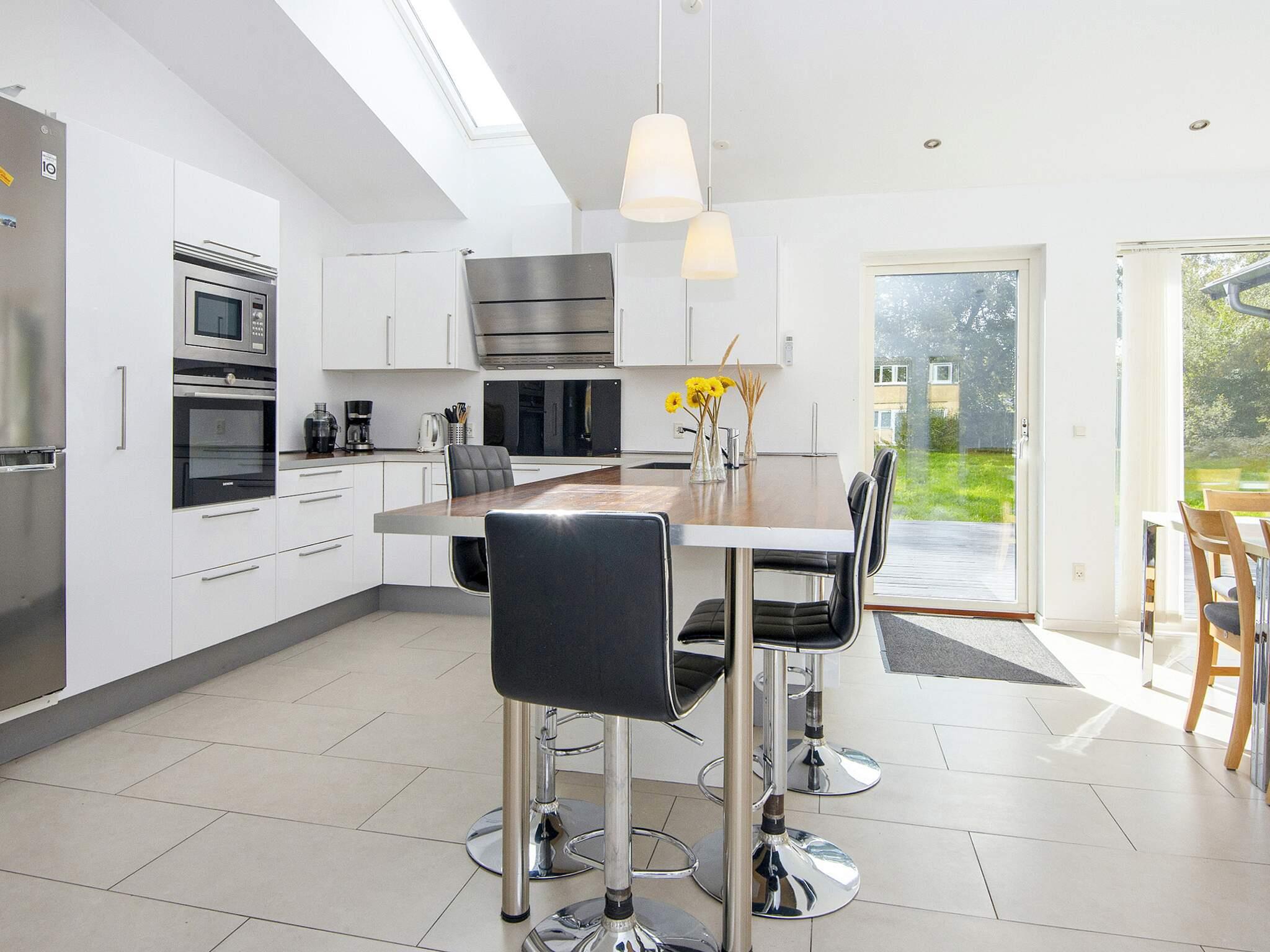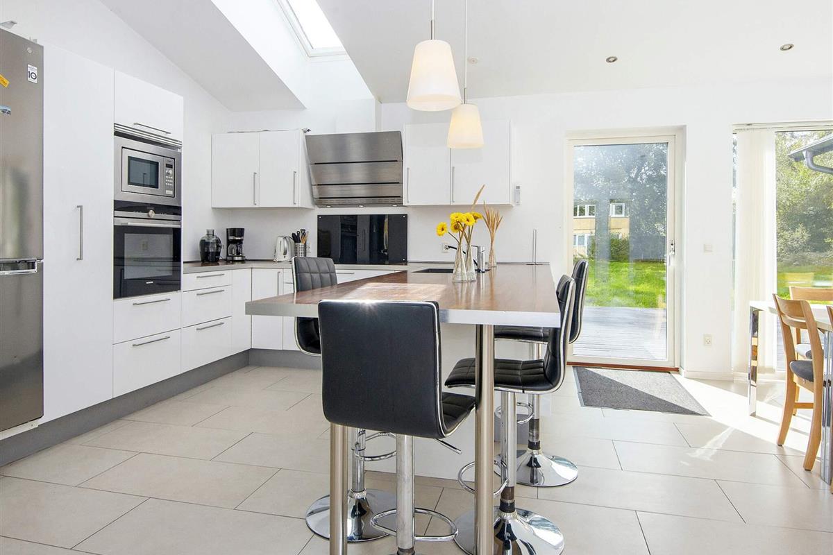 Ferienhaus für bis zu 14 Personen. Es wurde in zwei Bereiche aufgeteilt, verbunden durch einen großen Aufenthaltsbereich in der Mitte. Im Anschluss an diesen befindet sich die Küche. Zur guten Ausstattung dieses Hauses gehören u.a. Sauna und Dampfkabine. Die Zimmer sind geräumig. Es sind nur etwa 5 Min. Fußweg zum nächsten, attraktiven Badestrand. Das Zentrum von Grenå ist ebenfalls in max. 10 Min. erreichbar, ob zu Fuß oder per Fahrrad. Dort findet man zahlreiche Geschäfte, Cafés und Restaurants sowie einen Hafen mit Fischer- und Segelbooten. In der Region Djursland gibt es zahlreiche Ausflugsziele zu entdecken.