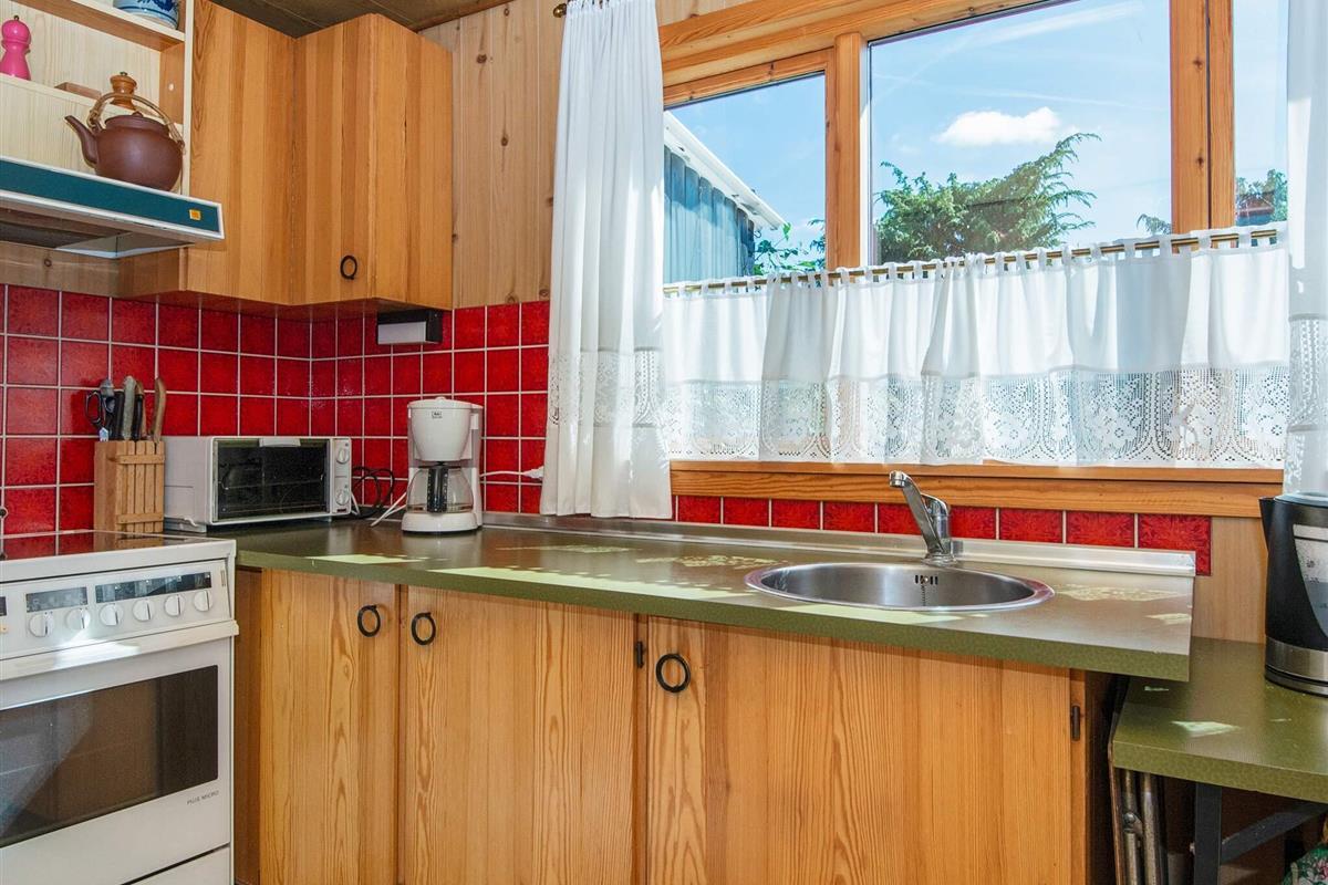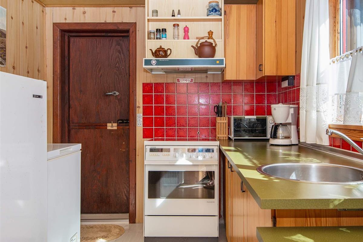 Dieses traditionelle Ferienhaus aus dem Jahr 1964 bietet 55 m² komfortable Wohnfläche, darunter einen 31 m² großen offenen Küchen- und Wohnbereich, zwei Schlafzimmer und ein Badezimmer. Der Holzofen im Wohnzimmer sorgt an kühleren Herbsttagen für wohlige Wärme. Die gut ausgestattete Küche ermöglicht die einfache Zubereitung von Mahlzeiten. Kostenloses WLAN ist im gesamten Haus verfügbar.