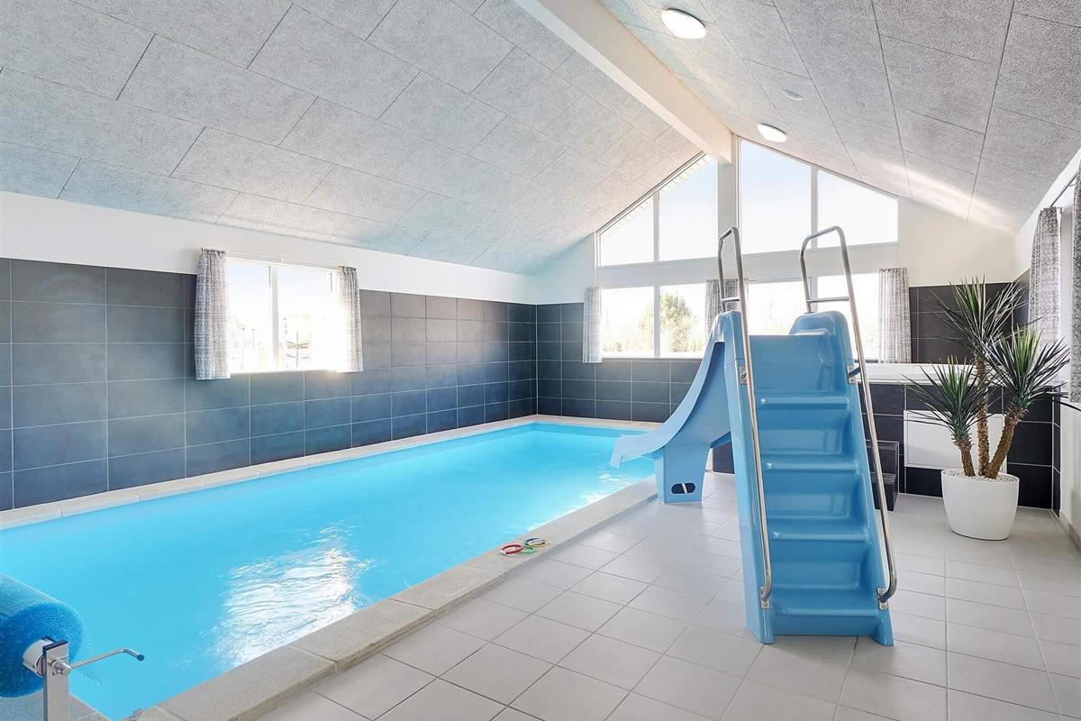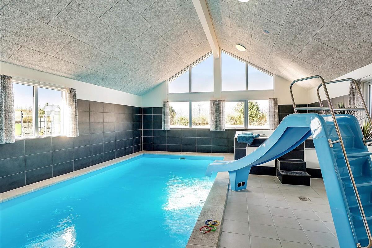 Für Wellnessliebhaber ist der Poolraum des Ferienhauses ein Paradies der Entspannung. Nehmen Sie ein Bad im Whirlpool oder genießen Sie einen ruhigen Moment in der warmen Sauna des Ferienhauses. In Ihrem eigenen 23 m² großen Swimmingpool können Sie stundenlang schwimmen und planschen. Es ist mit einer römischen Treppe, einer Wasserrutsche und einer Gegenstromanlage ausgestattet.