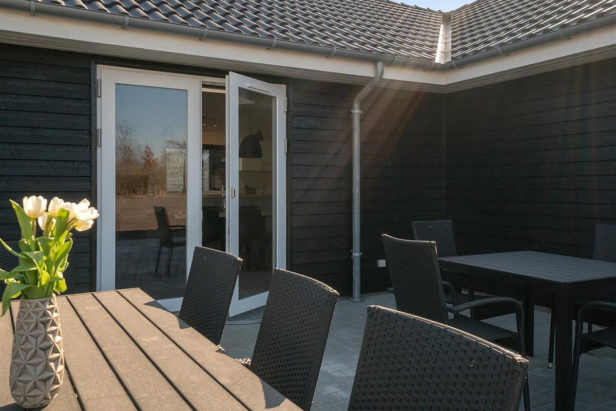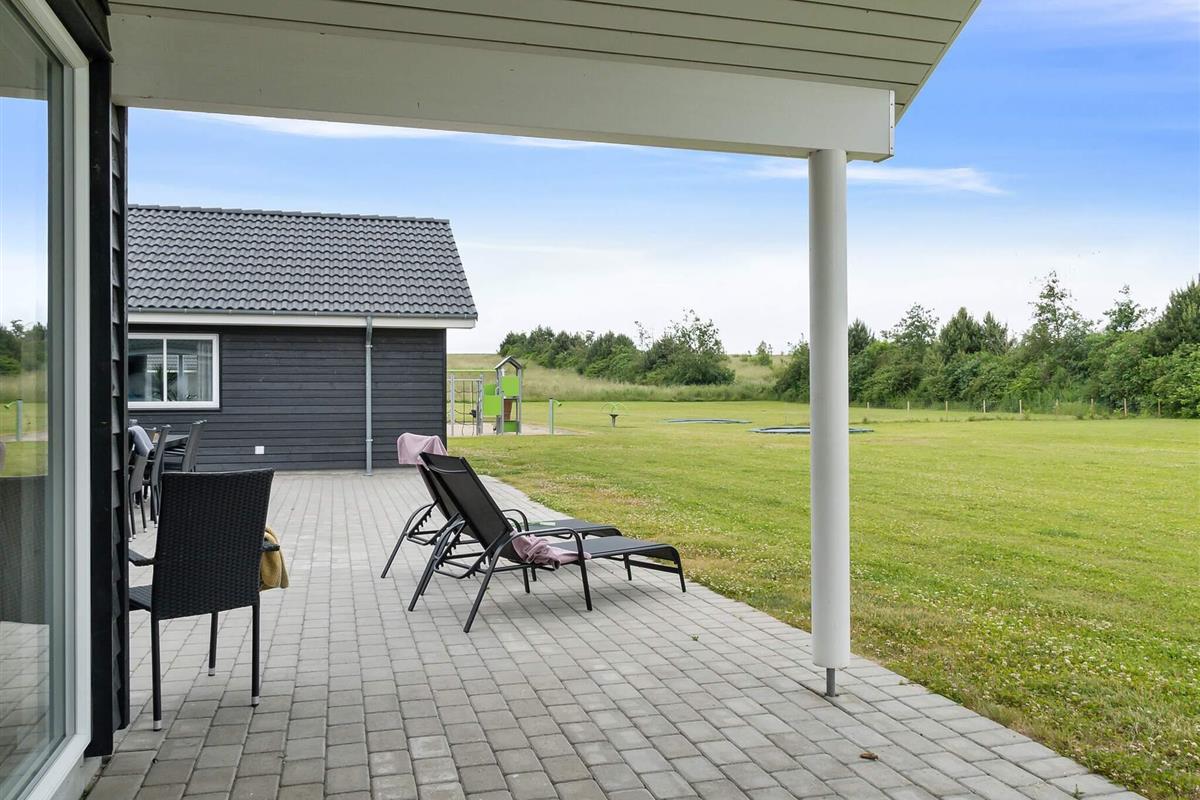 Das Ferienhaus verfügt über eine teilweise überdachte Terrasse mit Gartenmöbeln und einem Grill. Hier können Sie entspannen, während die Kinder im Garten spielen, schaukeln oder im Sandkasten Sandburgen bauen. Auch die vierbeinigen Freunde der Familie sind herzlich willkommen.