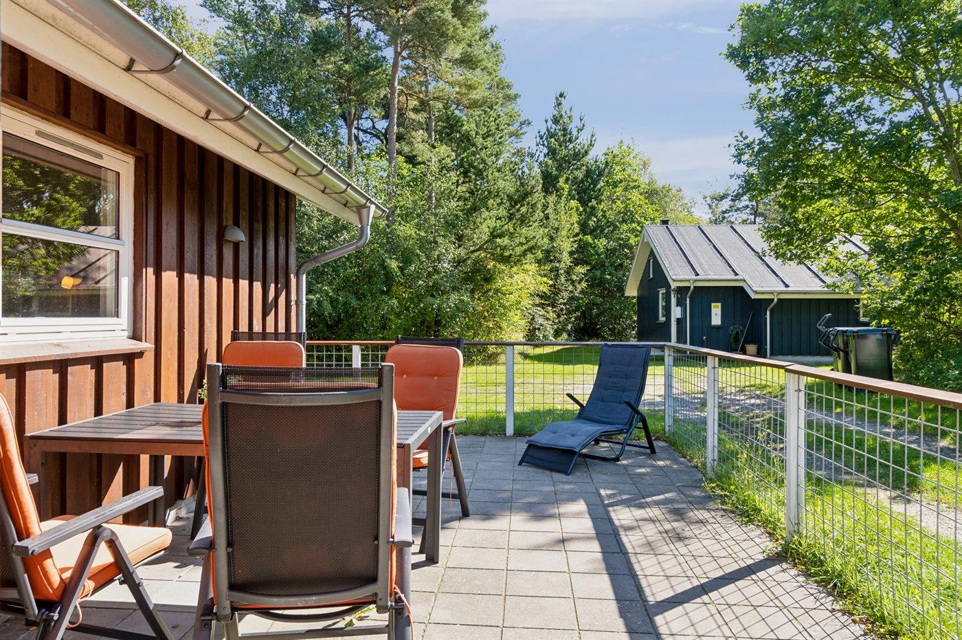 De vakantiewoning is gelegen op een 200 m² groot natuural grond. De grond is omheind. Afstand tot de zee 200 m. Dichtstbijzijnde winkel 1500 m. Er is een golfbaan op een afstand van 5000 m. Bij de vakantiewoning hoort terras. Gereedschapsruimte. Afstand tot speelplaats 200 m. Barbecue. Parkeerplaats bij het huis.