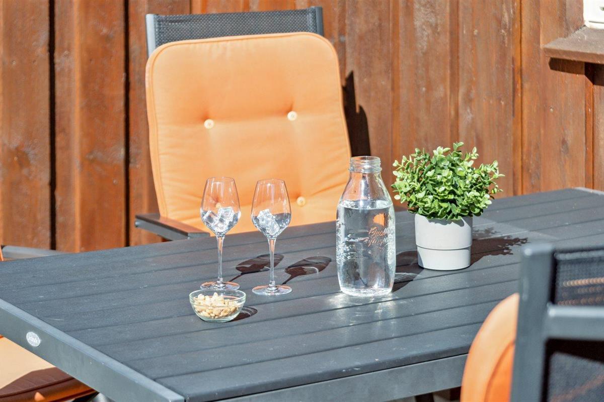Het binnenbubbelbad (vulwater) biedt ontspanning aan 2 personen.