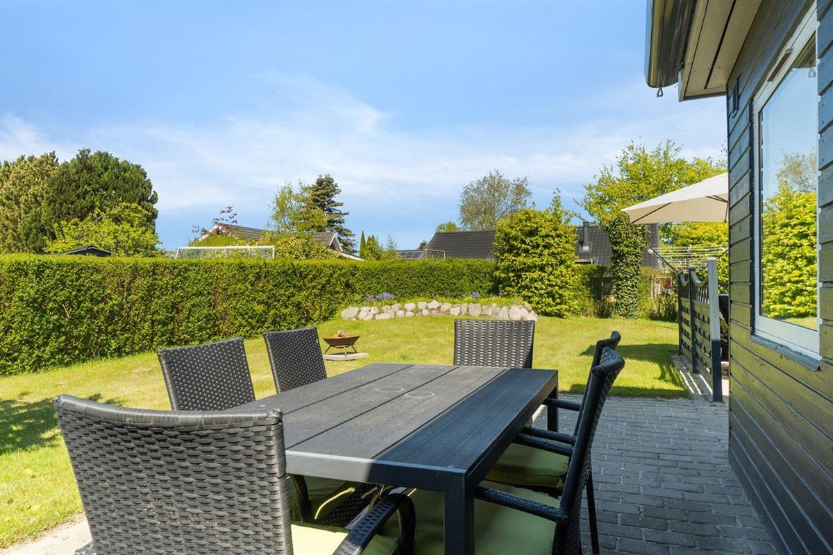 Gezellig vakantiehuis nabij Grenå Strand met tuin, serre, houtkachel en moderne keukenapparatuur voor een ontspannen verblijf.