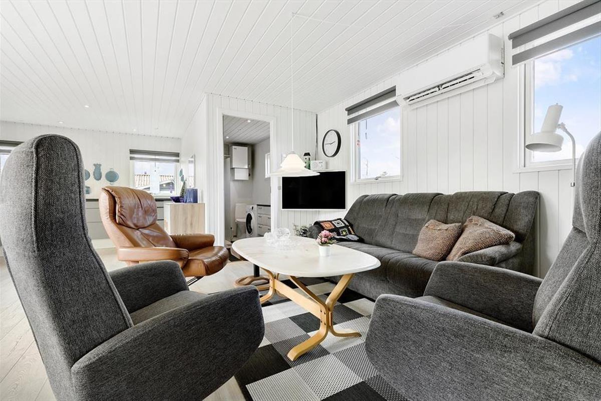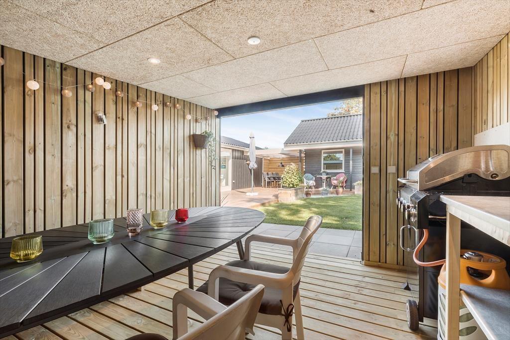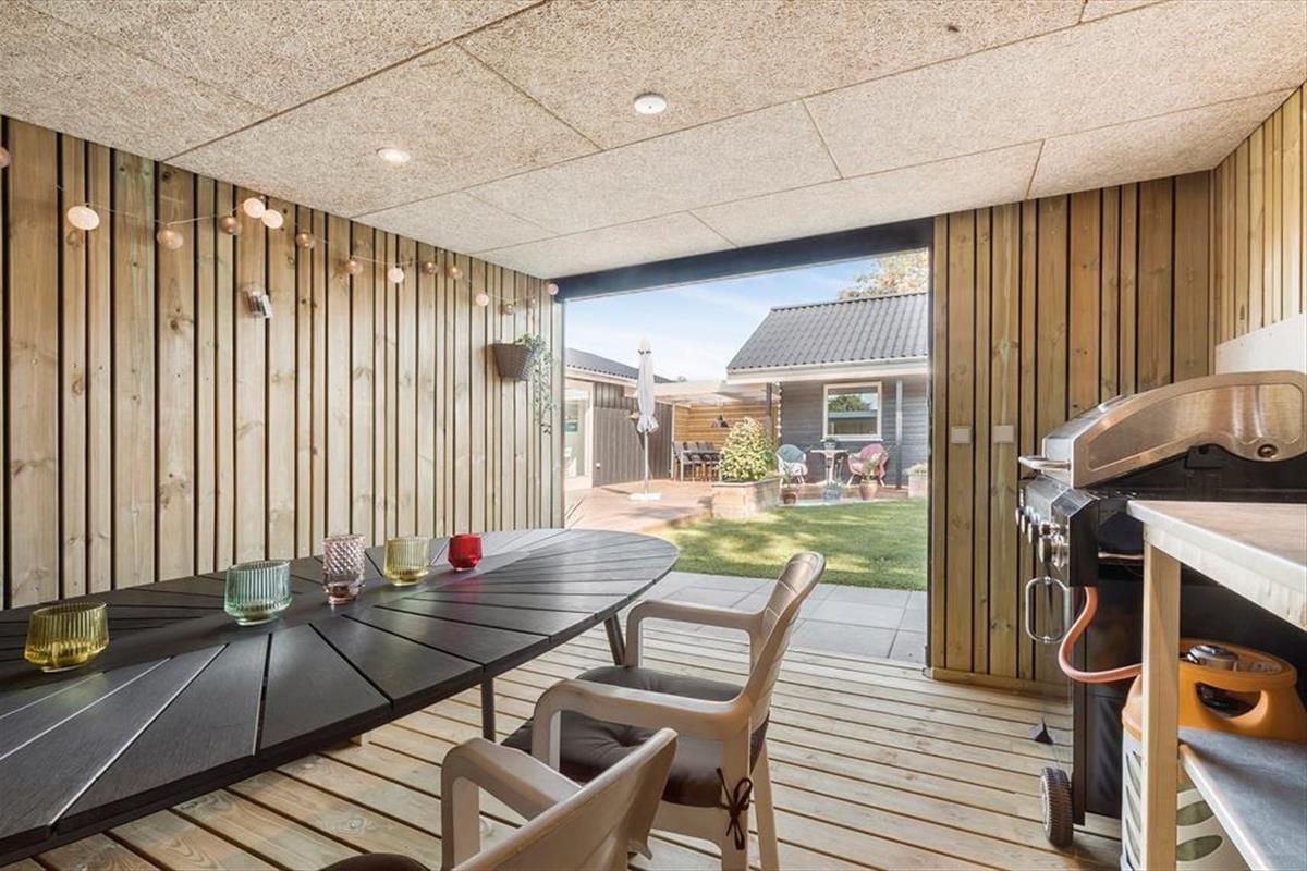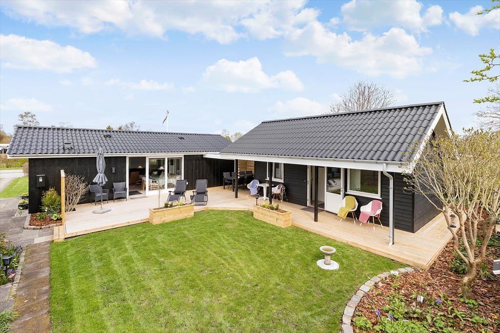 Herzlich willkommen in diesem schwarz gestrichenen Holzhaus, das der Inbegriff von Charme, Gemütlichkeit und Wohlbefinden ist. Das Mietobjekt wurde vor wenigen Jahren einer Renovierung unterzogen und besticht seither mit einer gelungenen Mischung aus moderner Funktionalität und klassisch dänischer Ferienhausatmosphäre. Herzstück des Hauses ist die zeitgemäße, einladende Küche, die offen mit dem Essbereich und dem gemütlichen Wohnraum verbunden ist. In diesem schönen Aufenthaltsraum kannst du in gemütlicher Runde mit deinen Familienmitgliedern Zeit verbringen, lange Spieleabende genießen und es dir bei einem guten Glas Wein nach einem langen Urlaubstag gemütlich machen. Die beiden geräumigen Schlafzimmer versprechen erholsame Nächte. Das Badezimmer beinhaltet eine Dusche und eine Waschmaschine. Letztgenannte gewährleistet jeden Tag saubere Handtücher für Abstecher an den herrlichen Badestrand. Das i-Tüpfelchen deines Urlaubsdomizils ist das neue Nebengebäude, das mit viel Komfort zu glänzen weiß. Es beinhaltet zwei Schlafräume - einen mit einem Doppelbett und einen mit zwei Einzelbetten. Hinzu gesellt sich ein elegantes Badezimmer. Das Nebengebäude bietet also ausreichend Platz für weitere Familienmitglieder oder gute Freunde, die Wert auf ein wenig mehr Privatsphäre legen.