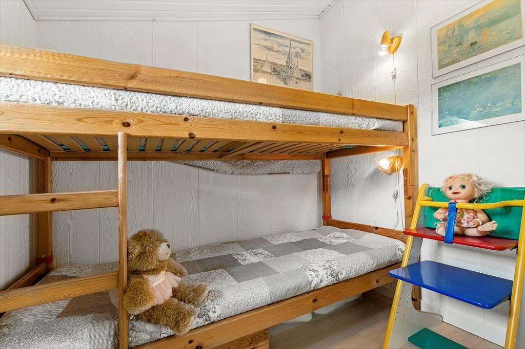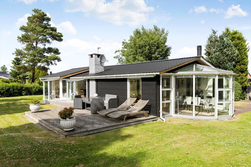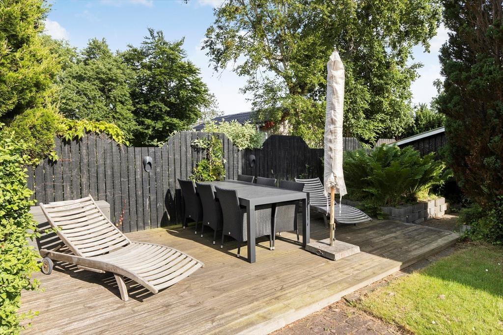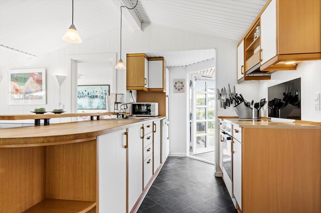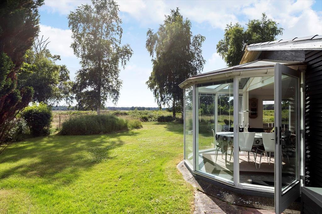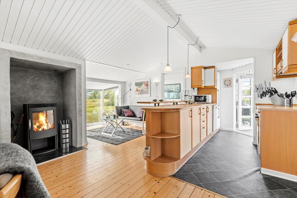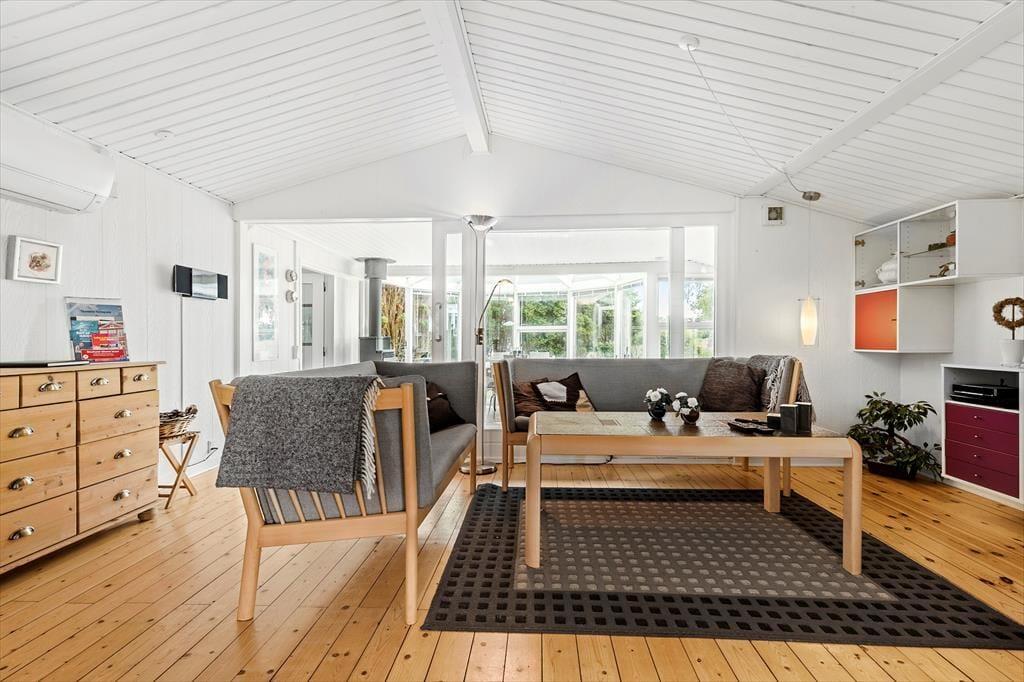 An einem der schönsten Strände Jütlands begrüßt dich dieses bezaubernde, geräumige Ferienhaus - ein Haus, das mit viel Ruhe und Urlaubsstimmung zu begeistern weiß. Das im Jahr 1969 erbaute Mietobjekt wurde im Jahr 2014 einer umfassenden Renovierung unterzogen, bei der der ursprüngliche Charme erhalten blieb und mit modernem Komfort ergänzt wurde. Unmittelbar nach dem ersten Betreten des großen, einladenden Wohnraums spürst du dessen schöne, warme Wohnatmosphäre. Der wunderbar in Szene gesetzte Kaminofen verwöhnt mit behaglicher Wärme und einem Maximum an Ferienhausstimmung. Entspannten Stunden in den komfortablen Polstersitzmöbeln steht somit nichts im Wege. Der schöne Glasvorbau fungiert als separater Essplatz mit Ausblick auf die herrliche Natur. Nicht selten wirst du während geselliger Mahlzeiten am Esstisch einen Blick auf das ein oder andere Reh, auf spielende Kaninchen und auf Fasane erhaschen. Die Küche fügt sich praktisch in den Wohnbereich ein. Sie ist gut ausgestattet und bietet alles, was du für die Zubereitung köstlicher Urlaubsmahlzeiten benötigst. Eines der beiden guten Badezimmer verwöhnt mit einer Dusche und einer Fußbodenheizung. Das zweite Badezimmer ist kleiner und beinhaltet eine Dusche. Praktischerweise steht eine Waschmaschine bereit. Erholsame Nächte versprechen die drei Schlafräume. Der größte Schlafraum verfügt über einen Doppelbett und Schrankfläche und besticht mit einem direkten Zugang zum großen Badezimmer. Im zweiten Schlafzimmer steht ebenfalls ein Doppelbett zur Verfügung. Deine Kinder dürfen sich auf einen Raum mit einem Etagenbett freuen. Für die kleinsten Gäste sind ein Hochstuhl und ein Kinderreisebett vorhanden.