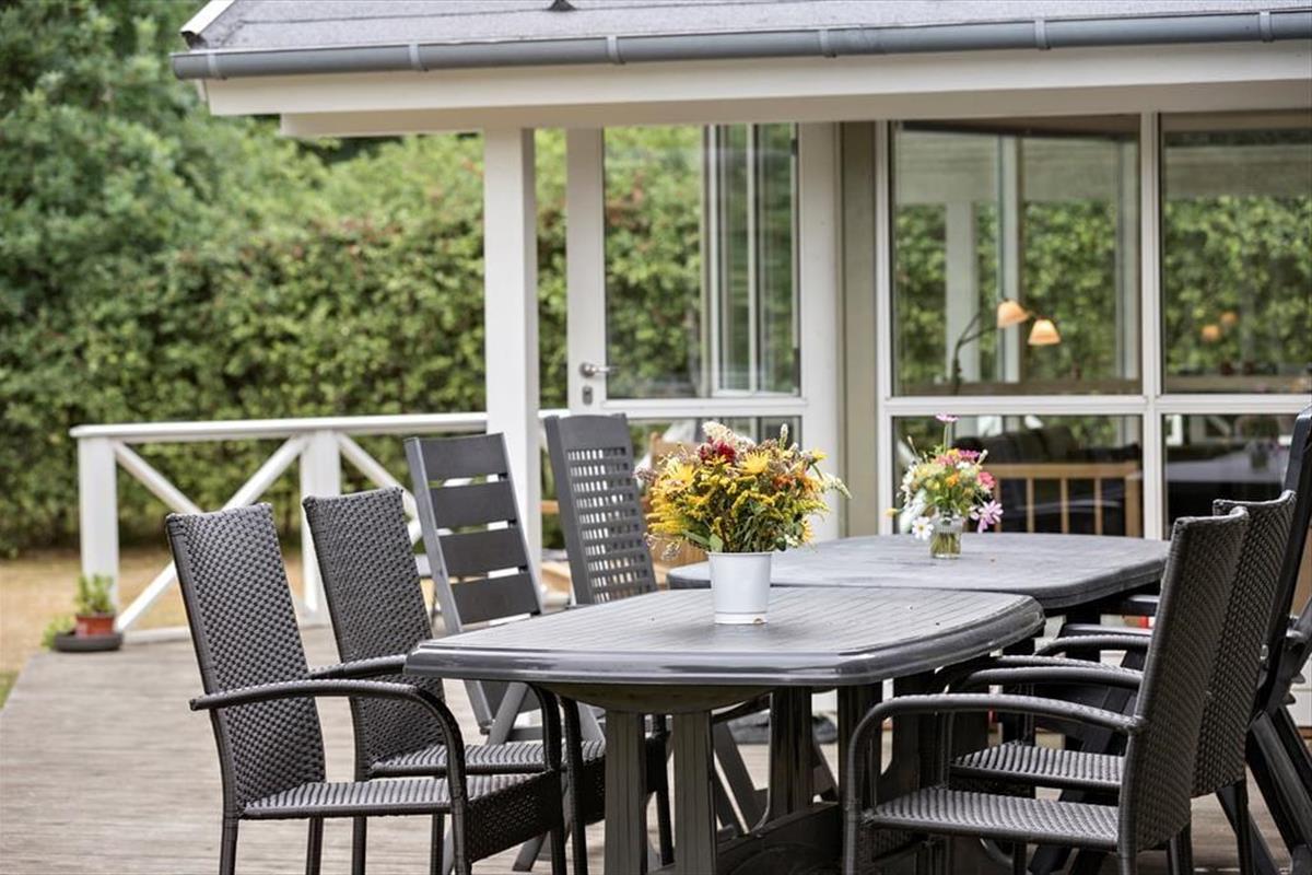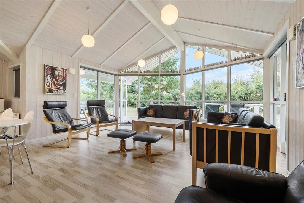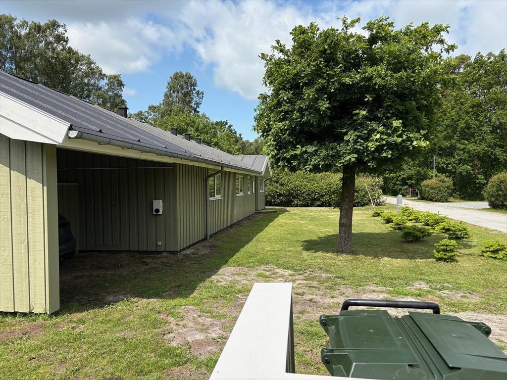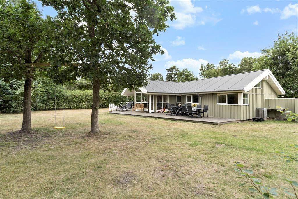 Die Lage des Hauses bietet Ruhe und die Schönheit der Natur direkt vor der Tür. Nur 600 Meter entfernt liegt einer der besten Strände Djurslands, wo ihr eine kleine Oase für euch finden könnt – sei es unter der warmen Sonne oder in einer windgeschützten Ecke. Das Haus ist von schönen Terrassen umgeben, die mit hochwertigen Gartenmöbeln ausgestattet sind. Stell dir vor, wie du unter freiem Himmel eine gute Lektüre genießt oder ein gemütliches Abendessen mit deinen Liebsten bei Vogelgezwitscher einnimmst. Kinder und Erwachsene können sich auf der großen Rasenfläche austoben und für die Kleinen gibt es eine Schaukel. Dein Auto steht sicher und trocken im Carport, wo es für die nächsten Ausflüge geladen werden kann.