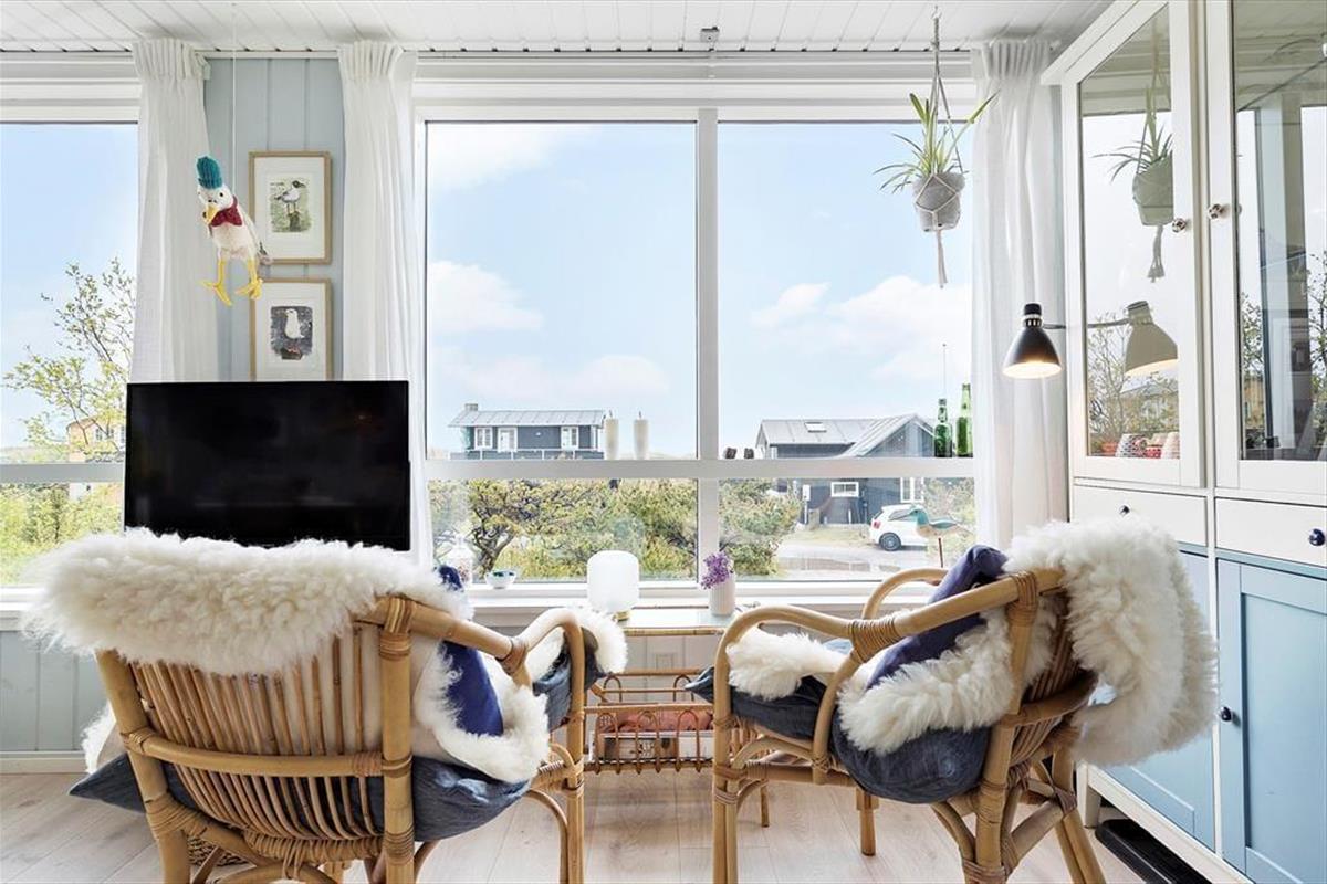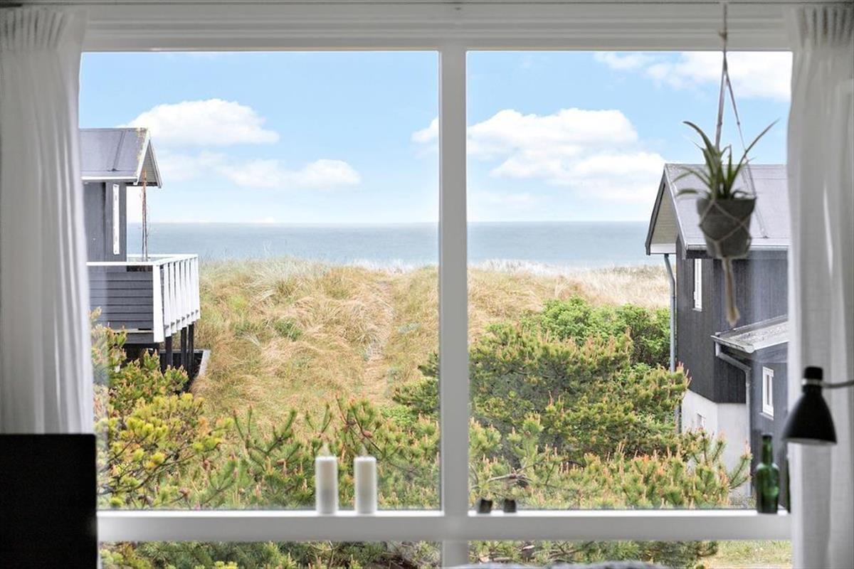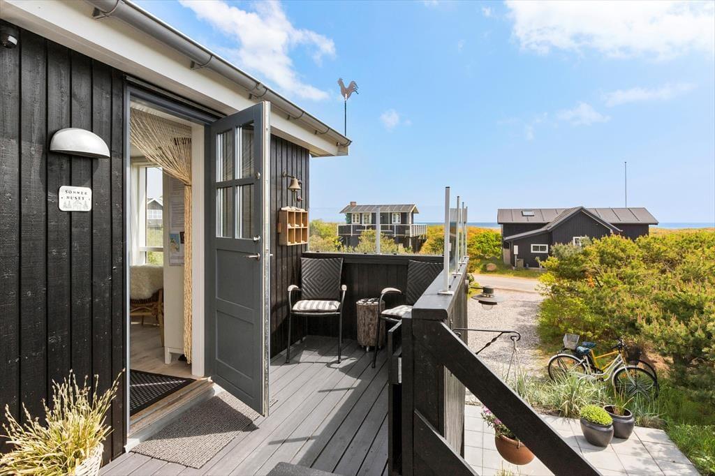 Dein zweigeschossiges Ferienhaus überzeugt mit authentischer Ferienhausatmosphäre. Im Obergeschoss begrüßt dich eine offene, helle Kombination aus Wohnraum und Küche, in der du in jedem einzelnen Winkel mit Meerblick verwöhnt wirst. Von diesem Raum gelangst du hinaus auf zwei Holzterrassen, auf denen du die Morgensonne und herrliche Sonnenuntergänge genießt. Die kleine Terrasse eignet sich bestens für ein gemütliches Abendessen im Licht der untergehenden Sonne. Auf der großen Terrasse könnt ihr hingegen wunderbar frühstücken, das Mittagessen und ausgiebige Sonnenbäder genießen. Die Stunden im Freien werden vom Ausblick auf die Dünen und das Meer wunderschön untermalt.
