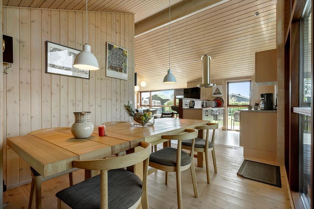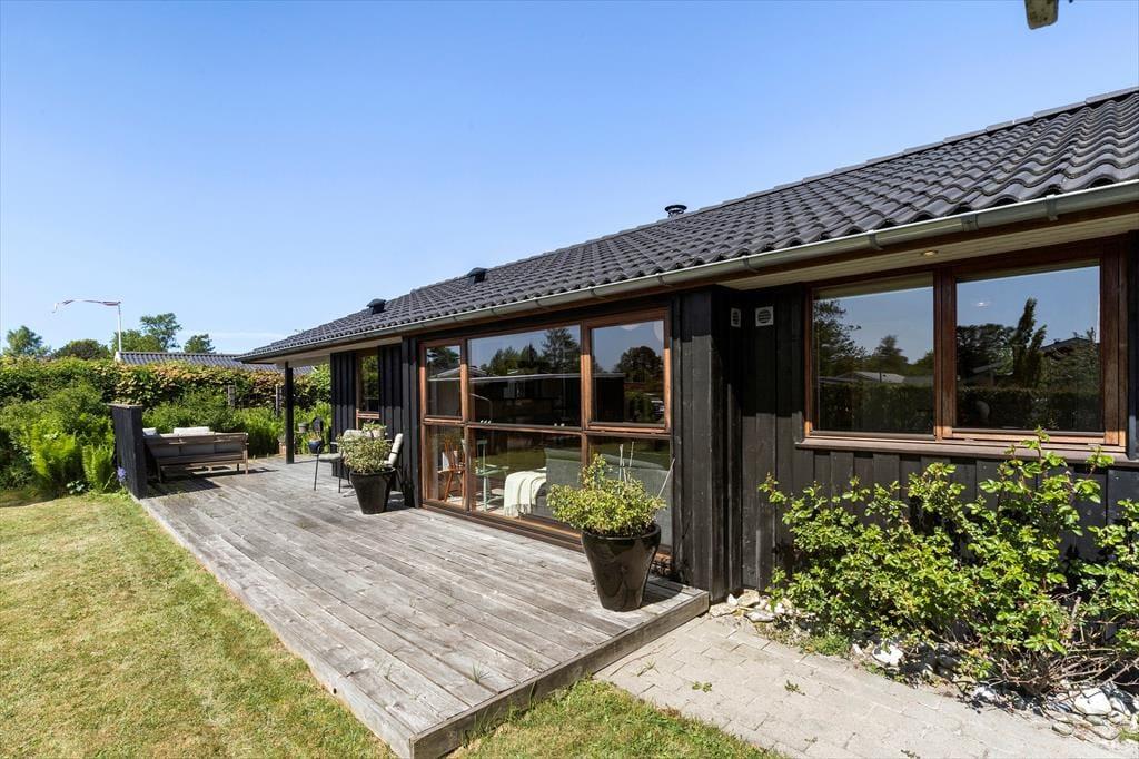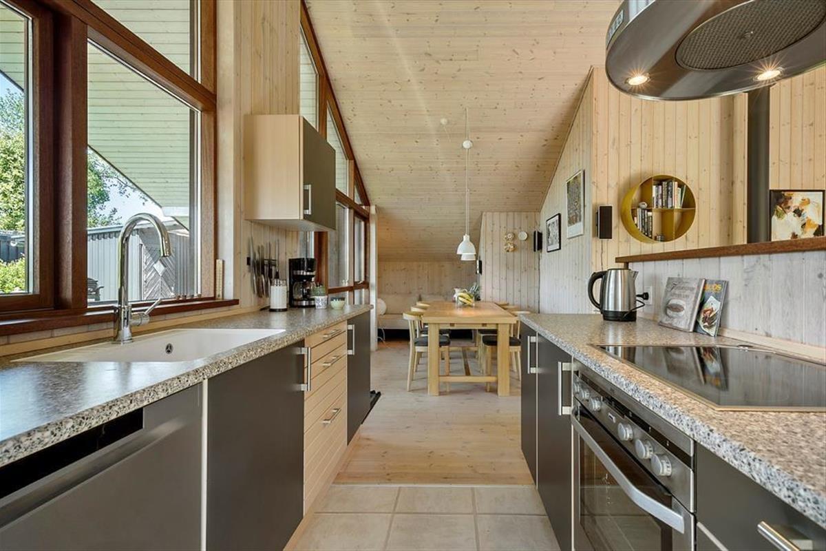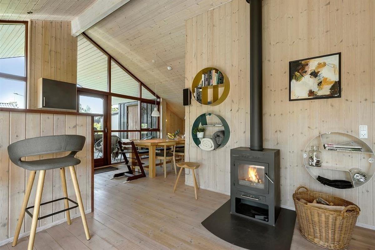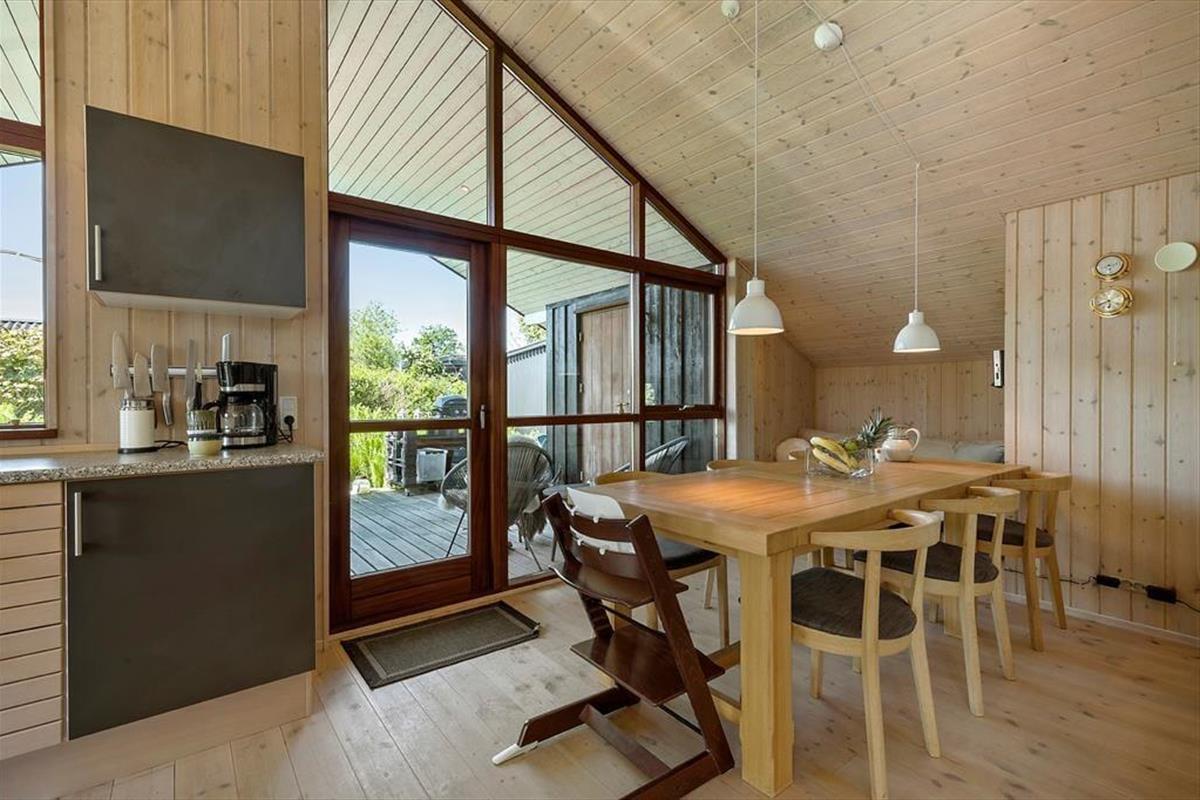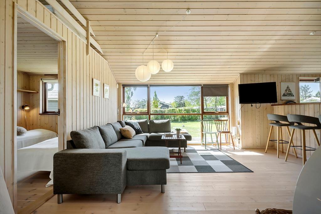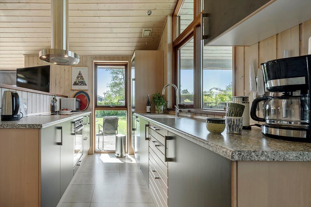 Das knapp 20 Jahre alte Urlaubsdomizil wurde aus soliden Materialien erbaut und eignet sich daher für einen Sommerurlaub und ein verlängertes Frühlingswochenenden ebenso gut wie für einen gemütlichen Winterurlaub mit Kerzenlicht und Spieleabenden. Der große offene Küchen- und Essbereich und der Wohnraum bilden zusammen das Herzstück deines Ferienhauses. Der schöne Raum besticht mit hohen Decken und großen Fensterpartien, die viel Licht in das Haus strömen lassen und dir einen Ausblick ins Grüne ermöglichen. Vor dem Küchen-, Wohn- und Essbereich erstrecken sich die schöne Terrasse und der Garten. Du hast demnach alles stets im Blick - von den spielenden Kindern im Gras bis zum Abendessen, das duftend auf dem Grill gart. Im Haus selber, das dir viel Platz für das Beisammensein, für das gemeinsame Kochen, für Spiele und Gemütlichkeit bietet, erfreust du dich am offenen, luftigen Ambiente.