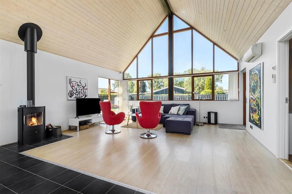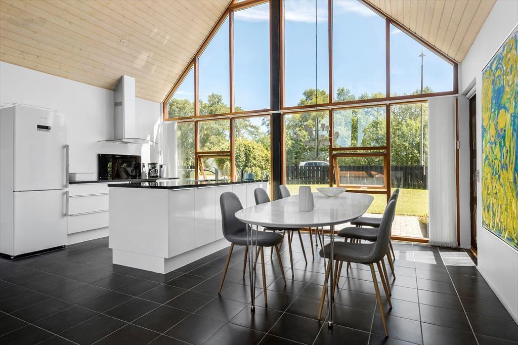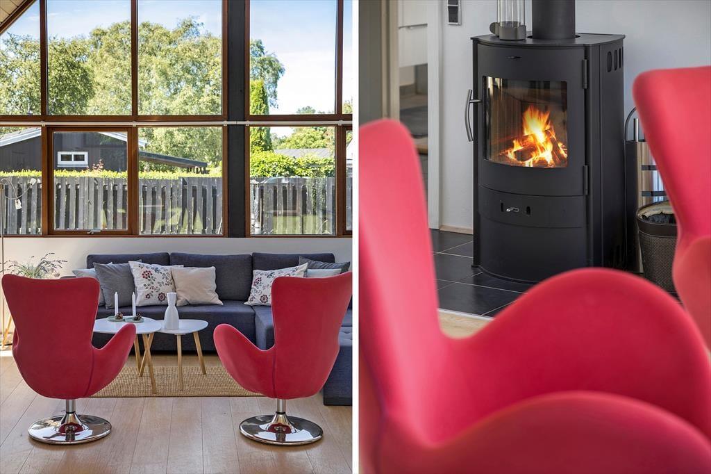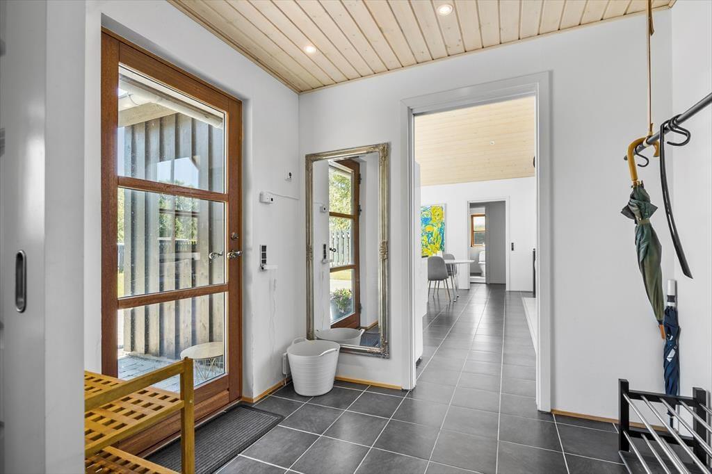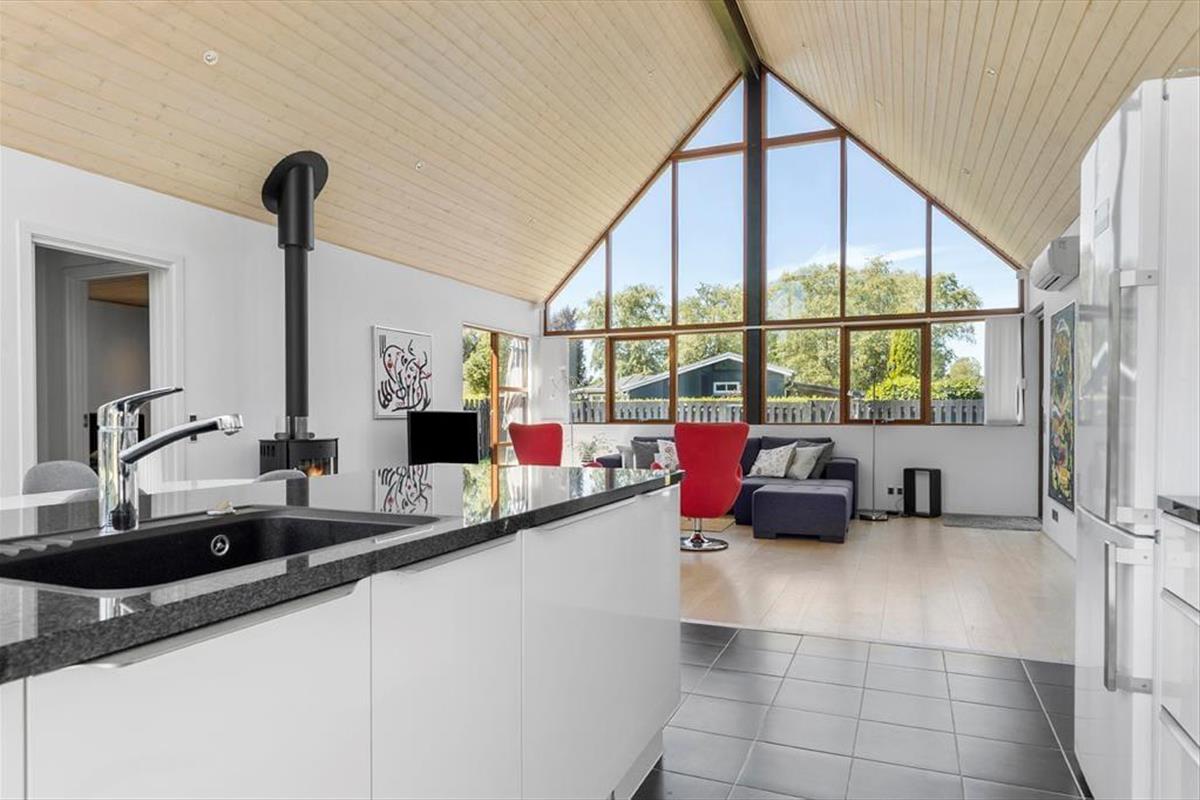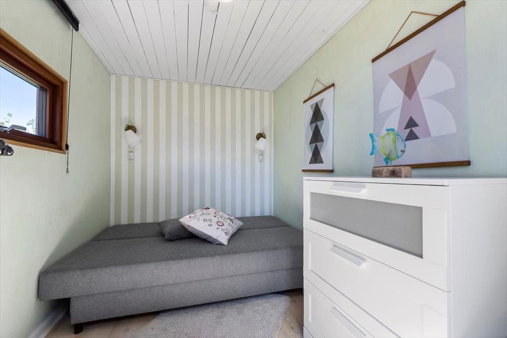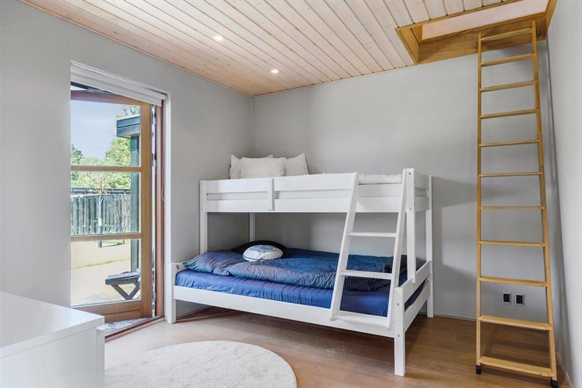 Stelle dir vor, wie du früh am Morgen mit einem frischen Becher Kaffee hinaus auf deine tolle, sonnenverwöhnte Terrasse trittst und die frische Seeluft einatmest – und zwar in dem Wissen, dass dich nur ein 350 Meter langer Spaziergang vom Meer trennt. Schöner kann ein Urlaubsmorgen kaum beginnen! Das schöne Holzferienhaus hat das Potenzial, bei deiner gesamten Familie unvergessliche Urlaubserinnerungen zu schaffen. Erinnerungen, die ein warmes Bauchgefühl erzeugen und dir ein Lächeln auf das Gesicht zaubern. Dein Ferienhaus begrüßt dich mit einem hellen, offenen Raum, der die Küche, den Essbereich und den Wohnraum in schönster Weise in sich vereint. Ins Auge fallen werden dir sofort die beeindruckend hohen Decken mit einer Höhe von rund vier Metern. Ein luftiges Raumgefühl und viel Bewegungsfreiheit sind dir in diesem herrlichen Raum garantiert. Die drei Terrassentüren schaffen eine angenehme Verbindung zur umliegenden Natur und machen es dir leicht, hinaus in den Garten zu treten und das Nebengebäude zu erreichen. Das Badezimmer mit Dusche ist schön und modern. Die Schlafplätze sich wohldurchdacht verteilt. Dich erwarten ein Schlafraum mit einem Doppelbett und ein gemütliches Zimmer mit einem Etagenbett, bei dem das untere Bett breit genug für zwei Personen ist. Hinzu gesellt sich der sehr schöne Dachboden mit einem Dachflächenfenster und zwei guten Matratzen – ein fantastischer Rückzugsort für Teenager und größere Kinder. Im Nebengebäude stehen weitere Schlafgelegenheiten in Form eines doppelten Schlafsofas bereit, dass sich sehr gut für Gäste oder die mitreisenden Großeltern eignet.