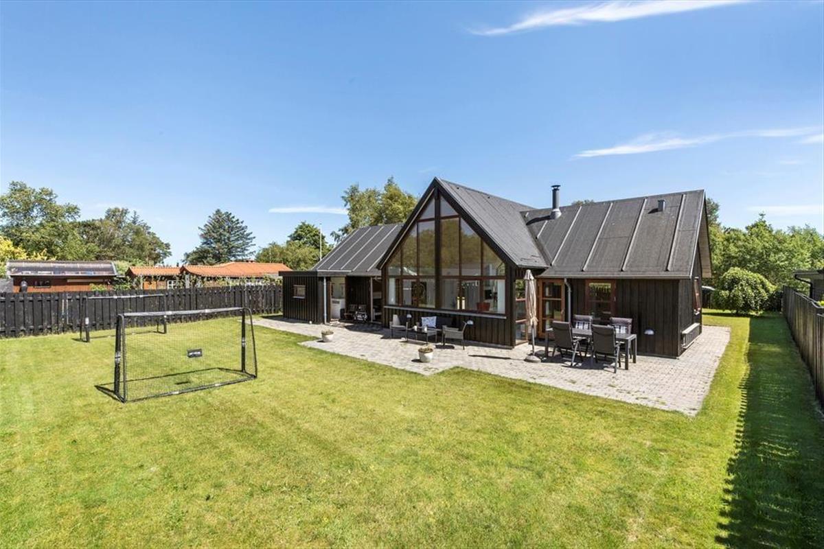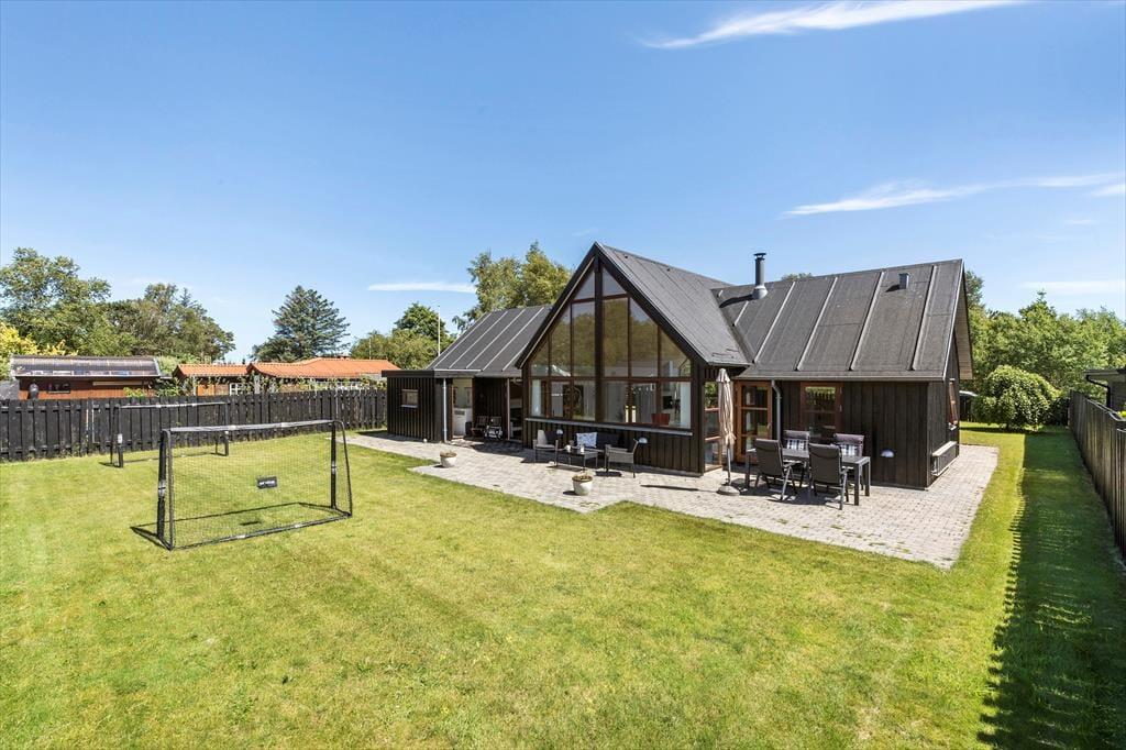 Dein Grundstück ist gemütlich abgeschirmt und von einem schönen Holzzaun umrahmt. Dadurch erwartet dich eine friedvolle, angenehm ungestörte Atmosphäre, die beste Voraussetzungen für entspannte Tage im Freien schafft. Auf der Grasfläche werden deine Kinder von morgens bis abends umhertollen und spielen. Das Fußballtor animiert Groß und Klein zu gemeinsamen aktiven Stunden. Dank der tollen Steinterrassen an der Ost- und der Westseite des Hauses, kannst du dich den gesamten Tag über von der Sonne verwöhnen lassen – während des gemeinsamen Frühstücks, eines entspannten Mittagessens und eines stimmungsvollen Grillabends. Selbst wenn die Sonne untergeht und sich die Dunkelheit über das Ferienhausgebiet legt, ist es unglaublich schön, in eine Wolldecke gehüllt und mit einem Glas Wein in der Hand, den Sommerabend unter freiem Himmel zu genießen.