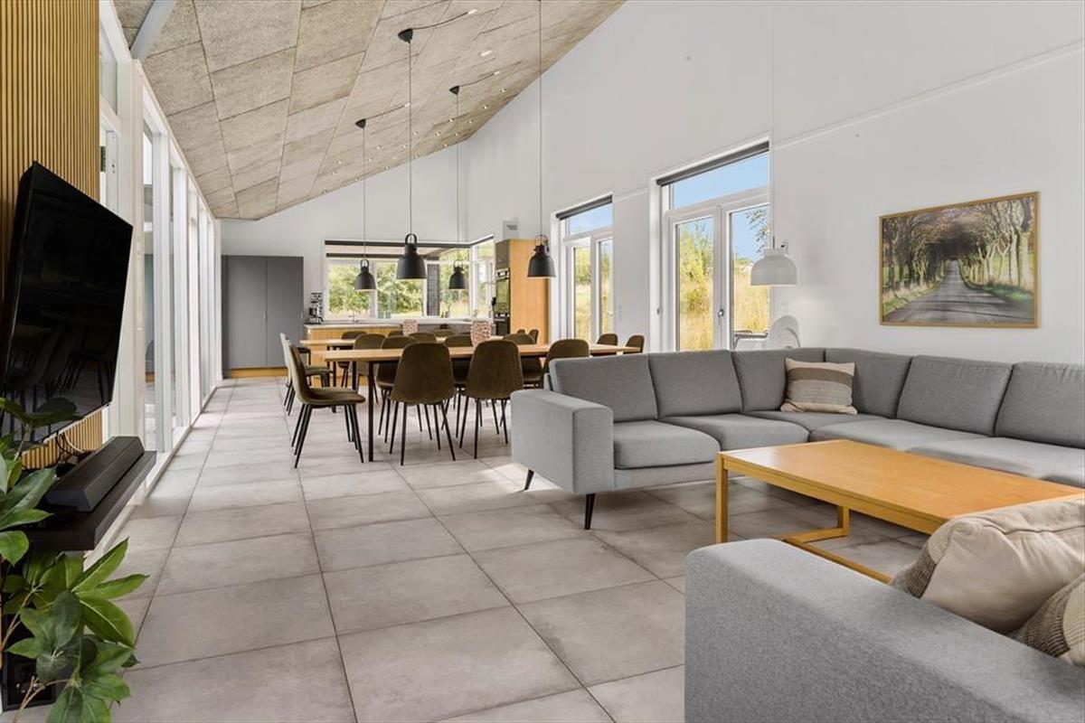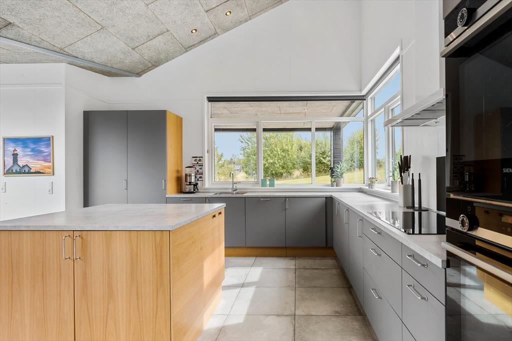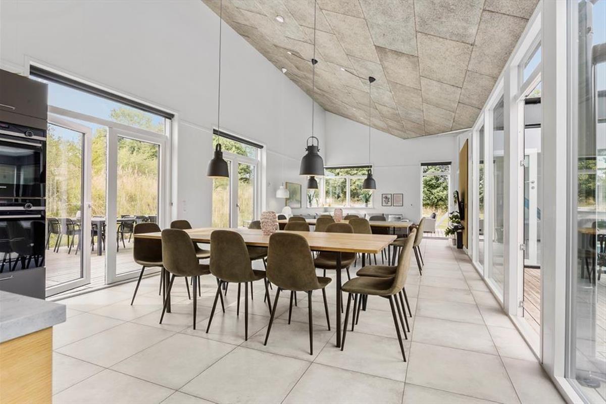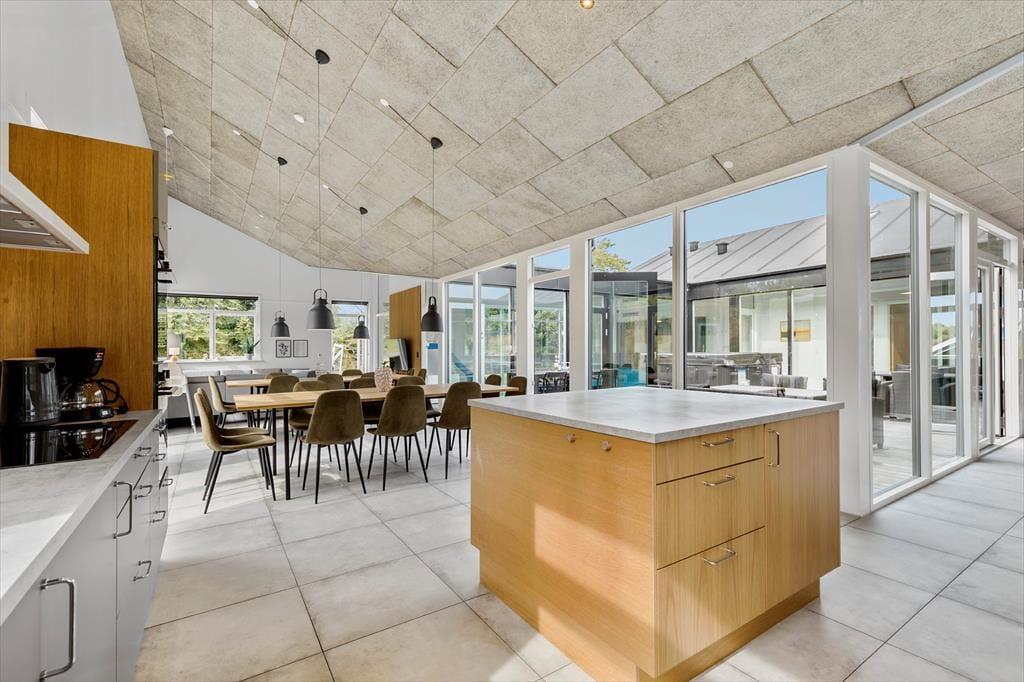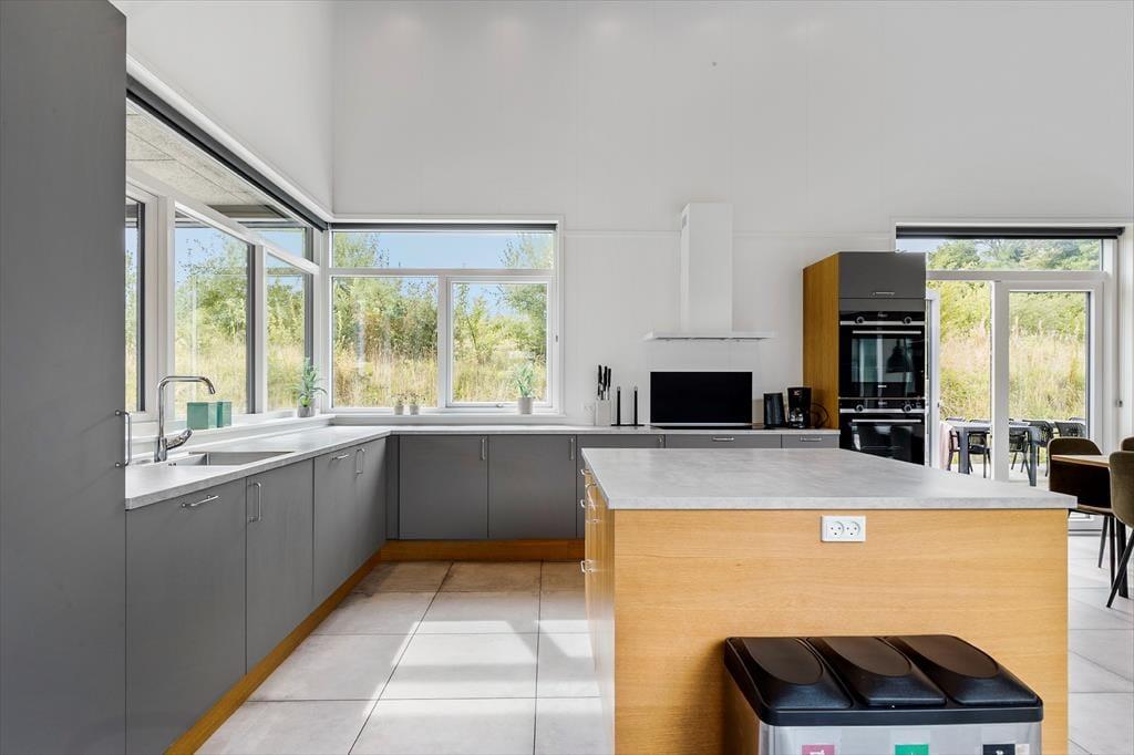 Freue dich auf deinen Urlaub in diesem luxuriösen Ferienhaus, das alles andere als gewöhnlich ist. Das Mietobjekt wurde im Jahr 2022 aus hochwertigen Materialien erbaut und so eingerichtet, das Gemütlichkeit, Komfort und das wertvolle Beisammensein im Mittelpunkt stehen. Die 239 m² große Wohnfläche bietet bis zu 18 Personen einen tollen Rahmen für unvergessliche Urlaubstage. Acht der 18 Schlafplätze befinden sich auf den beiden Schlafböden und eignen sich daher am besten für größere Kinder. Herzstück deines Urlaubsdomizils ist der große, helle Küchen-, Wohn- und Essbereich, in dem du mit deinen Lieben Mahlzeiten, Spieleabende und ruhige Stunden auf dem Sofa genießt. Nahezu überall im Haus hast du die beruhigende Gewissheit, dass deine Kinder ganz in deiner Nähe sind, wenn sie im Pool planschen, spielen und herumtollen. Die attraktive, wohldurchdacht konzipierte Küche eignet sich bestens, um in geselliger Runde Mahlzeiten für alle Mitreisenden zuzubereiten. Sie umfasst unter anderem zwei Kühlschränke, zwei Induktionskochfelder, zwei Warmluftöfen, eine Mikrowelle und zwei Geschirrspüler.