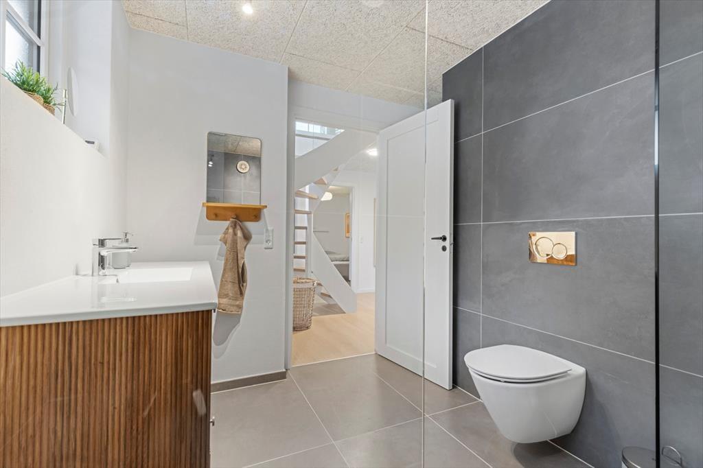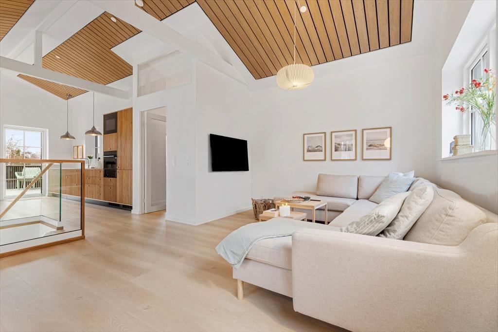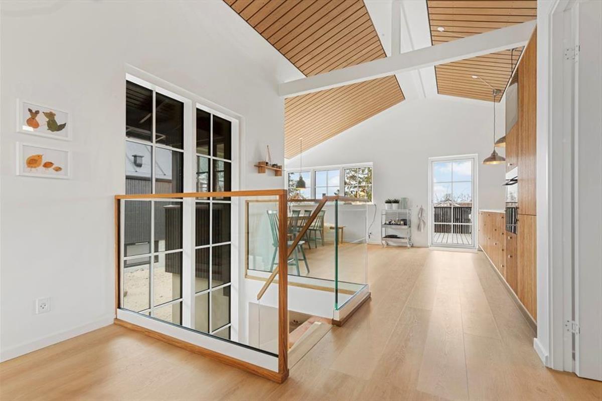 Dit moderne vakantiehuis bevindt zich in Grenå Strand, Oost-Jutland, Denemarken, op slechts 190 meter van het strand. Het huis biedt een comfortabele en gezellige inrichting met een open keuken en diverse huishoudelijke apparaten zoals een wasmachine, droger en vaatwasser, ideaal voor een ontspannen verblijf.