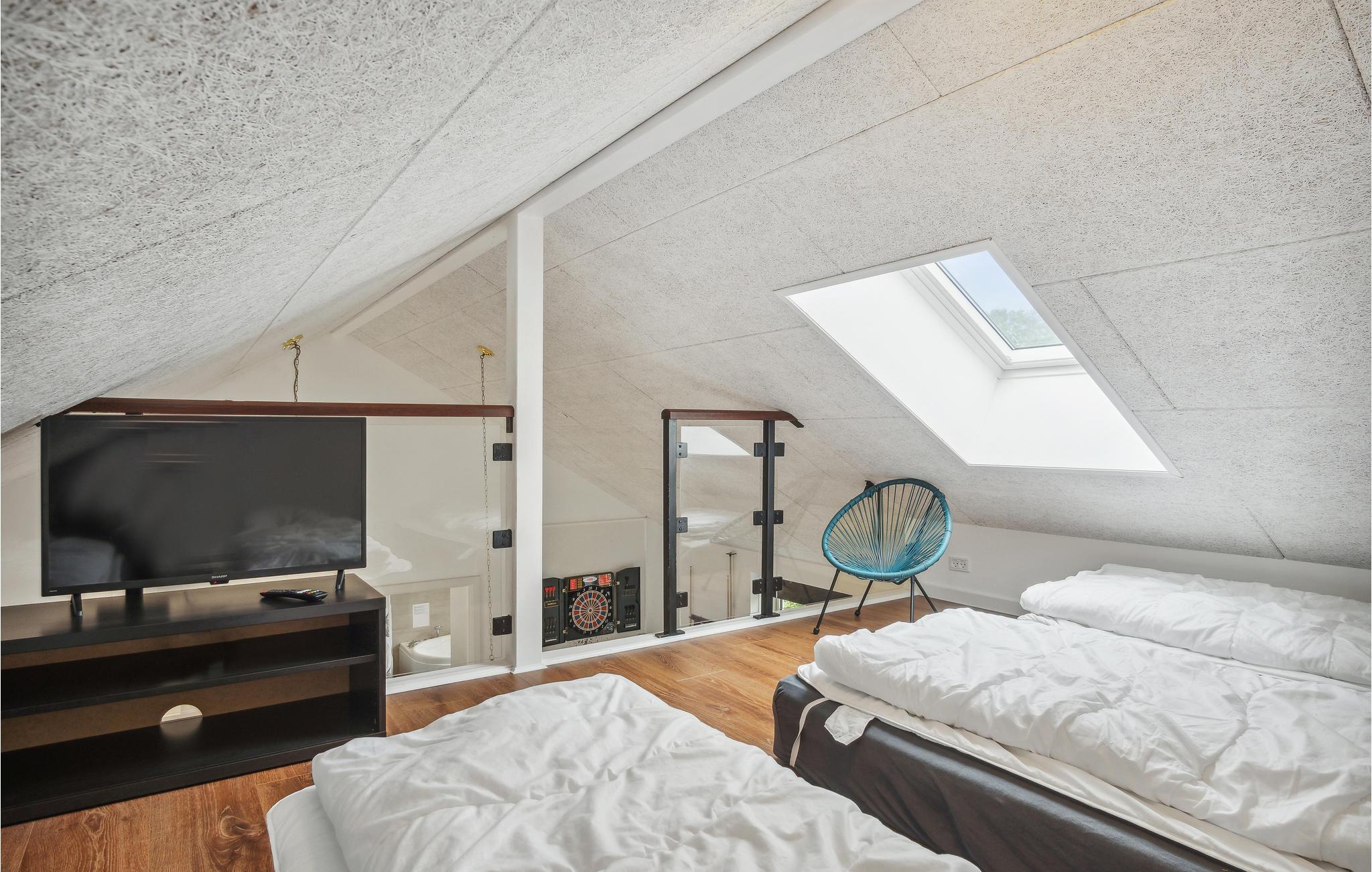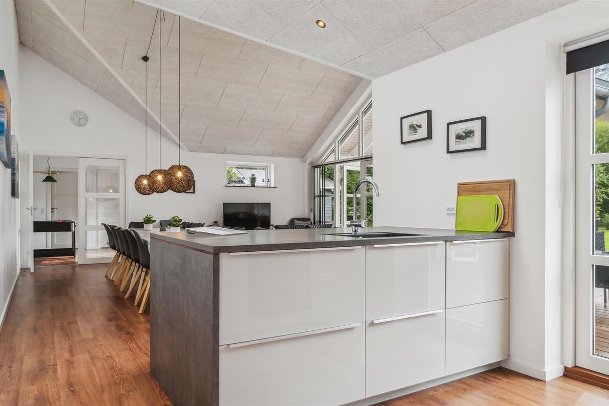Dicht bij het strand in Grenaa ligt dit grote vakantiehuis met zijn goed uitgeruste speelkamer. Er is hier ruimte voor het grote gezin, zowel in het huis als op het terras voor het woongedeelte. U kunt slapen in ruime slaapkamers en op de Hems. Een badkamer bevat het massagebad zodat u vermoeide spieren kunt masseren indien nodig. Dit gebied heeft het beste strand van de oostkust, het zand is fijn en het water is ondiep. U kunt vissen vanaf het strand of vanaf de pier op loopafstand van het huis. Bezoek het Kattegat Centrum, waar u haaien en zeehonden kunt zien. Het stadscentrum van Grenaa ligt op 10 minuten rijden van het huis.