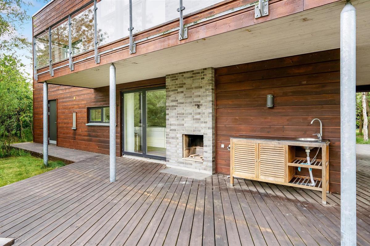 Het huis heeft goede slaapkamers en badkamers, heeft stadsverwarming en is het hele jaar door geïsoleerd en comfortabel. Vanaf de 1e verdieping heeft u toegang tot een gedeeltelijk overdekt terras. Er is een houtkachel in de woonkamer op de 1e verdieping. Vanaf de begane grond heeft u toegang tot een gedeeltelijk overdekt terras met open haard. Het huis heeft een moderne keuken en vanuit de woonkamer bereikt u een kleine tuin.