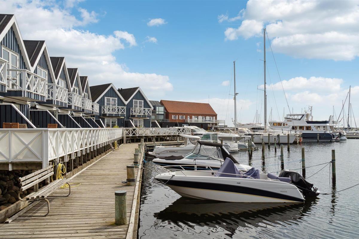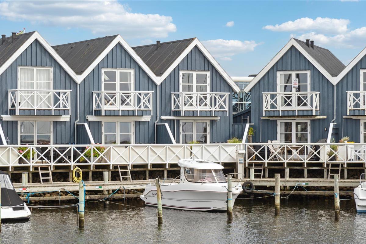 Maritiem rijtjeshuis aan de haven van Grenaa.