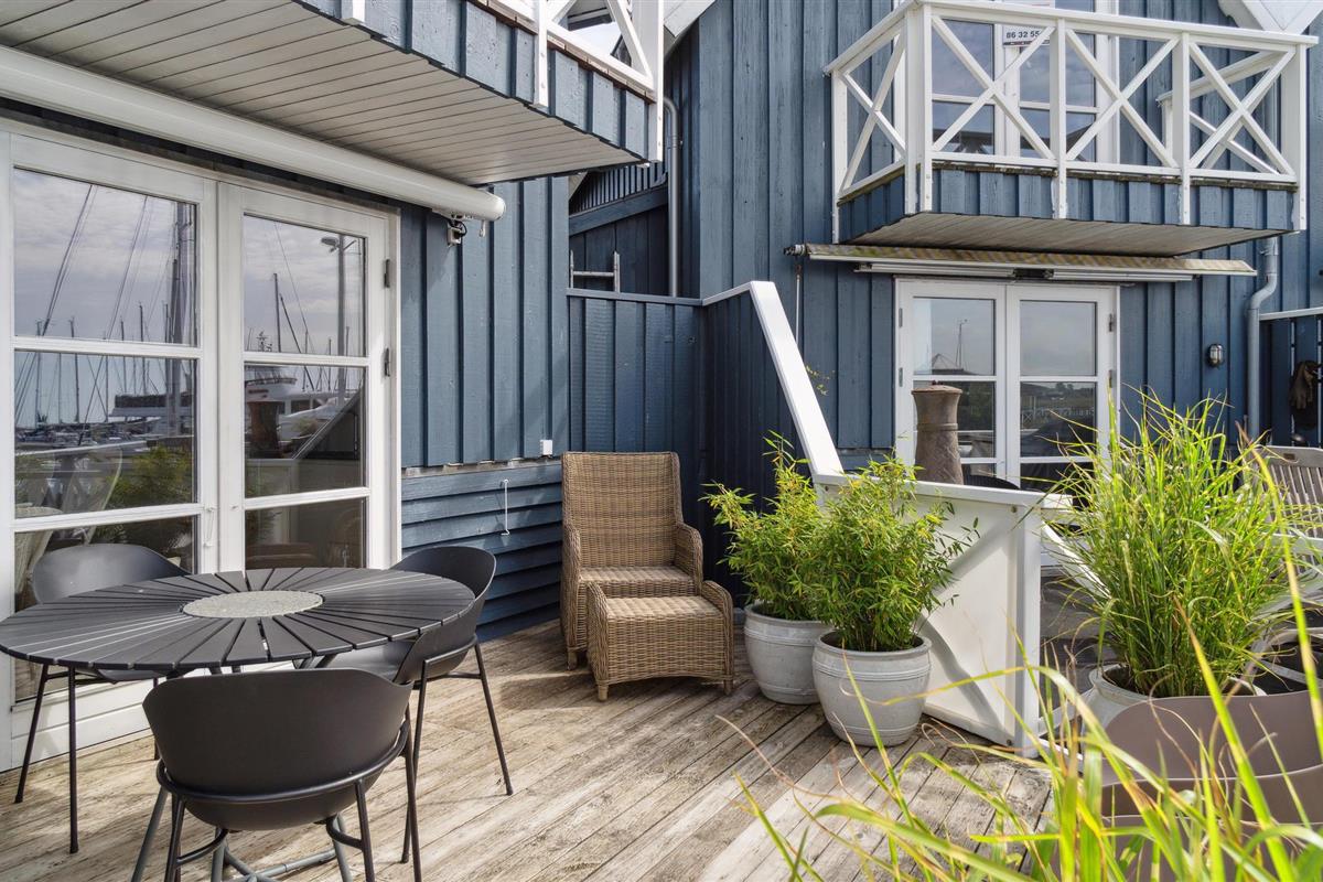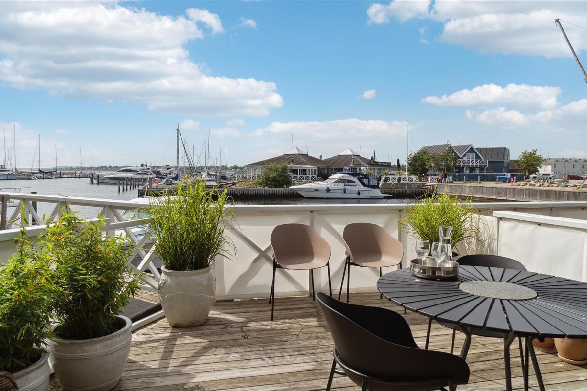 Maritiem rijtjeshuis in Grenaa met uitzicht op haven, dichtbij strand en voorzieningen.