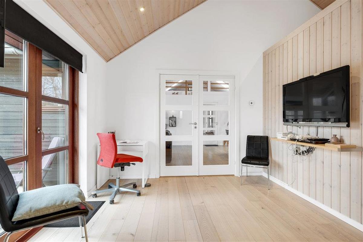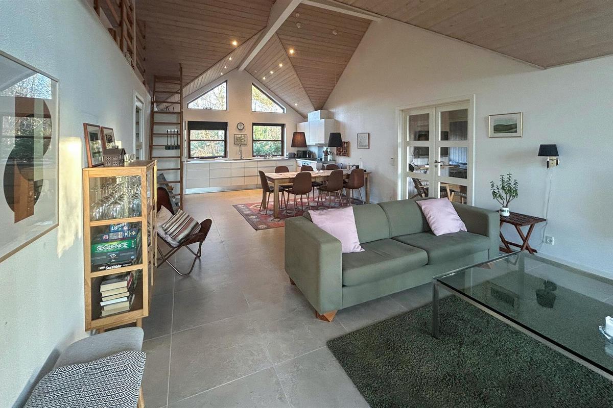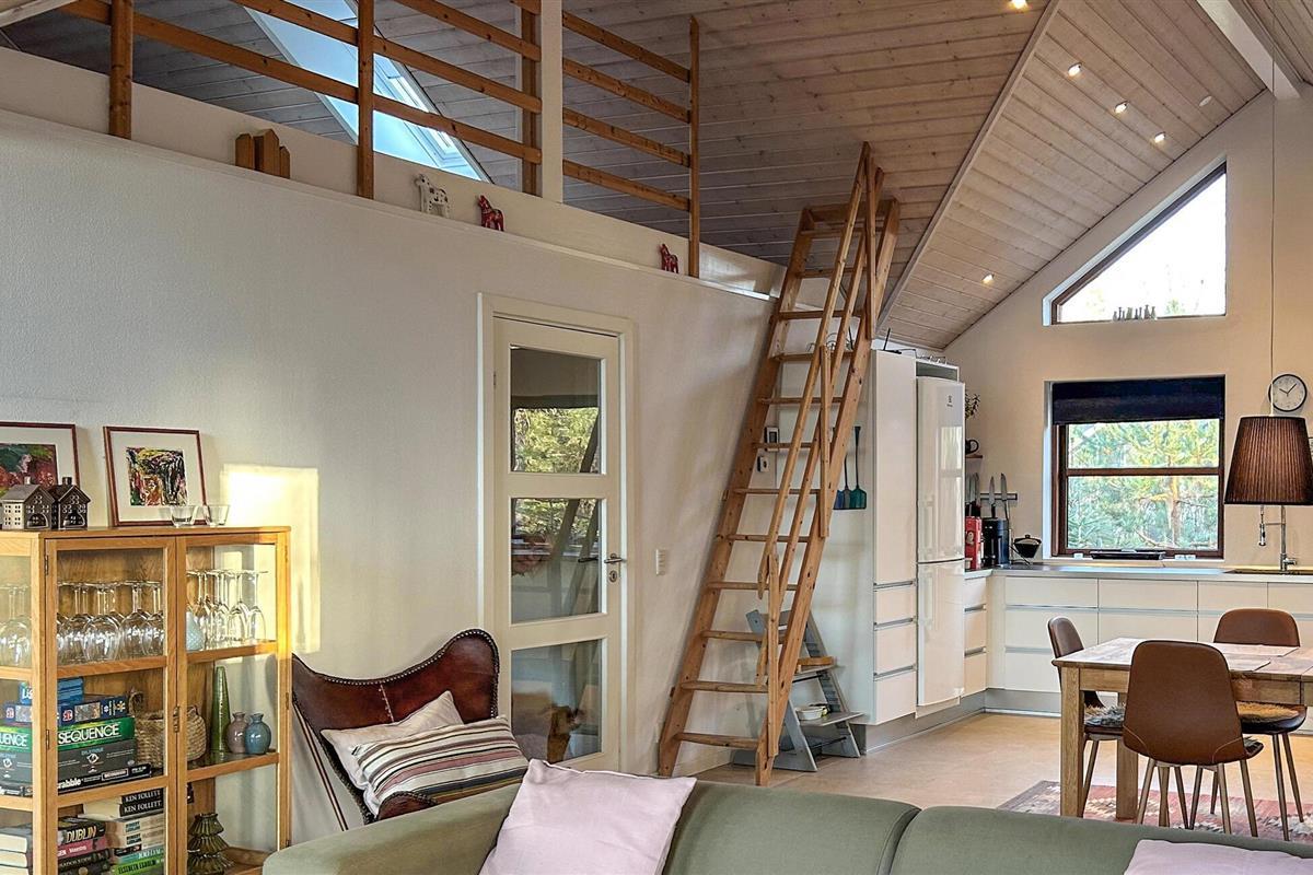 Het authentieke houten huis is ideaal voor één of twee gezinnen met huisdieren die samen een ontspannende vakantie in Djursland willen doorbrengen. U komt binnen in een modern, edel vakantiehuis, ingericht met stijlvolle meubels. Hier kunt u het uzelf comfortabel maken met een verwarmende open haard of een glas wijn in de woonkamer. Het hoge plafond en de spannende constructie hiervan geven u genoeg ruimte om te ademen en ook een ruimtelijk gevoel. Dankzij de grote vensterpuien komt er ongelooflijk veel licht binnen, wat de natuurlijke flair nog versterkt.