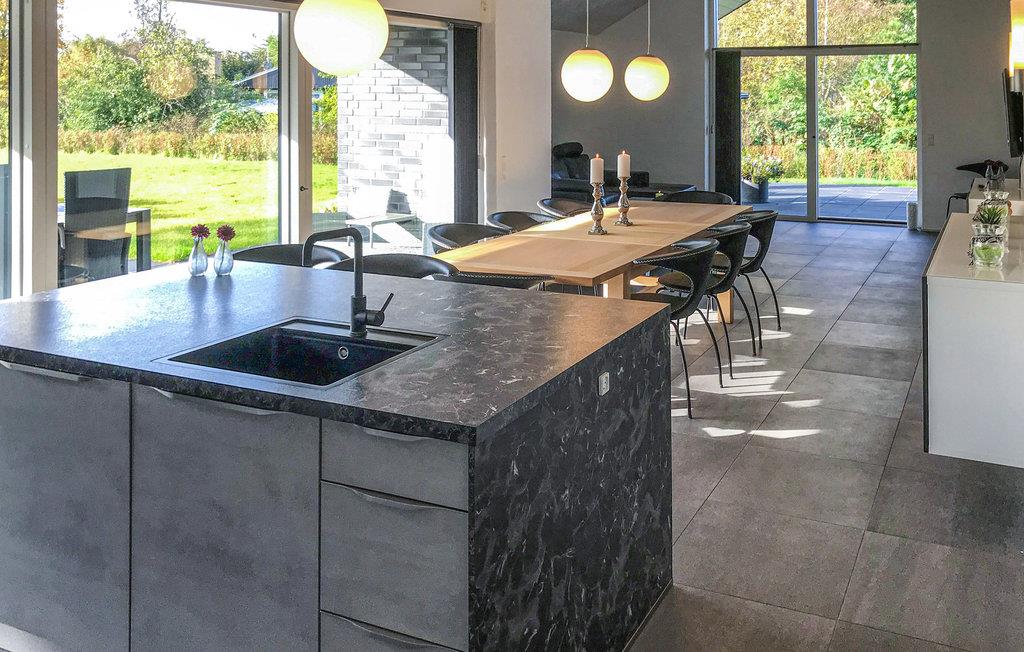 Dit ruime vakantiehuis ligt in Grenaa en op slechts 250 m van een van de beste zandstranden in de regio. Het biedt prachtige terrasruimtes en een uitnodigende activiteitenruimte met ruimte voor het hele gezin. Vanuit de ruime keuken-woonkamer stapt u op het grote terras en in de tuin, die veel ruimte biedt voor buitenplezier en spelletjes. Vanaf het terras kom je in een apart bijgebouw waar de infraroodsauna en een kleine bar zijn opgesteld.