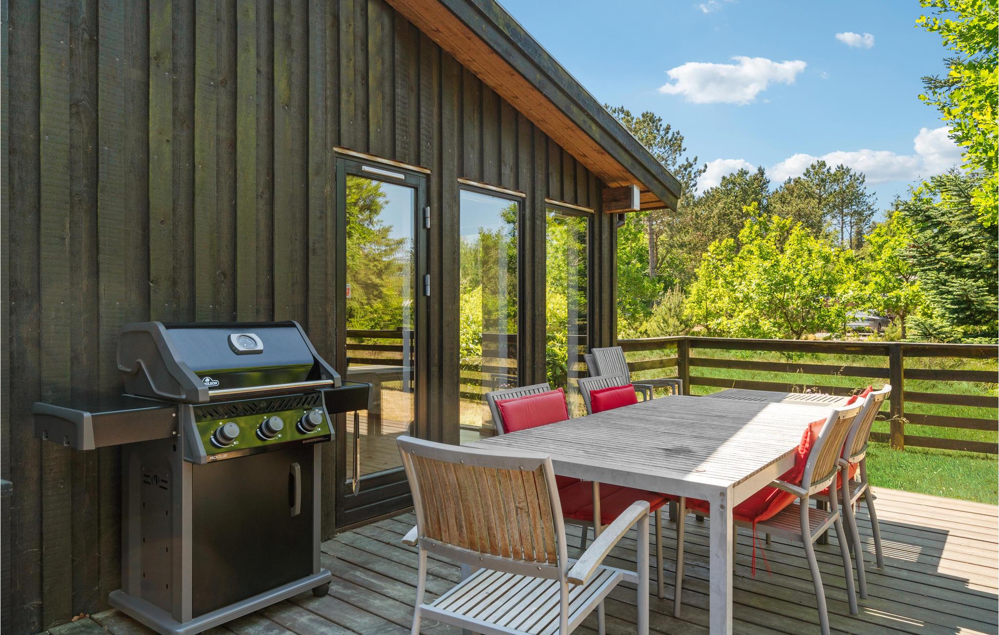 Dit mooie vakantiehuis grenst aan een klein bos en verwelkomt je vlakbij het strand.