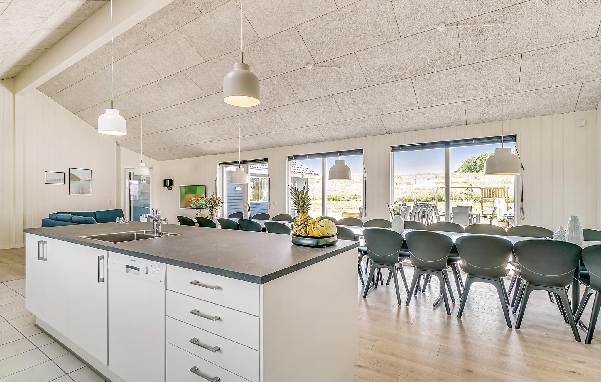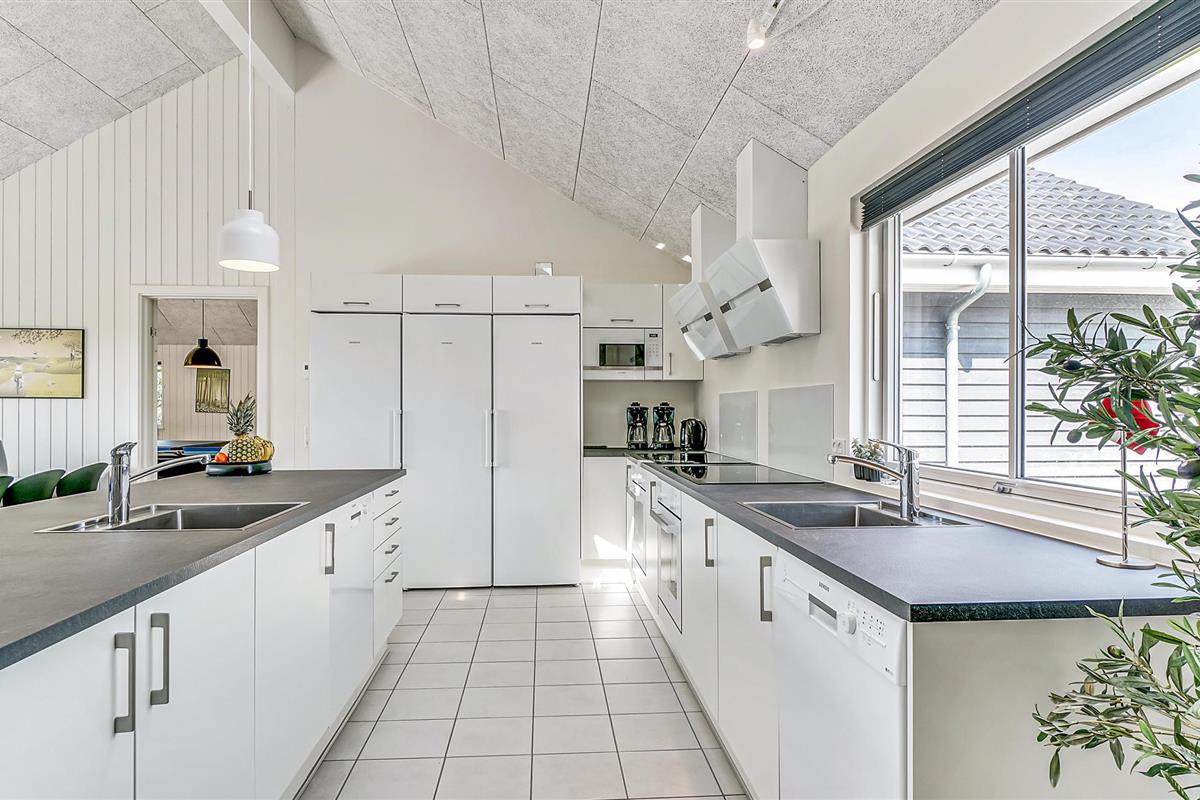 In het huis is er een mooie, grote keuken met directe toegang tot het terras waar de familie kan samenkomen voor de maaltijden. De goed uitgeruste keuken is goed uitgerust met 2 koelkasten, ovens, spoelbakken, vaatwassers, 1 vriezer en 1 magnetron.