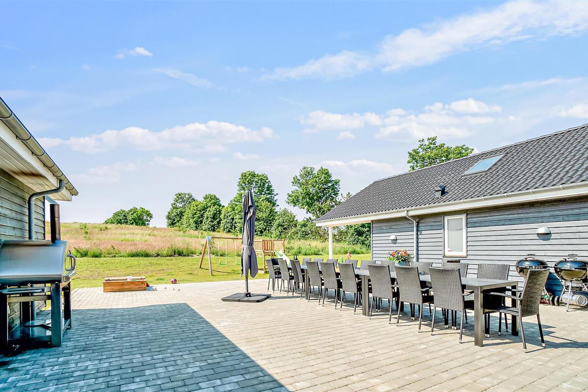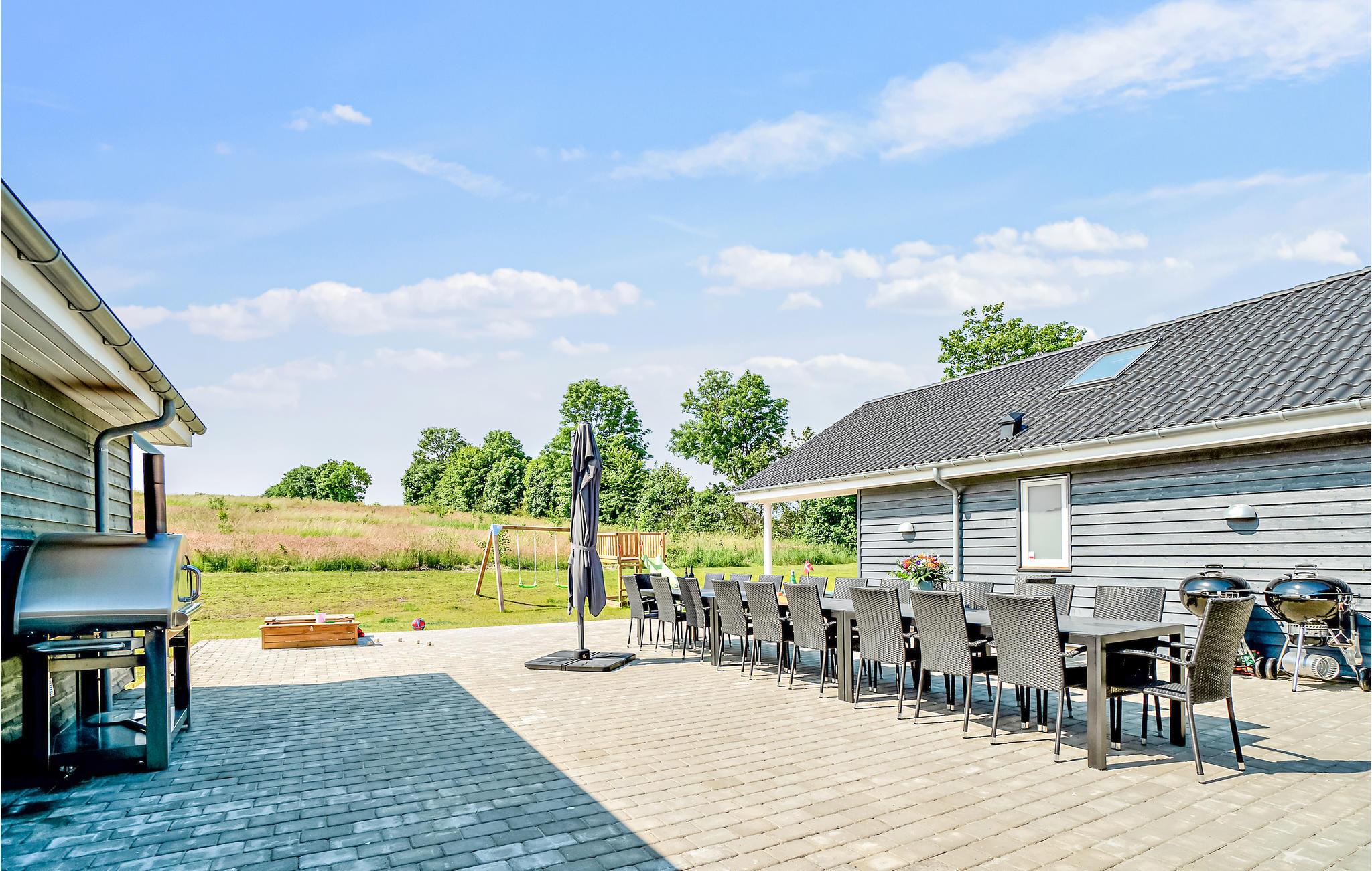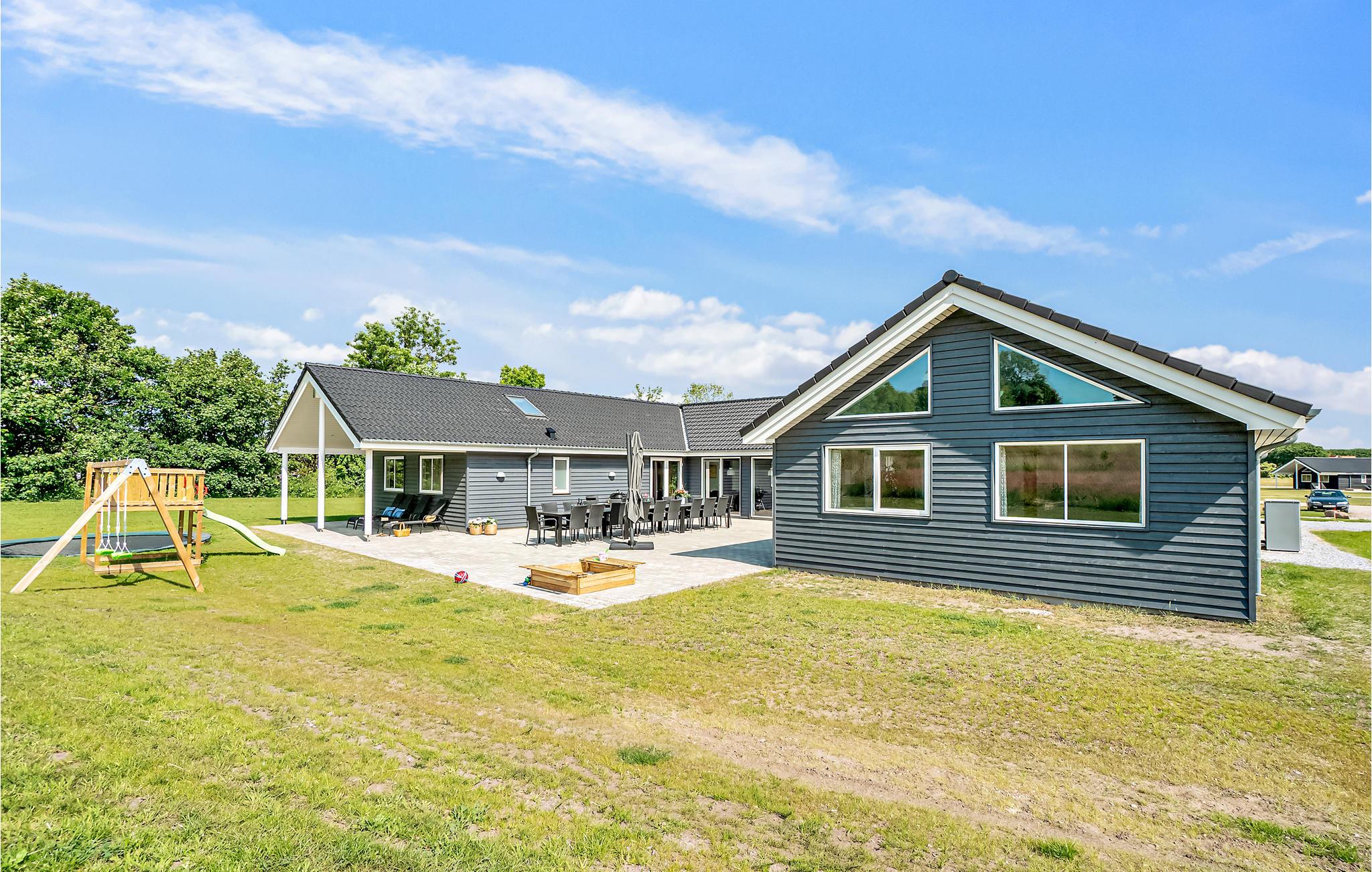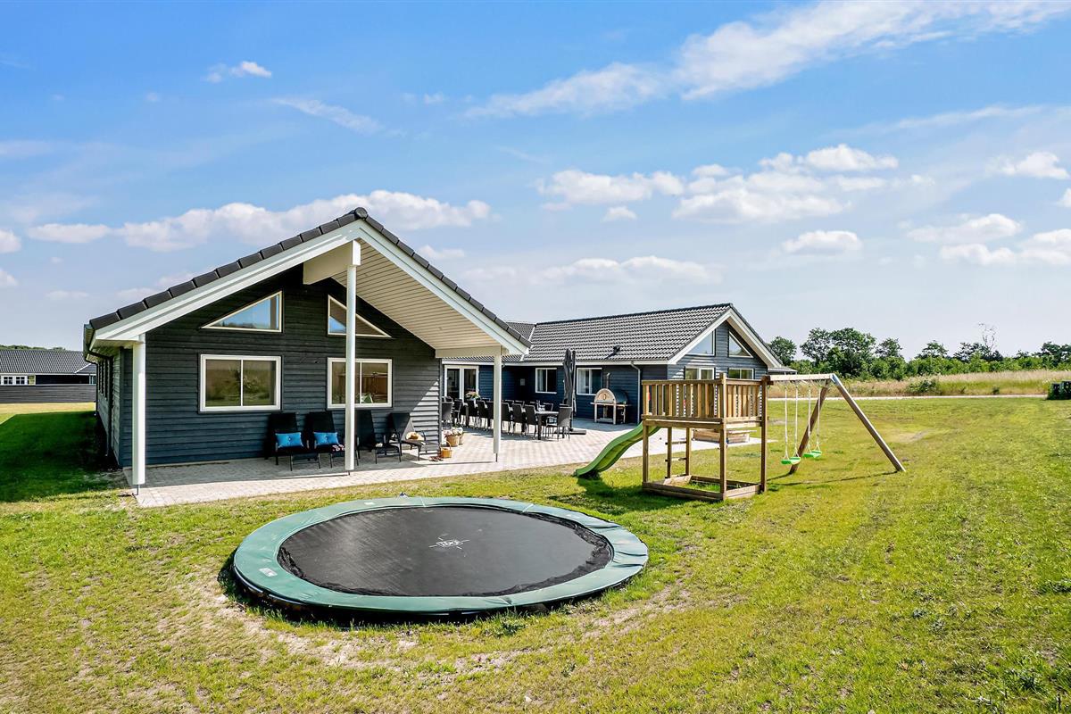 Luxe vakantiehuis in Grenå met zwembad, sauna, speelkamer en grote tuin voor een ontspannen familieverblijf.