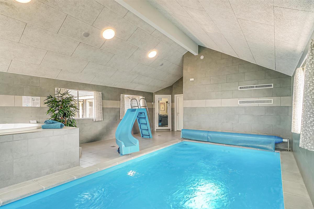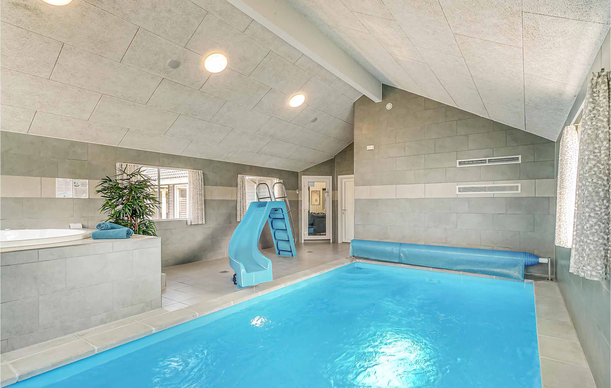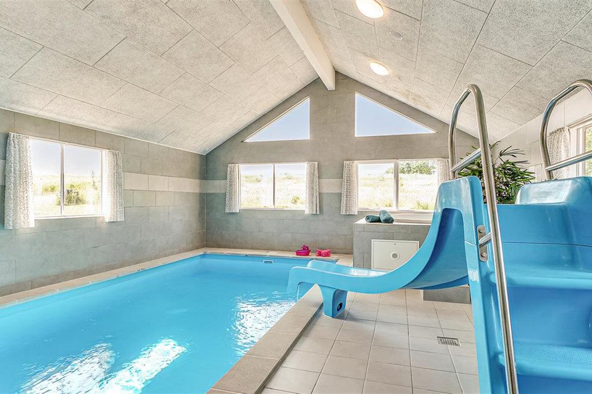 Voor waterratten en zwemliefhebbers is dit vakantiehuis een waar paradijs. Er is een groot overdekt zwembad waar u de hele dag kunt spetteren en zwemmen. Het zwembad heeft trappen, waterglijbanen en een tegenstroomsysteem. In de zwembadruimte vindt u ook een whirlpool en een sauna.