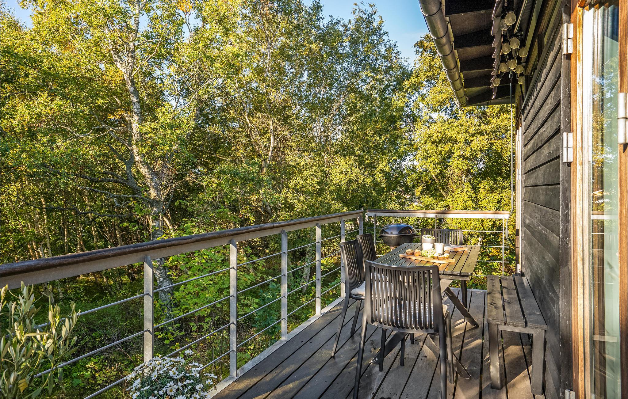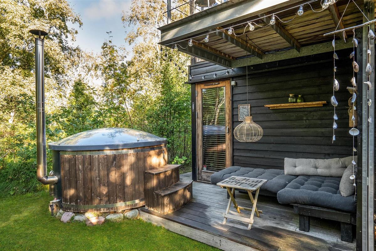 U zult vanaf het eerste moment overtuigd zijn door de bijzondere constructie en de hoogwaardige uitrusting van dit huis: Over twee verdiepingen vindt u een prachtige compositie van terrassen, whirlpools, open haard en hedendaagse meubels. Het uitzicht op het groene terrein en de nabijheid van het strand maken de heerlijke woonervaring compleet. U waant zich bijna in een boomhut, waar u zich kunt terugtrekken in het comfort van uw eigen huis en er altijd iets te ontdekken valt.