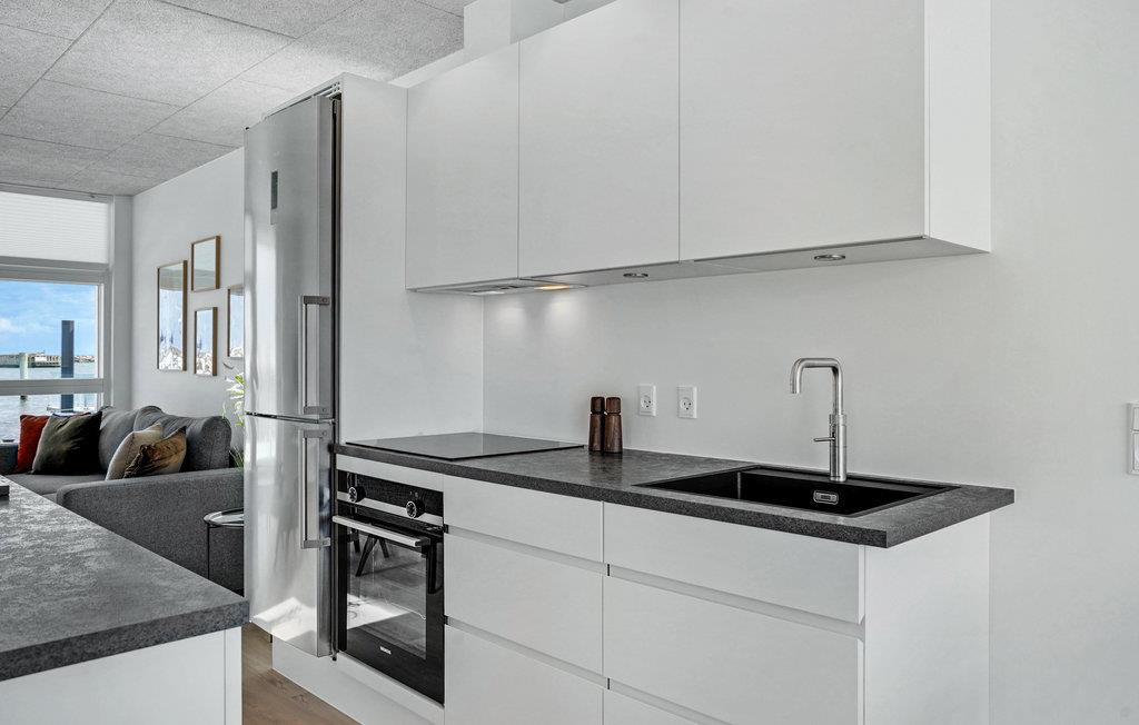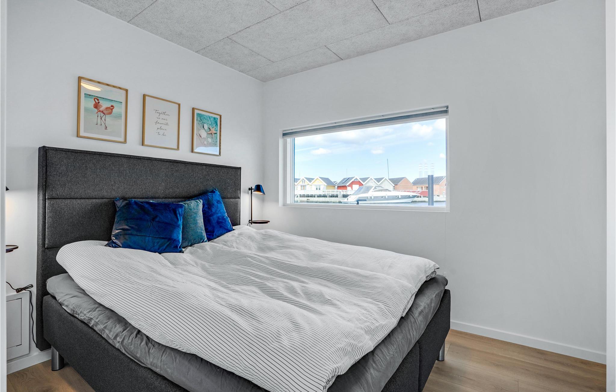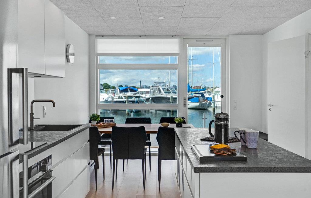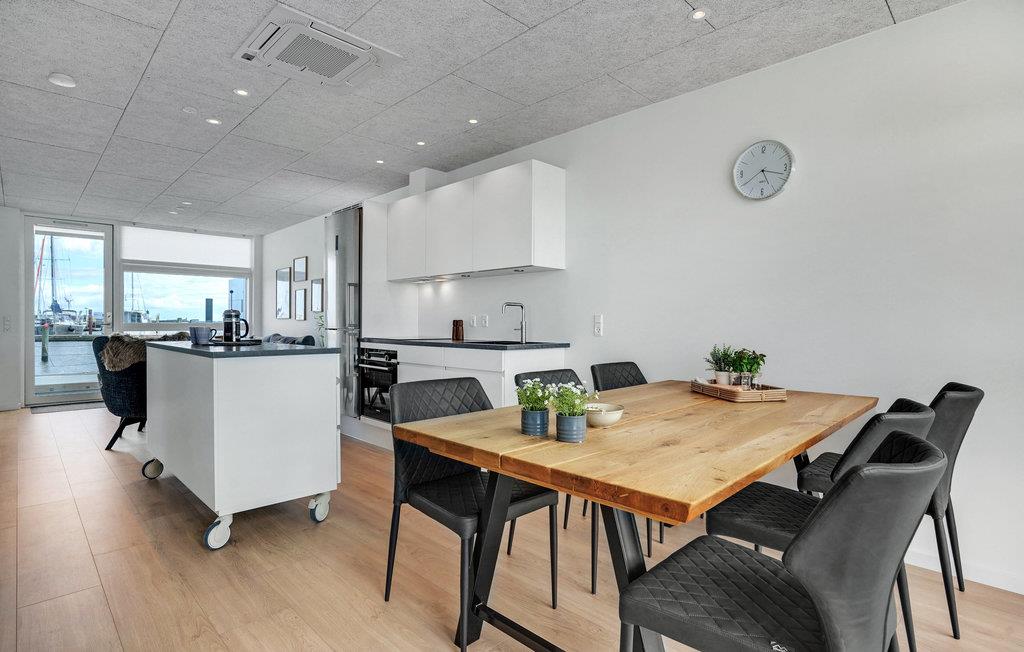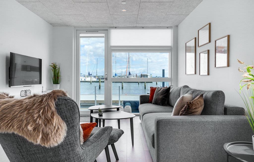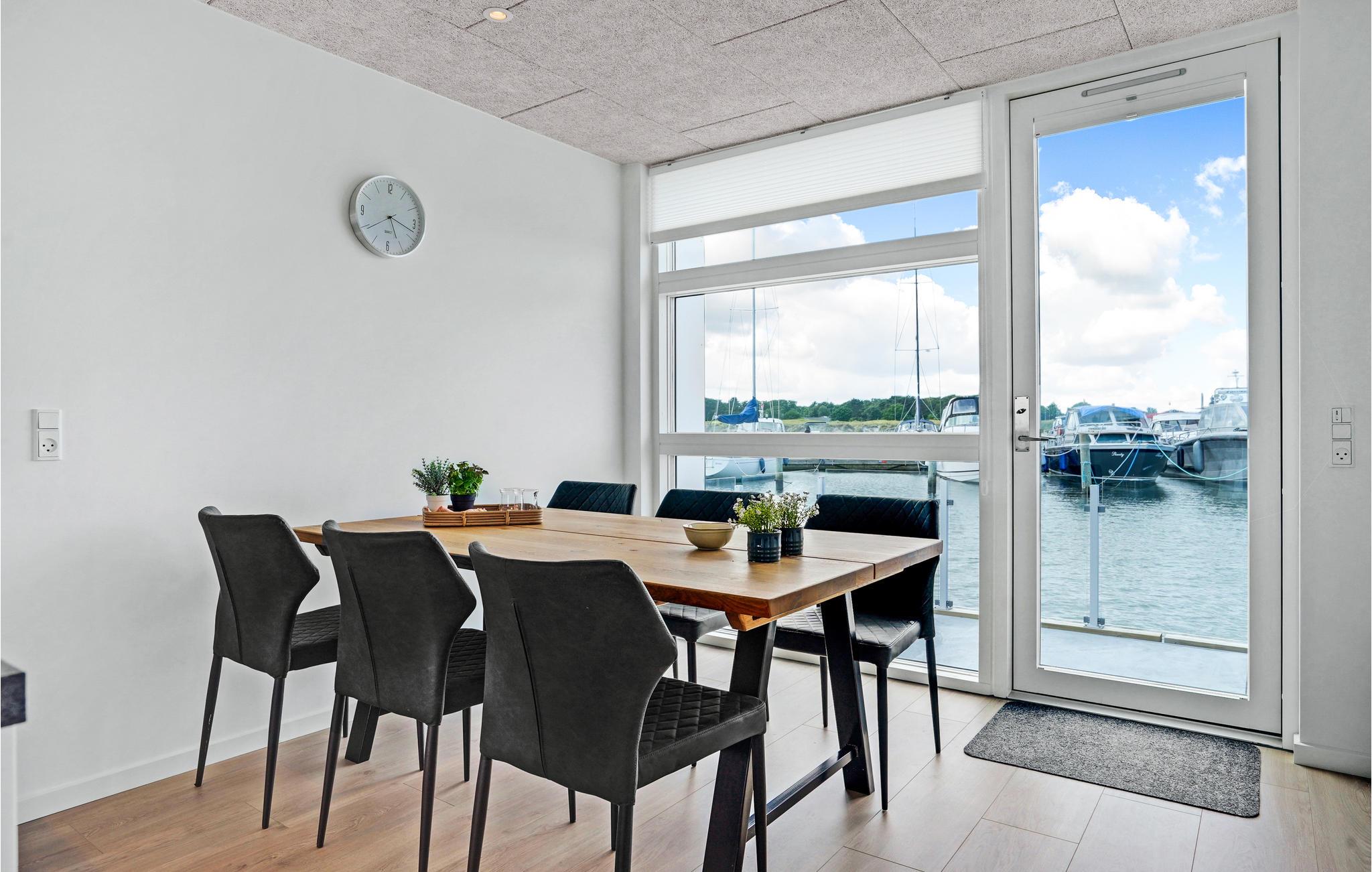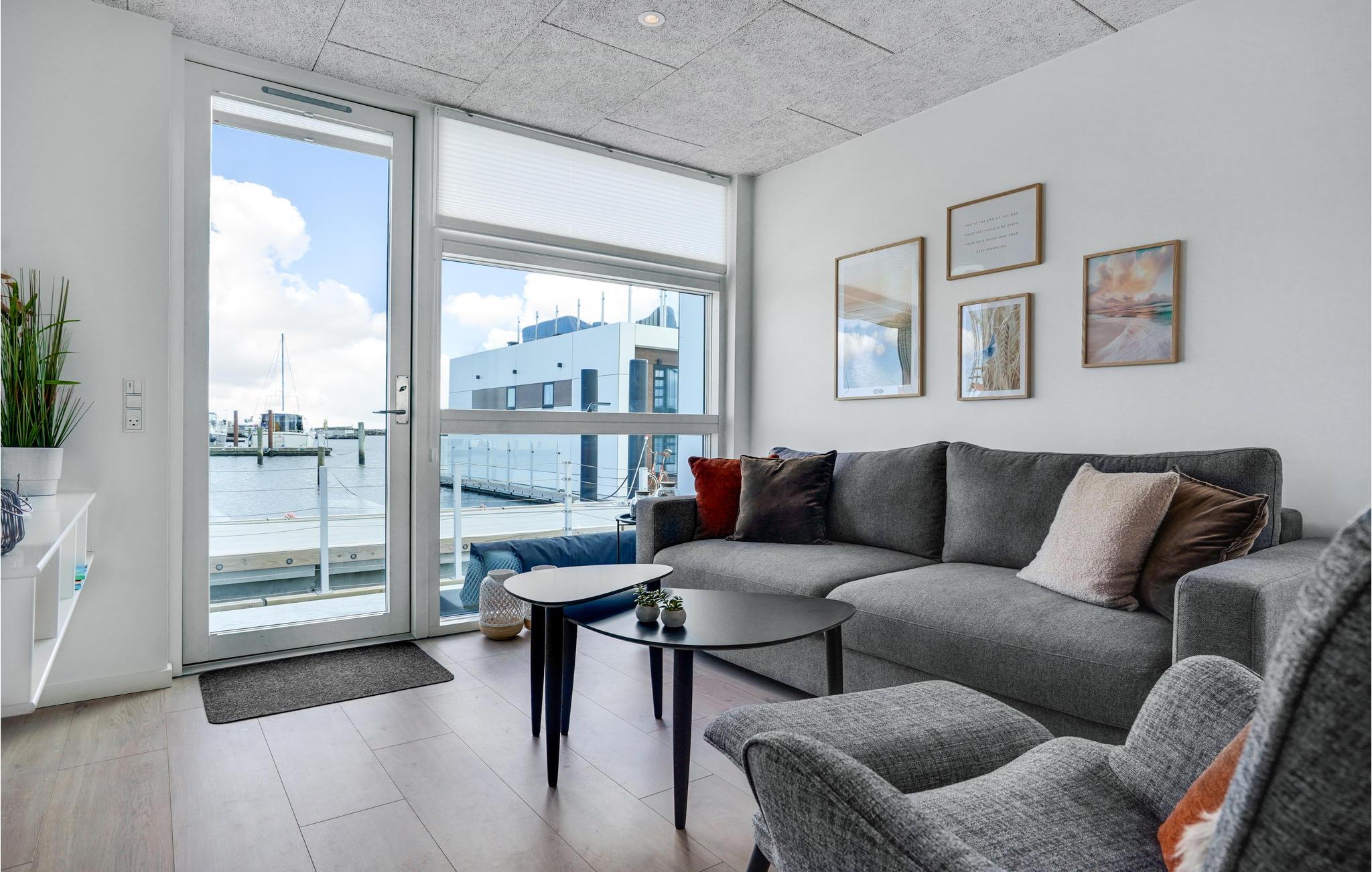 Ontdek deze moderne woonboot in Grenå met panorama-uitzicht, terras en dichtbij het strand voor een unieke vakantie aan het water.